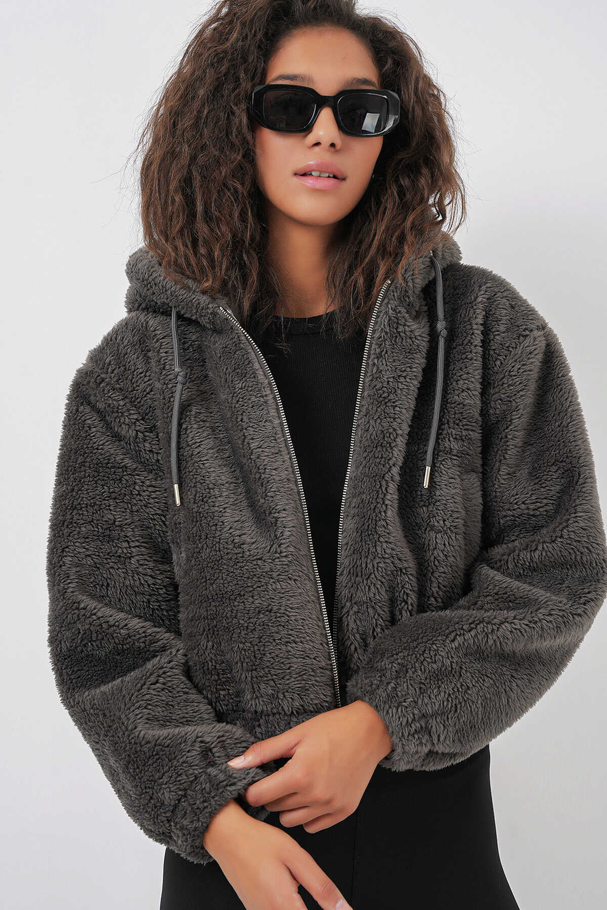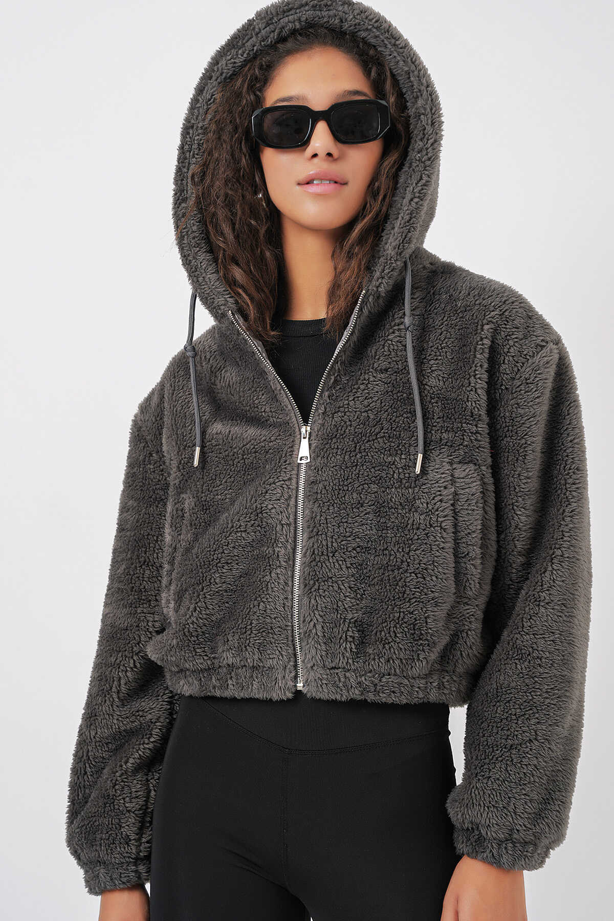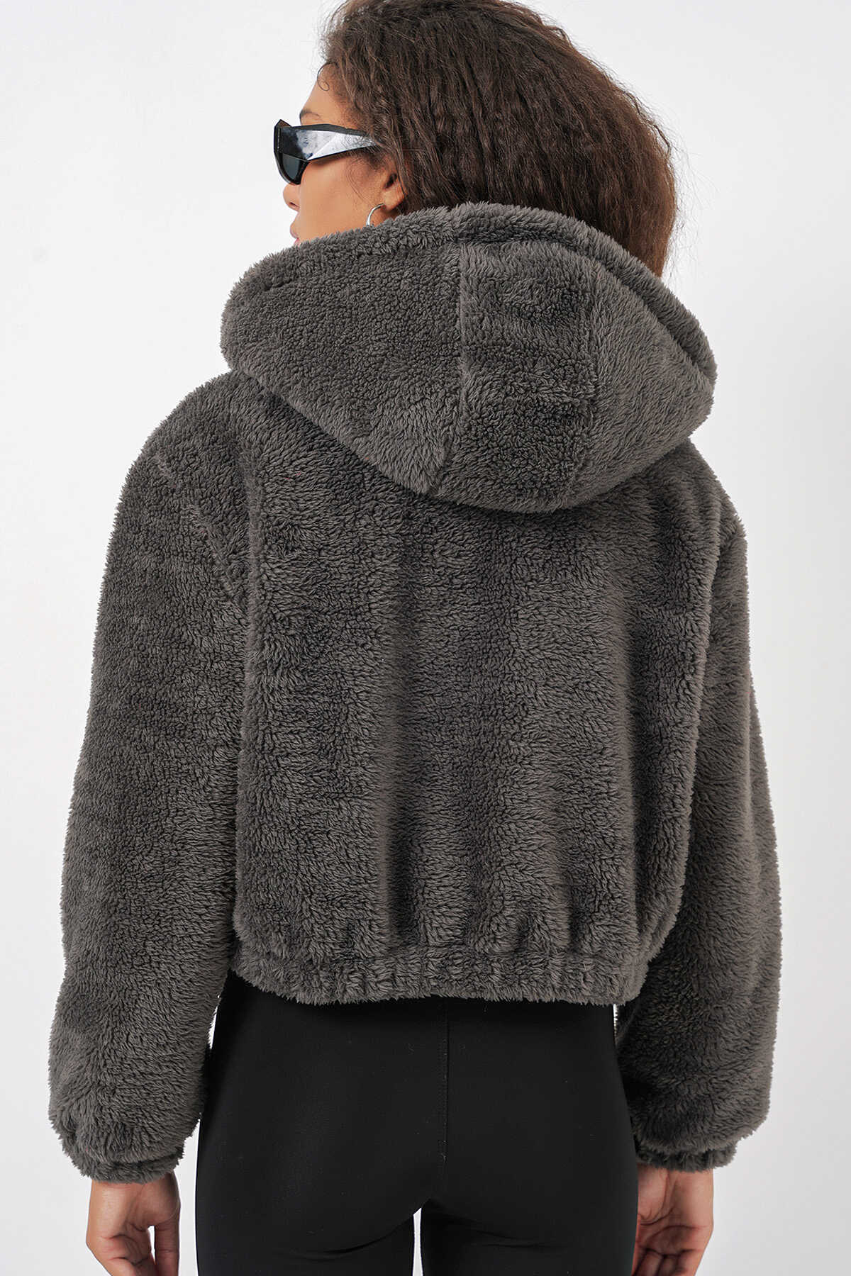Kapüsonlu Pelus Crop Ceket