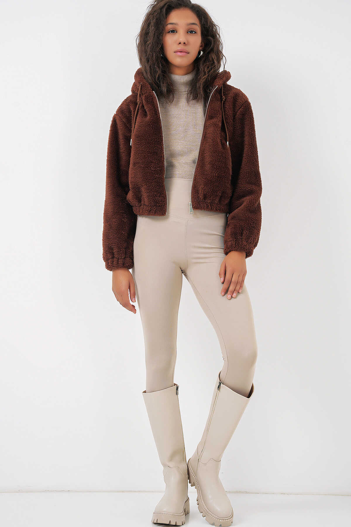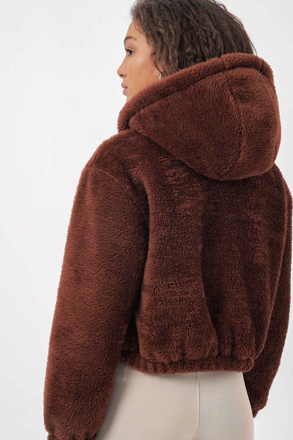 Kapüsonlu Pelus Crop Ceket