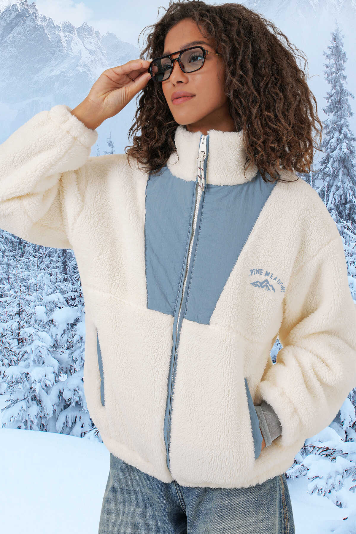 5194 Kadın Peluş Mont Ceket - İndigo - Kombin