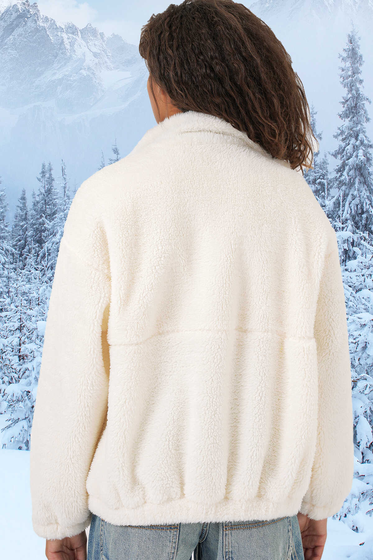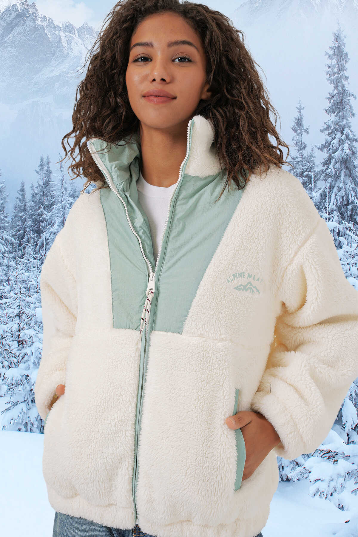 5194 Kadın Peluş Mont Ceket - Turkuaz - Kombin