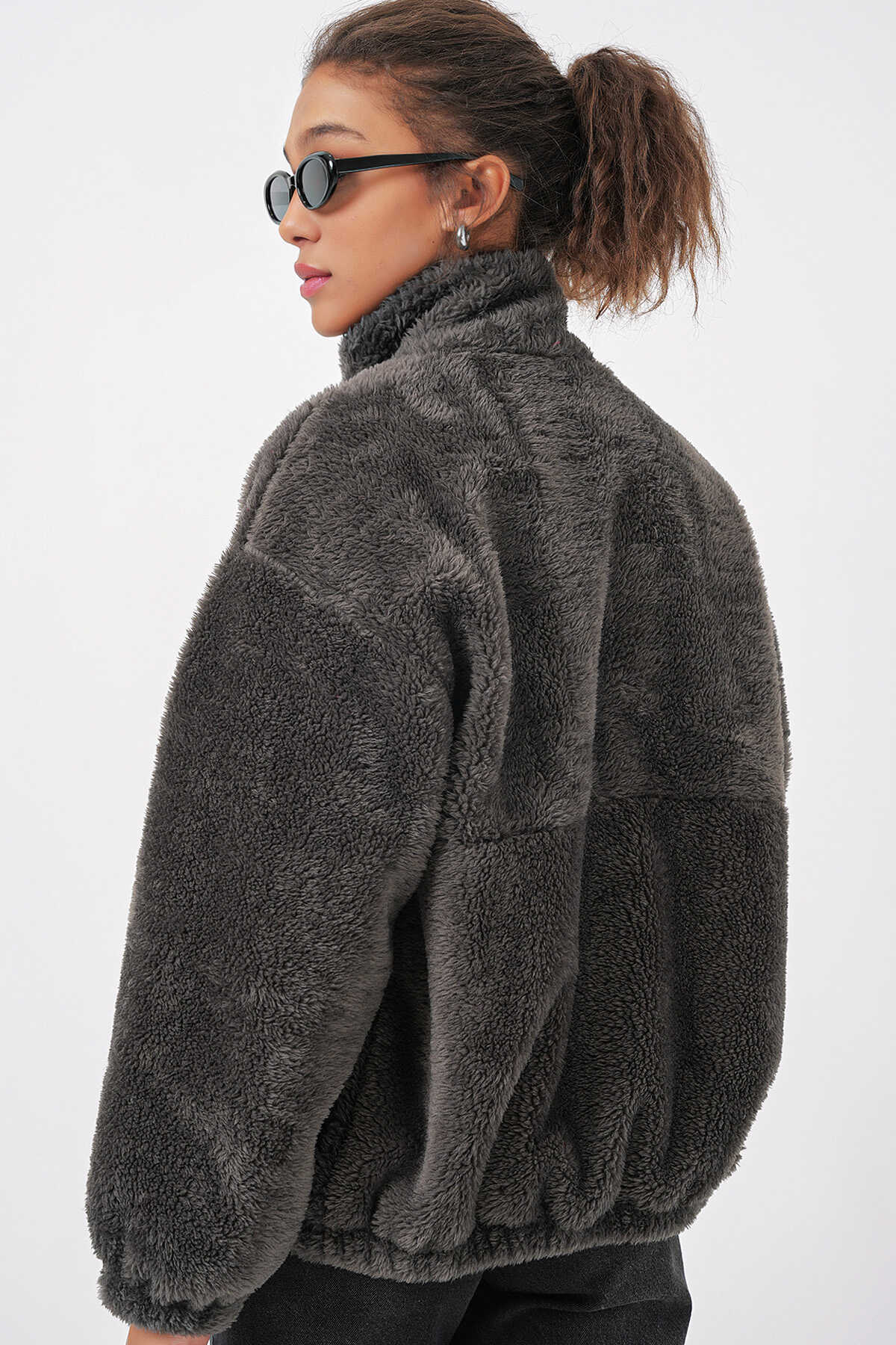 5194 Kadın Peluş Mont Ceket - Antrasit