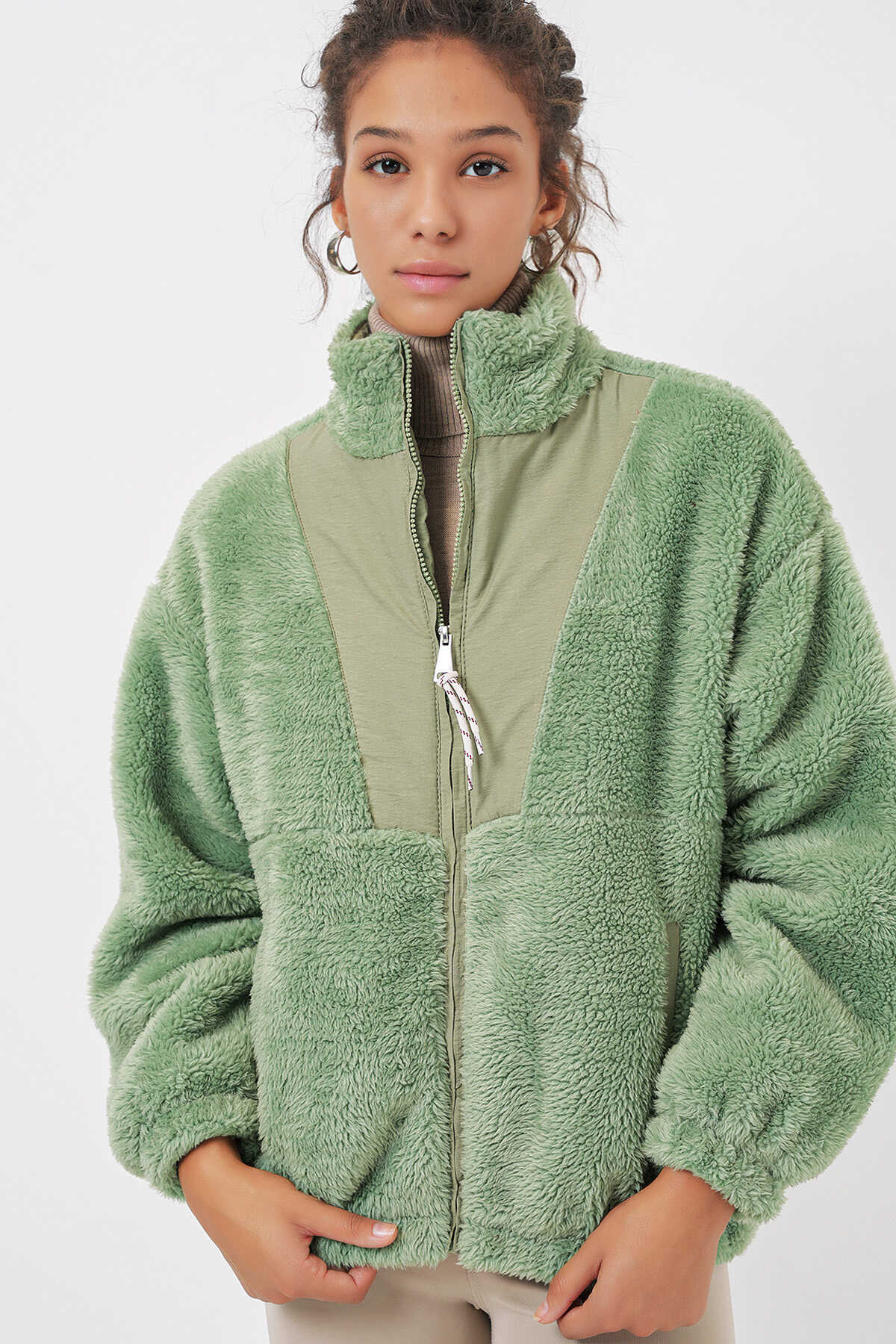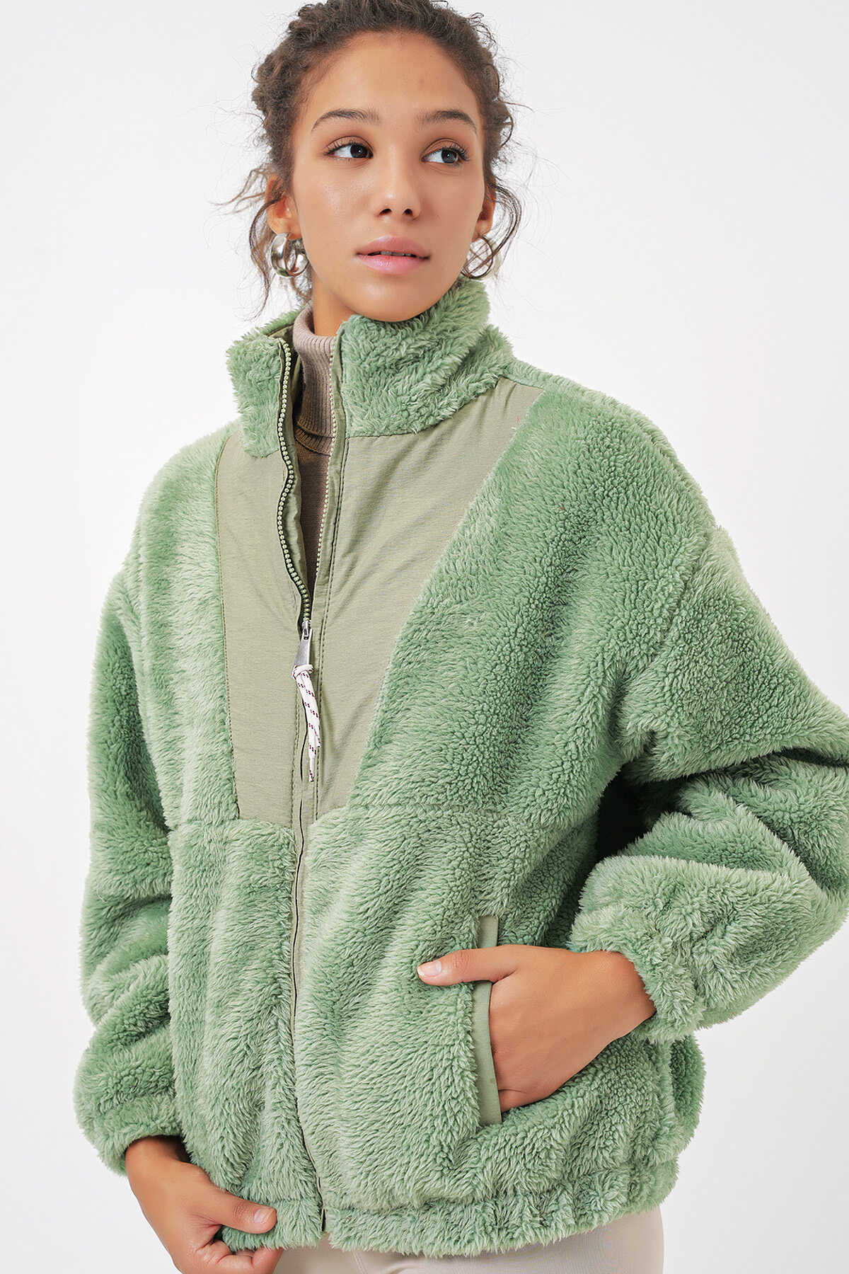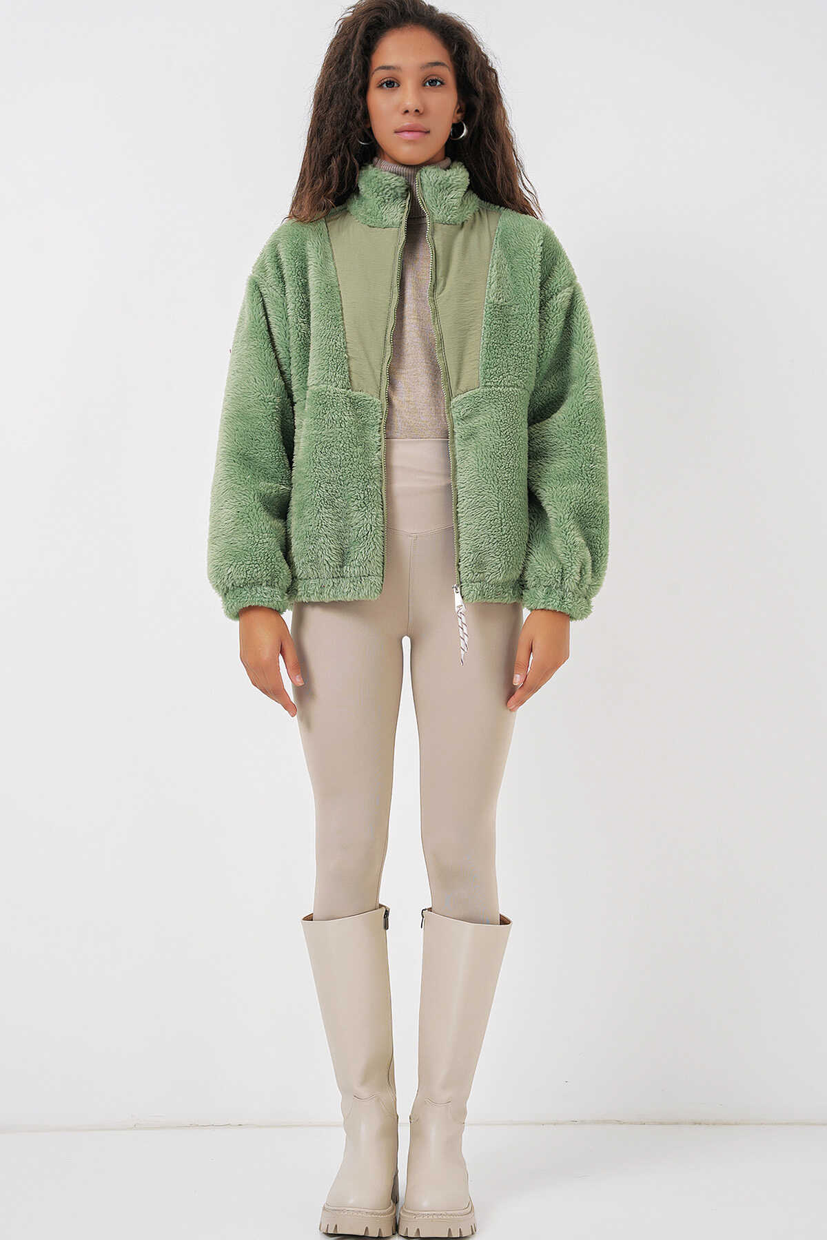 5194 Kadın Peluş Mont Ceket - E.Yeşil - Kombin