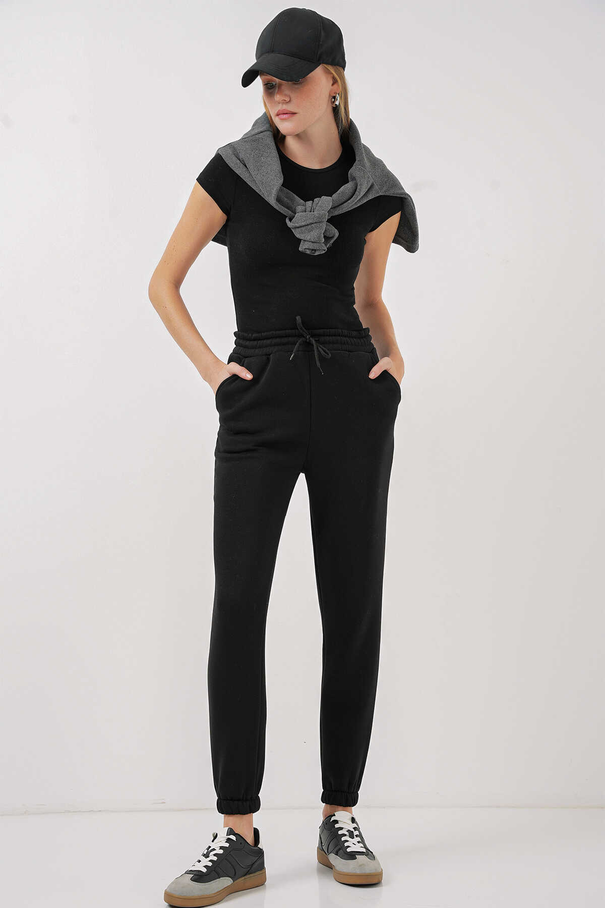 55450 Üç İplik Eşofman Altı - Siyah - Kombin