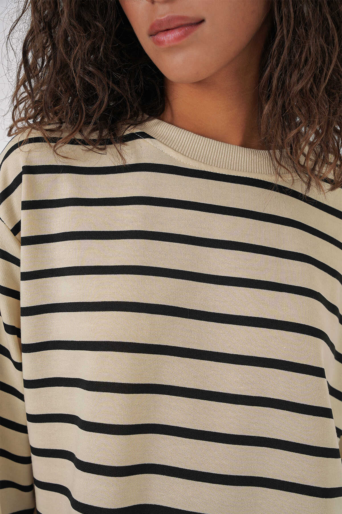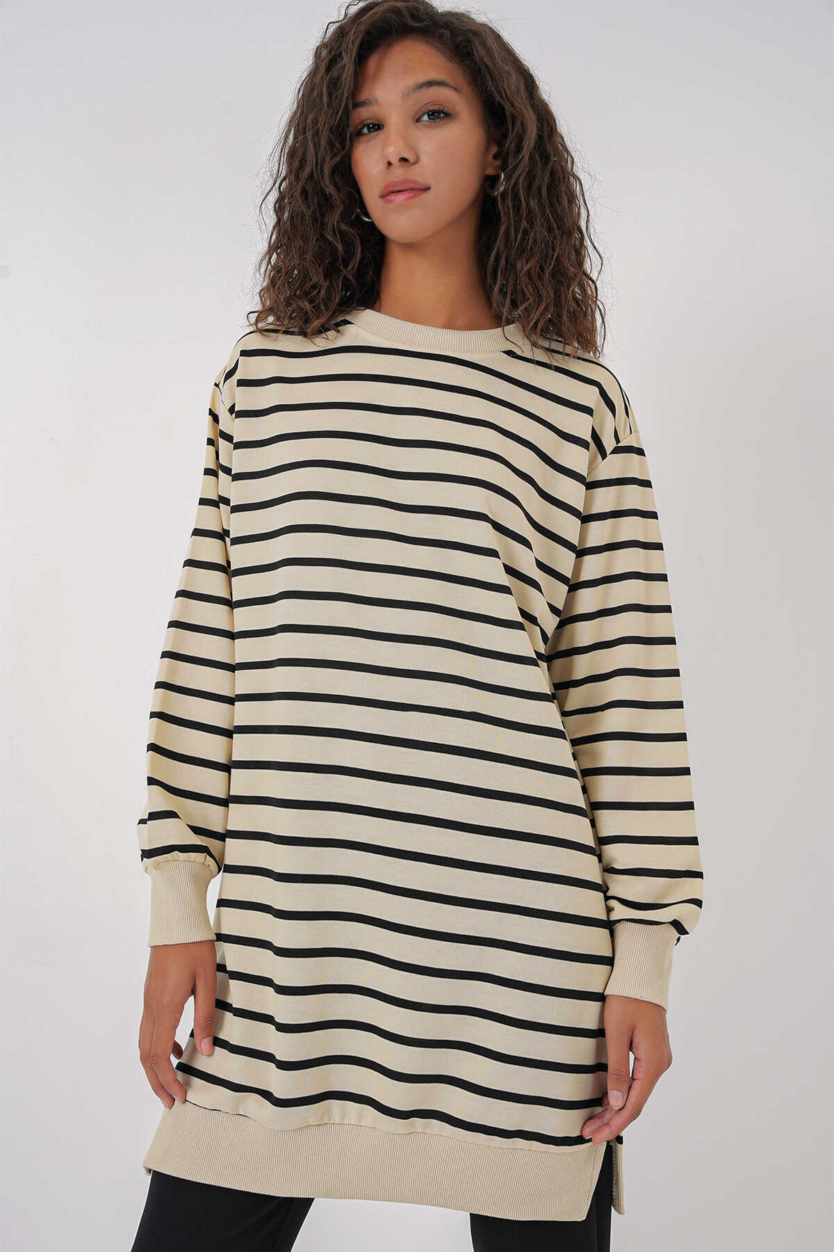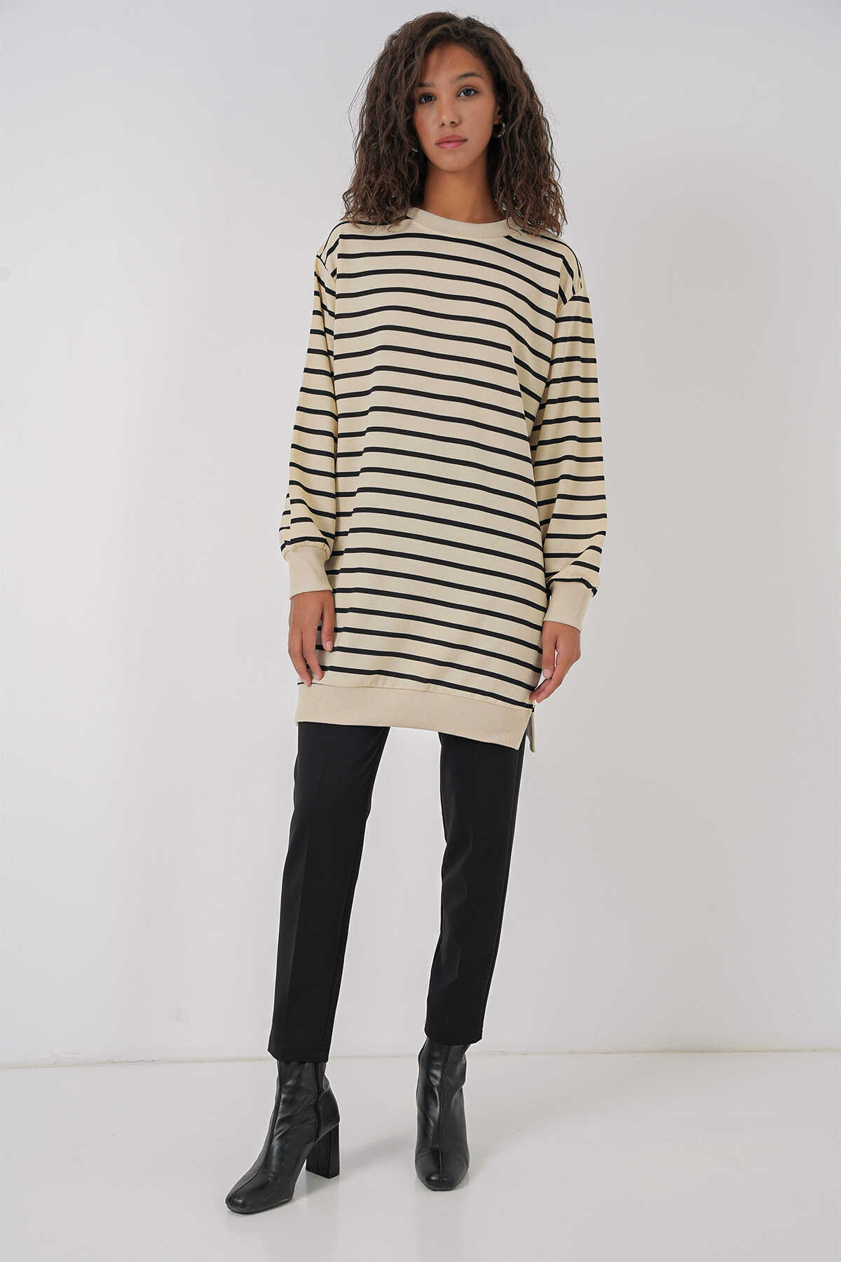 55452 Kadın Bisiklet Yaka Çizgili Tesettür Tunik - Siyah - Kombin