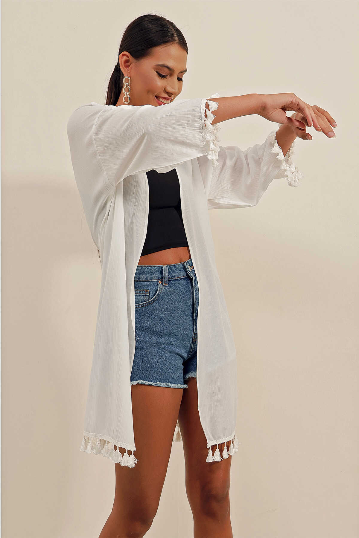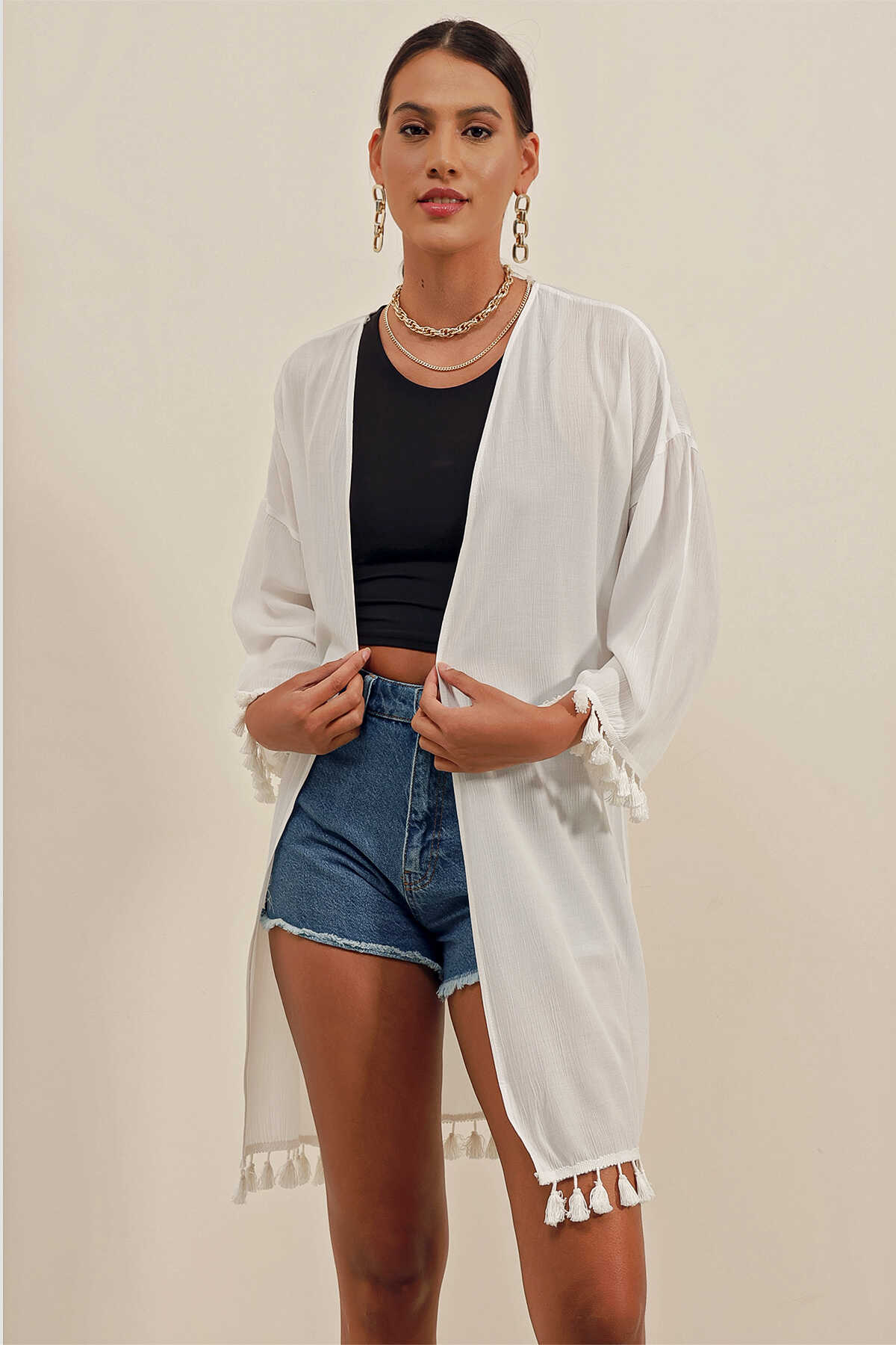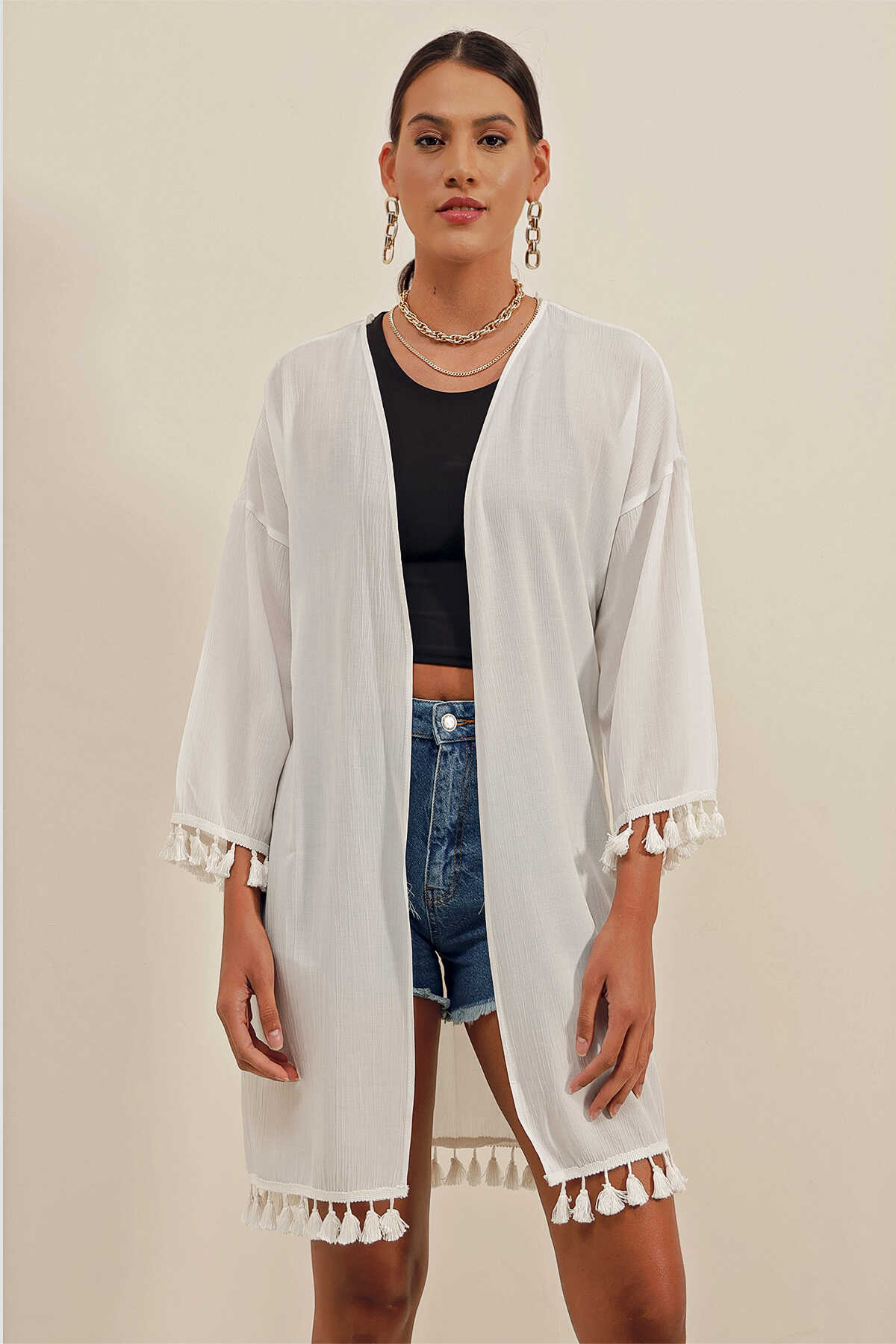 5833 Fırfırlı Kimono - Beyaz - Kombin