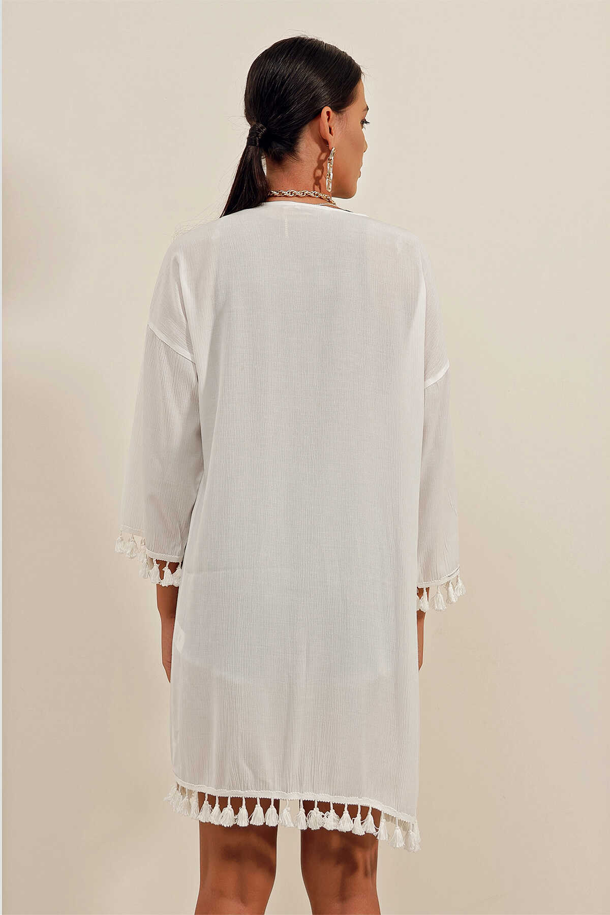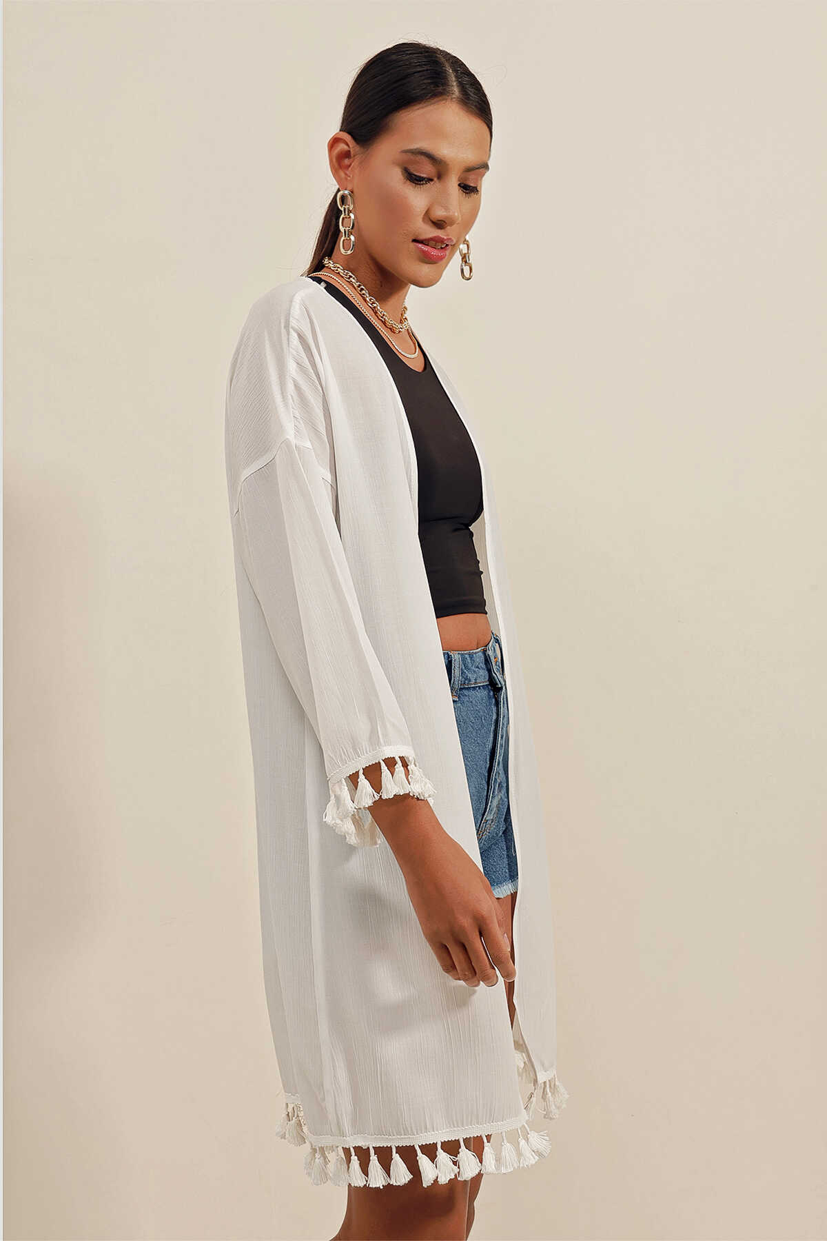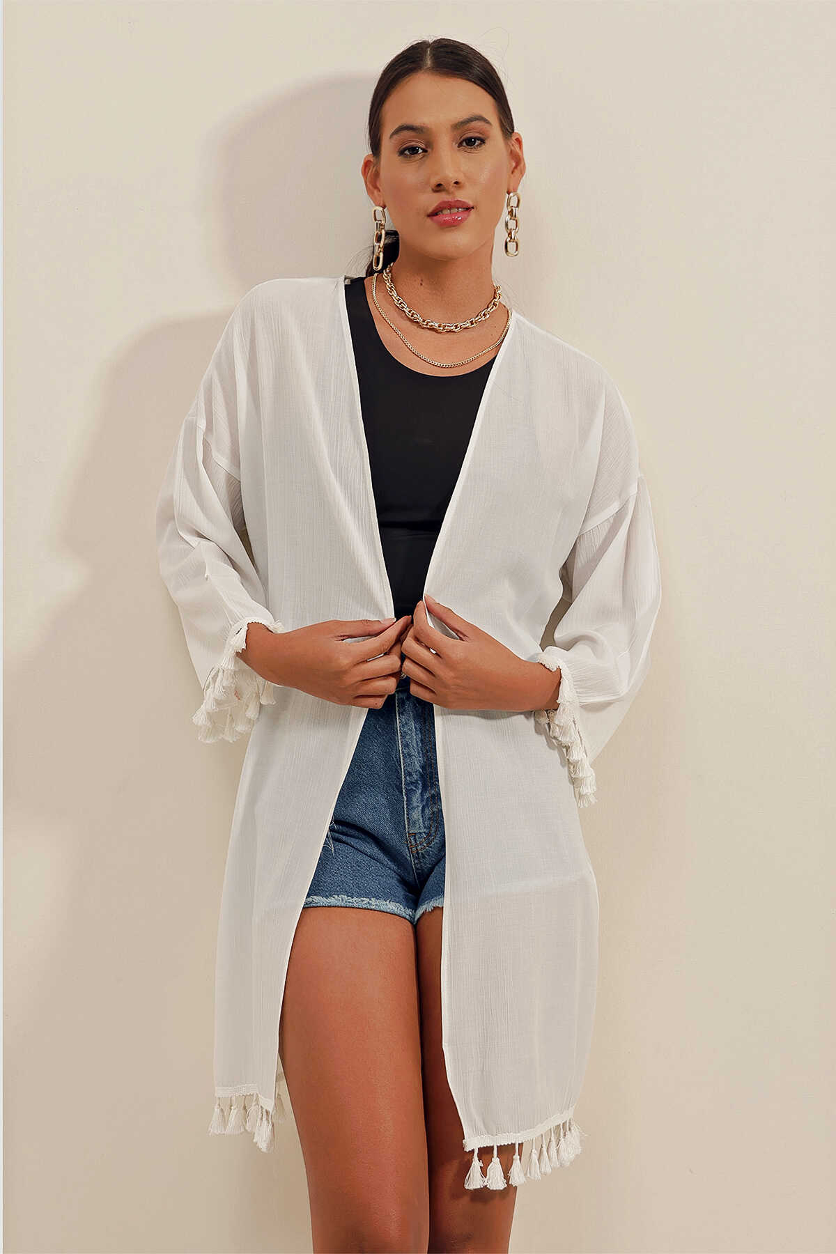 5833 Fırfırlı Kimono - Beyaz - Kombin