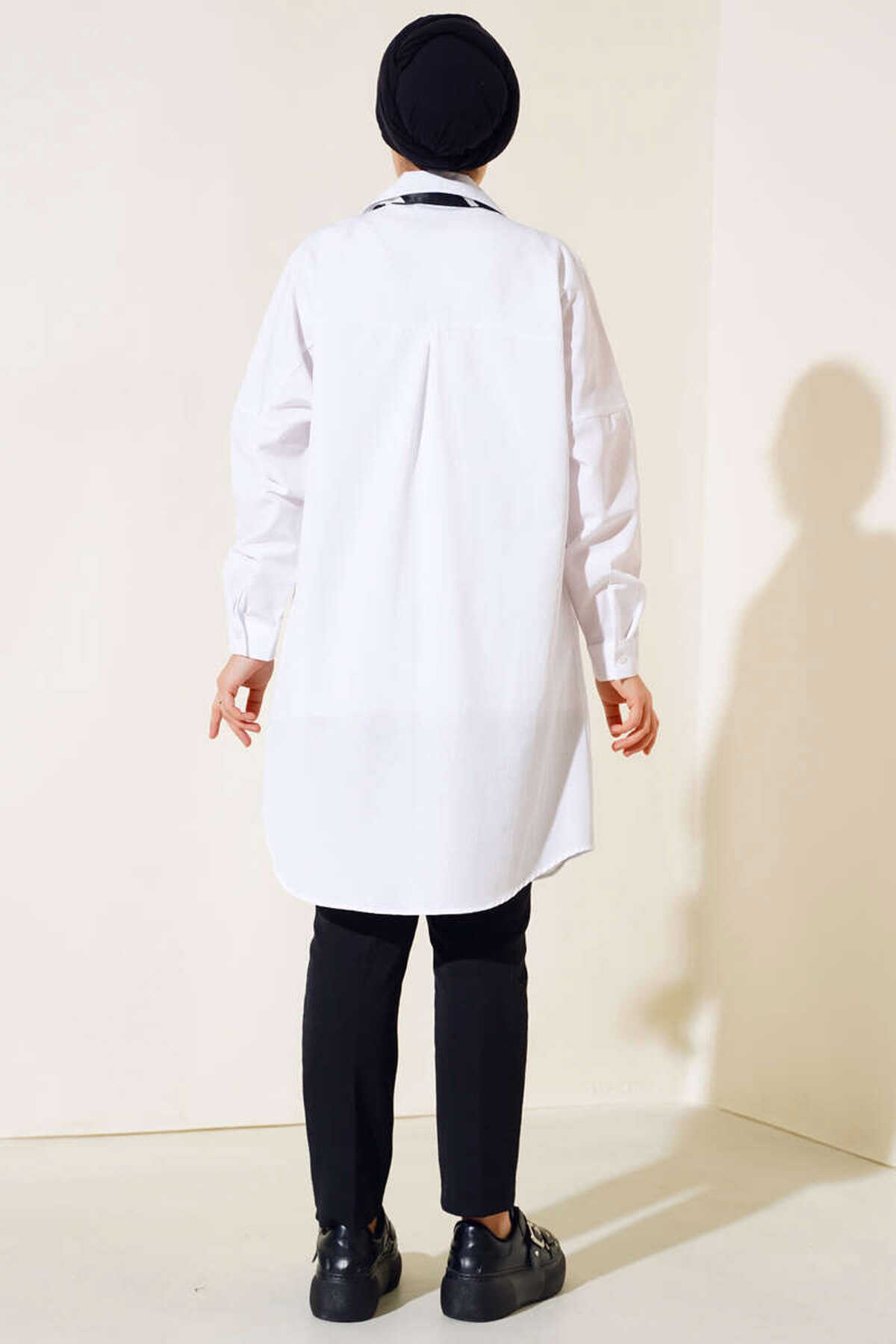 5845 Tesettür Tunik - Beyaz - Kombin