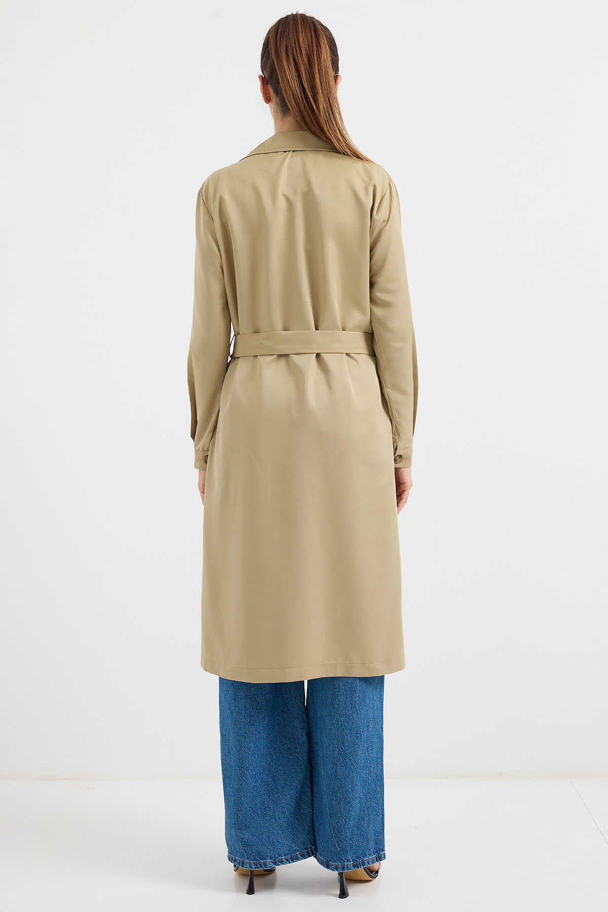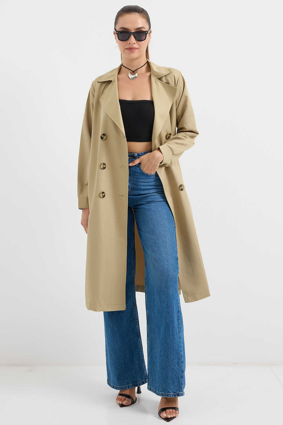 Kruvaze Yaka Trençkot, Kemerli Mevsimlik Trençkot