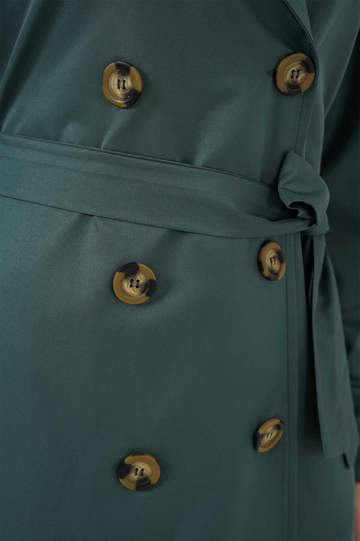 5853 Kruvaze Yaka Trençkot - Zümrüt Yeşili