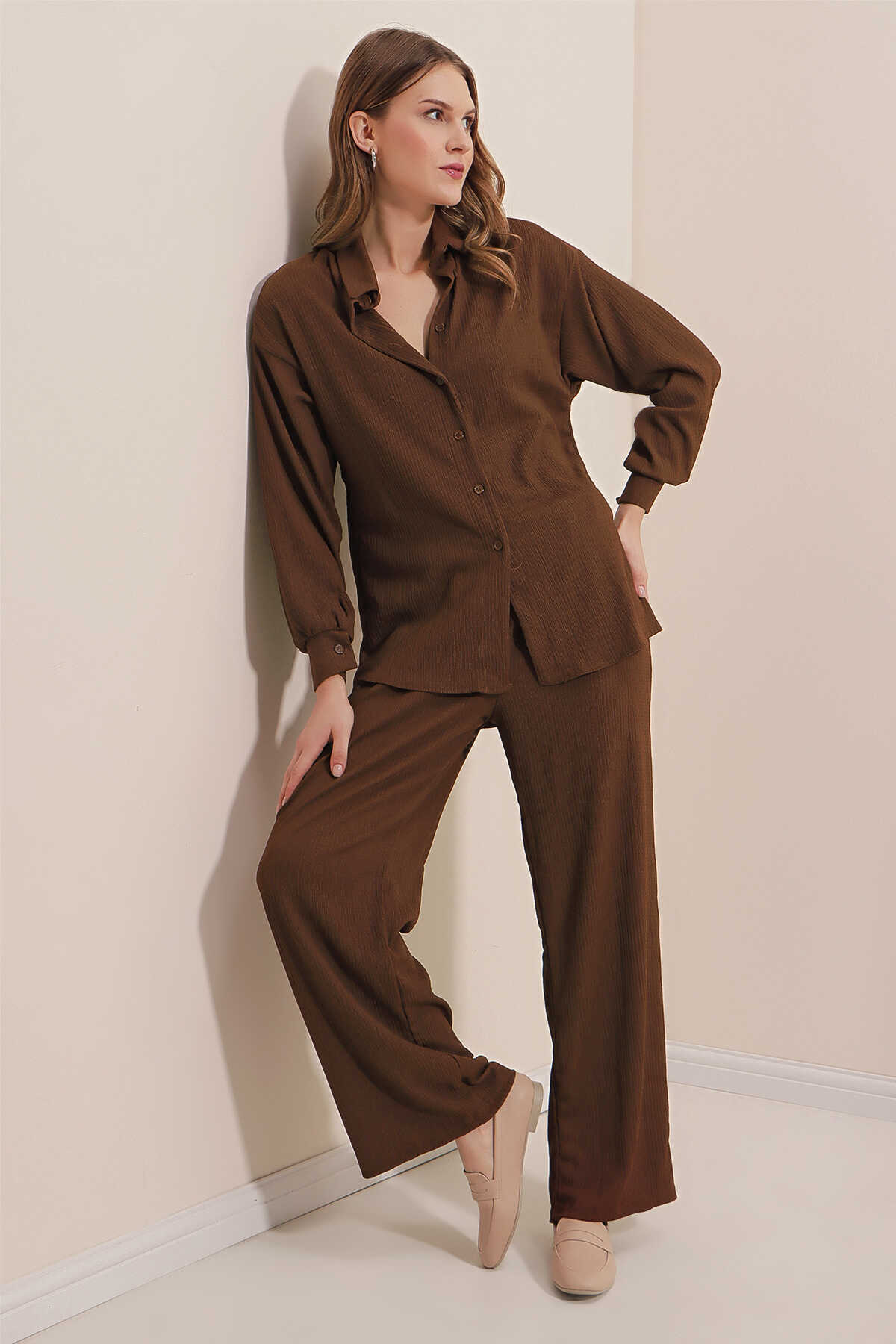 5858 Örme İkili Takım - Kahverengi - Kombin