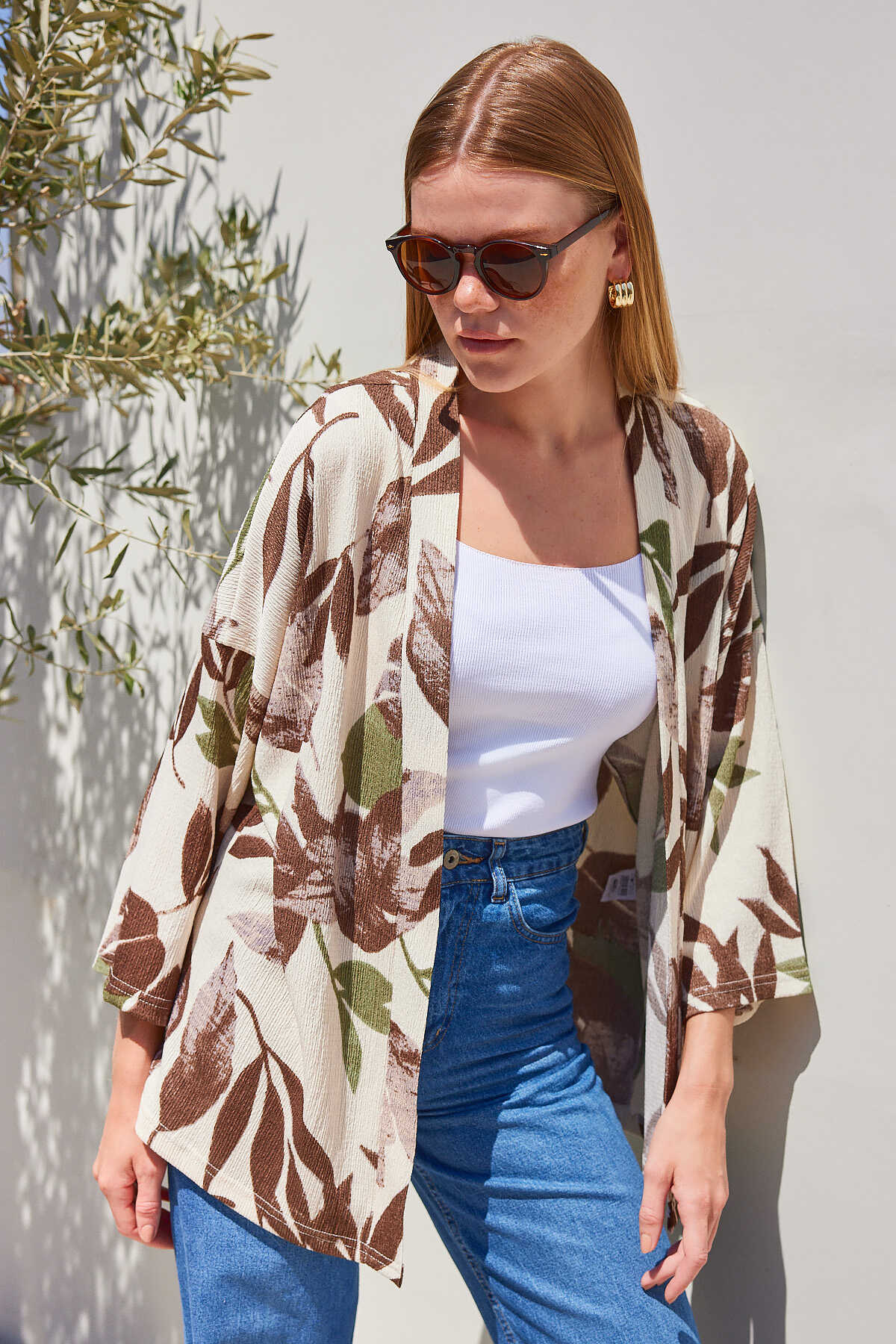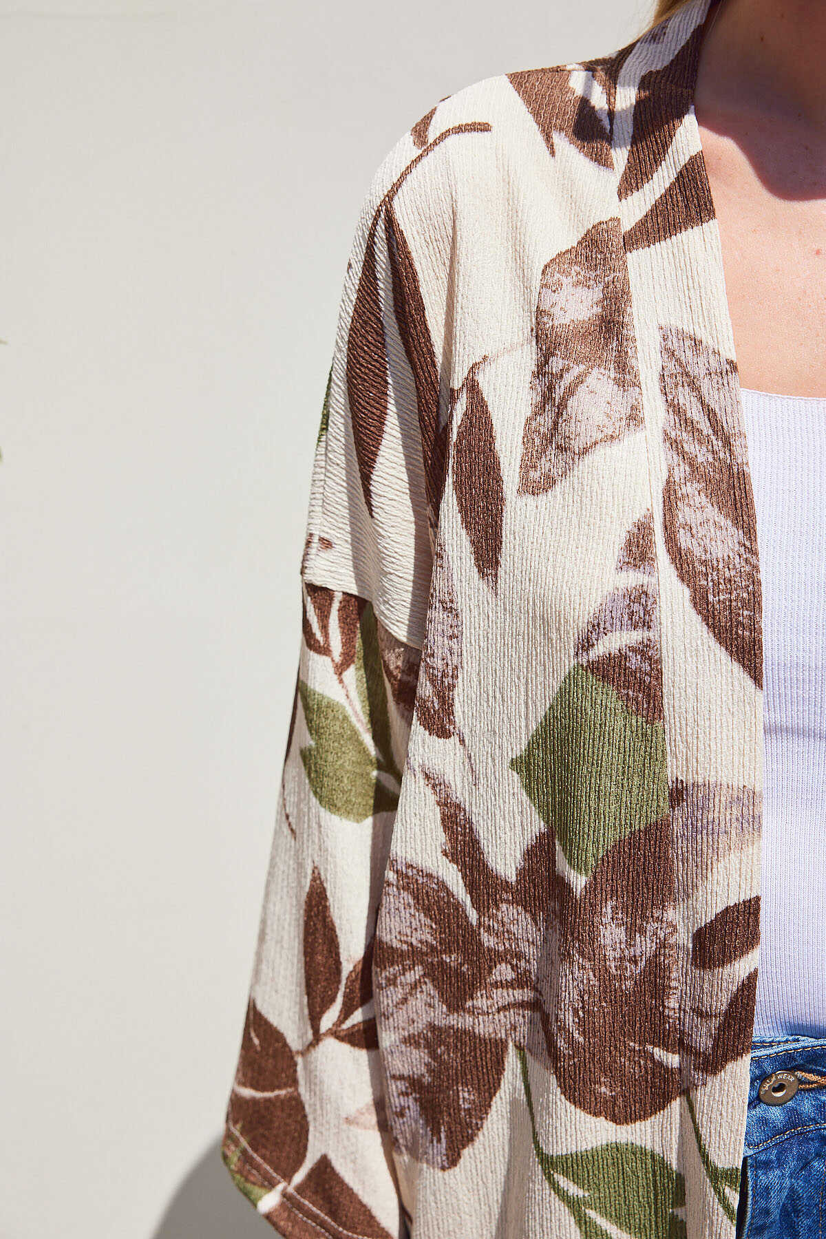 5862 Örme Kimono - Haki - Kombin