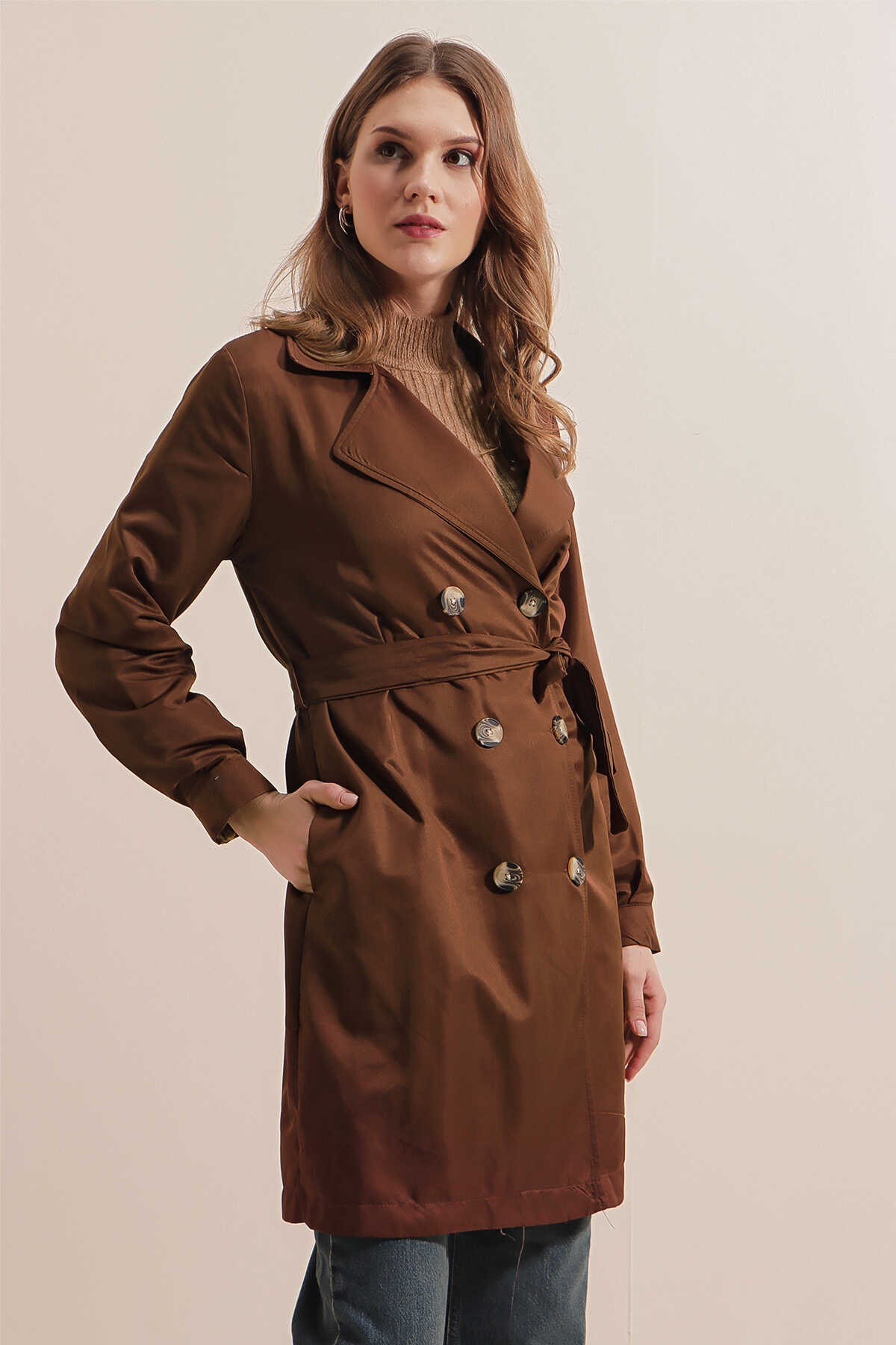 Kruvaze Yaka Trençkot, Kemerli Mevsimlik Trençkot