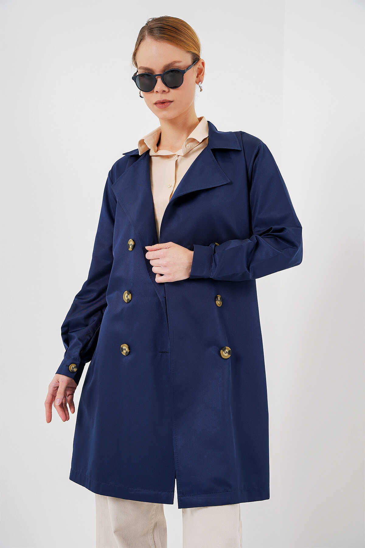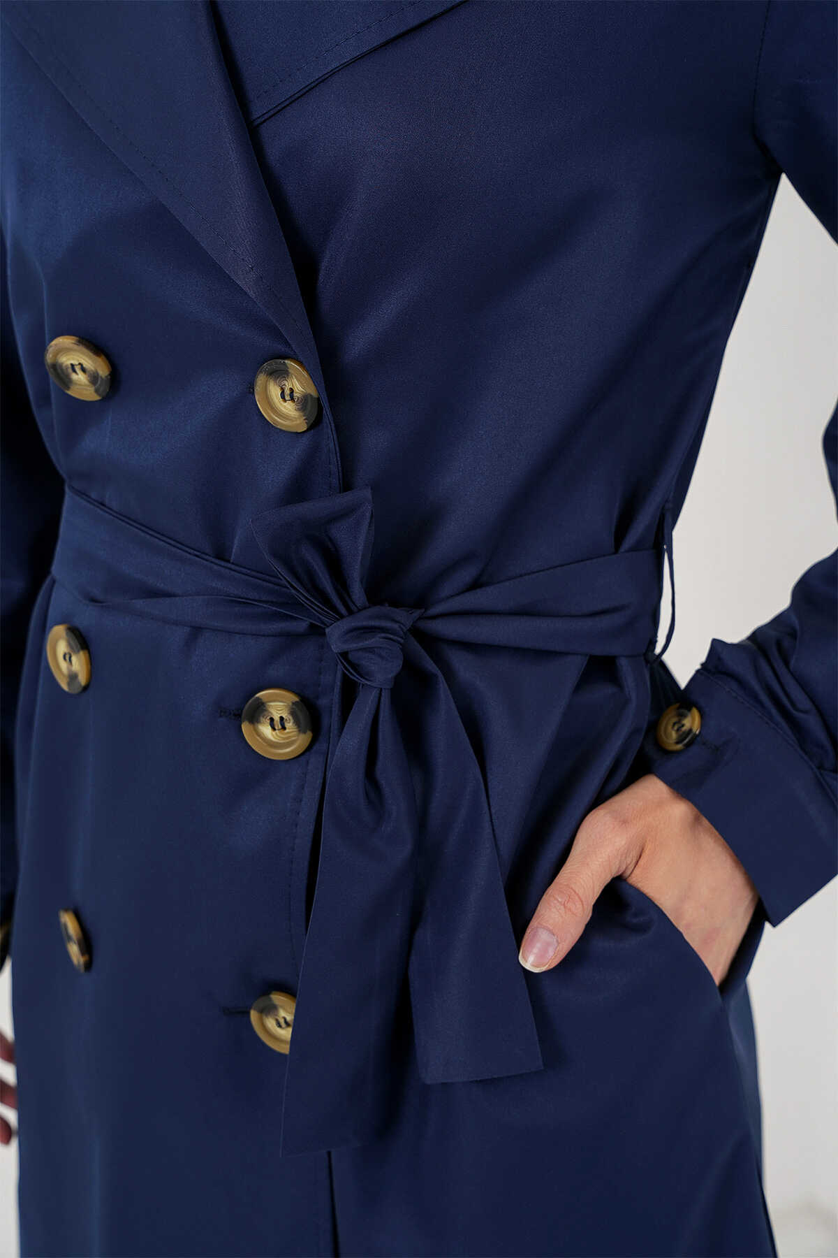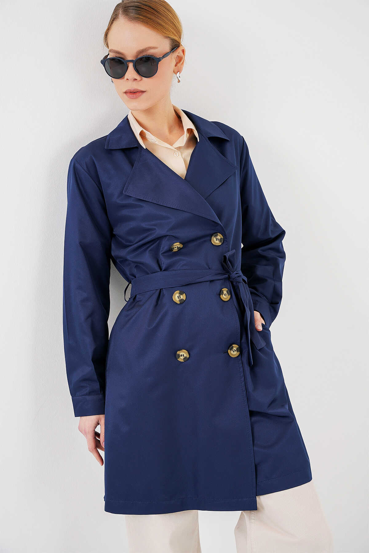 Kruvaze Yaka Trençkot, Kemerli Mevsimlik Trençkot