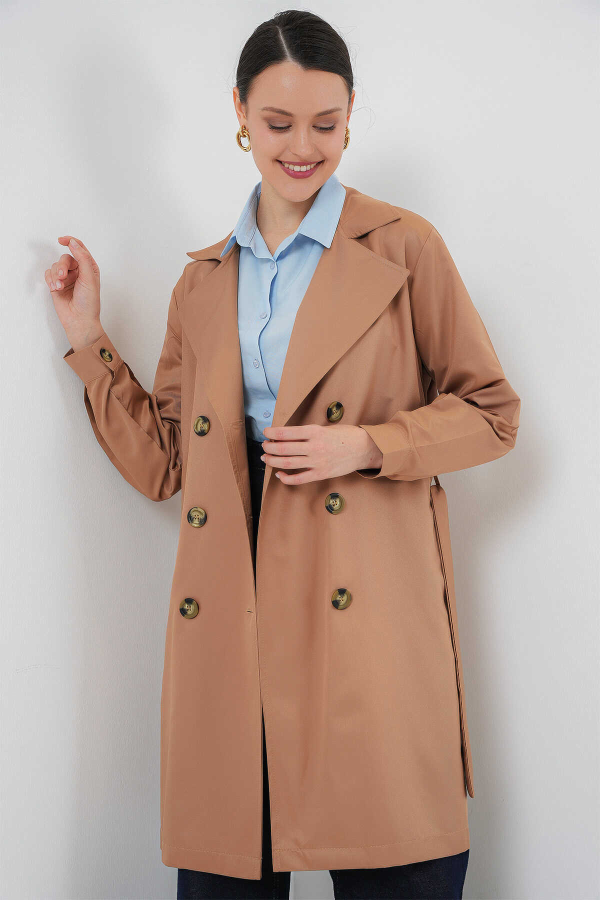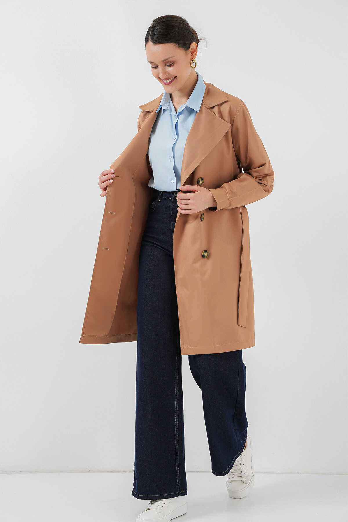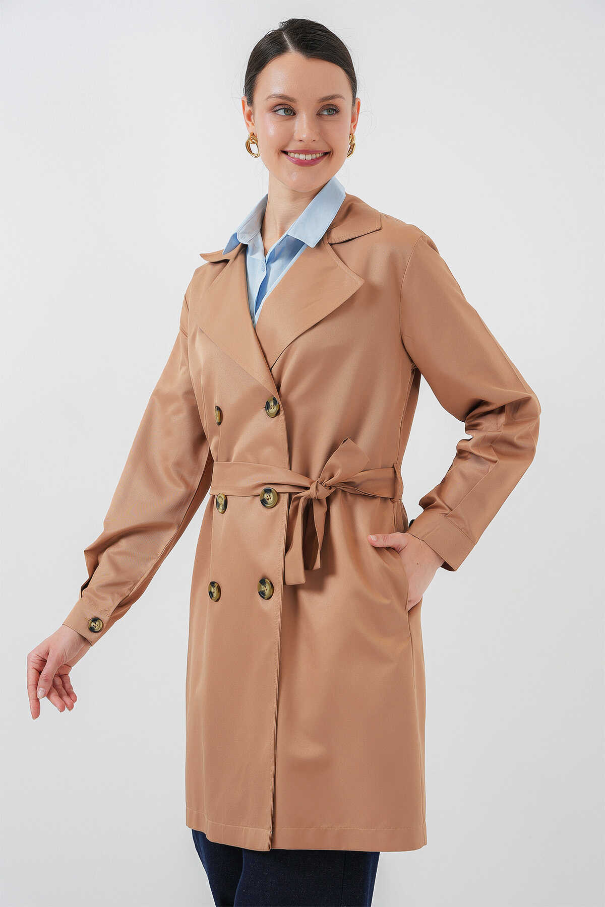 Kruvaze Yaka Trençkot, Kemerli Mevsimlik Trençkot