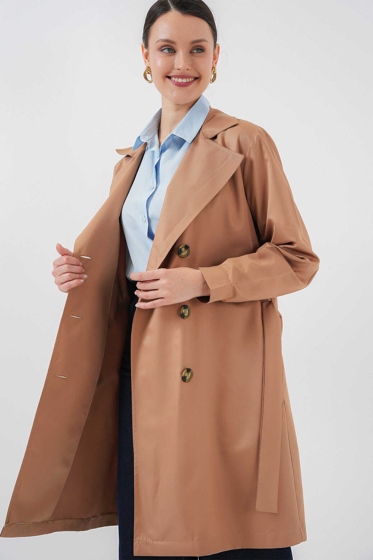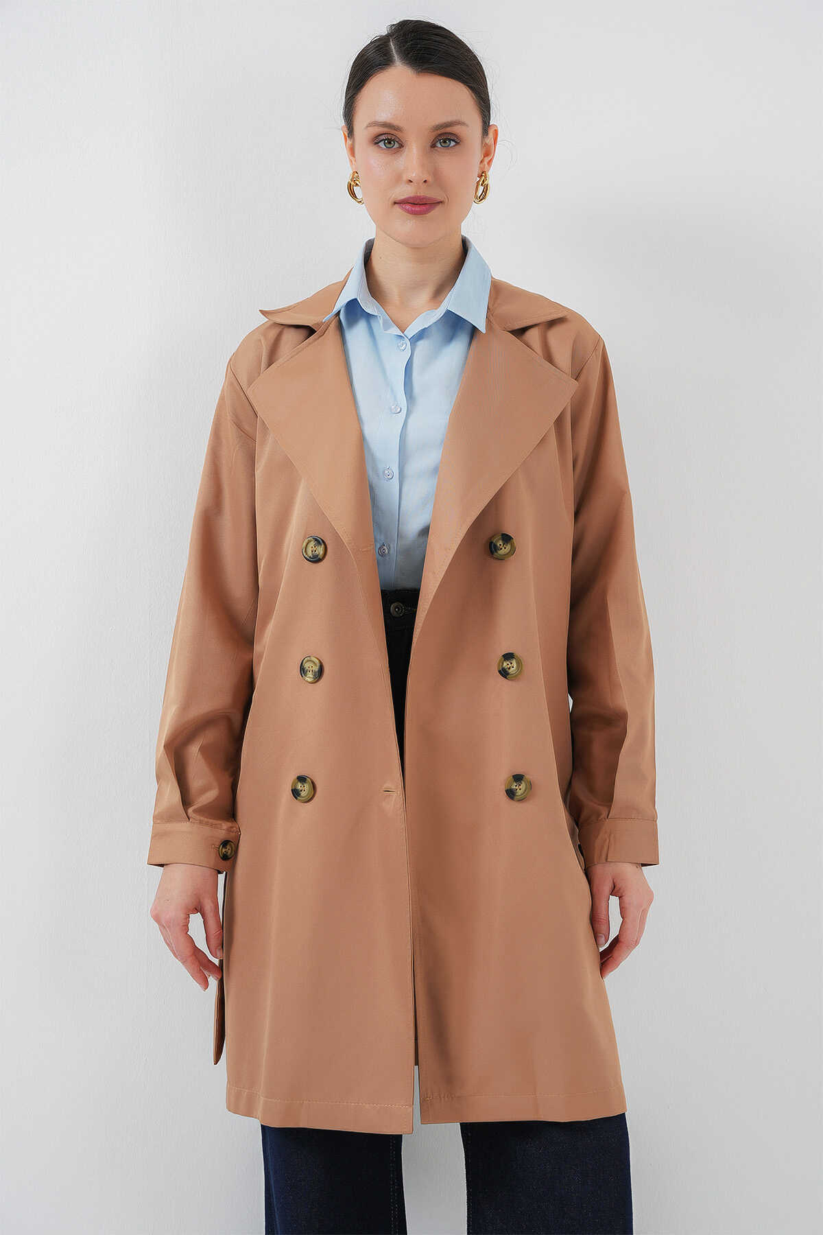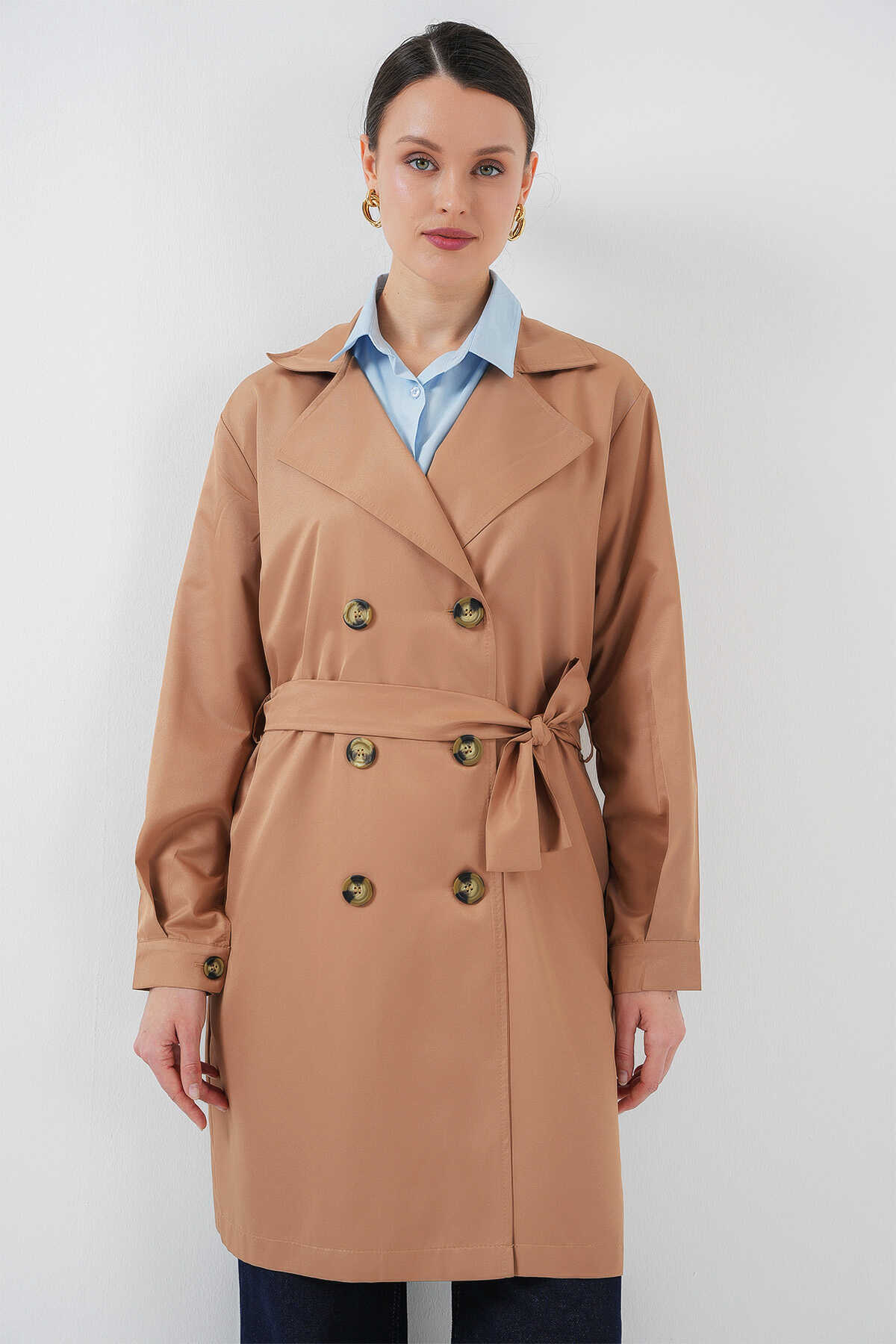 Kruvaze Yaka Trençkot, Kemerli Mevsimlik Trençkot
