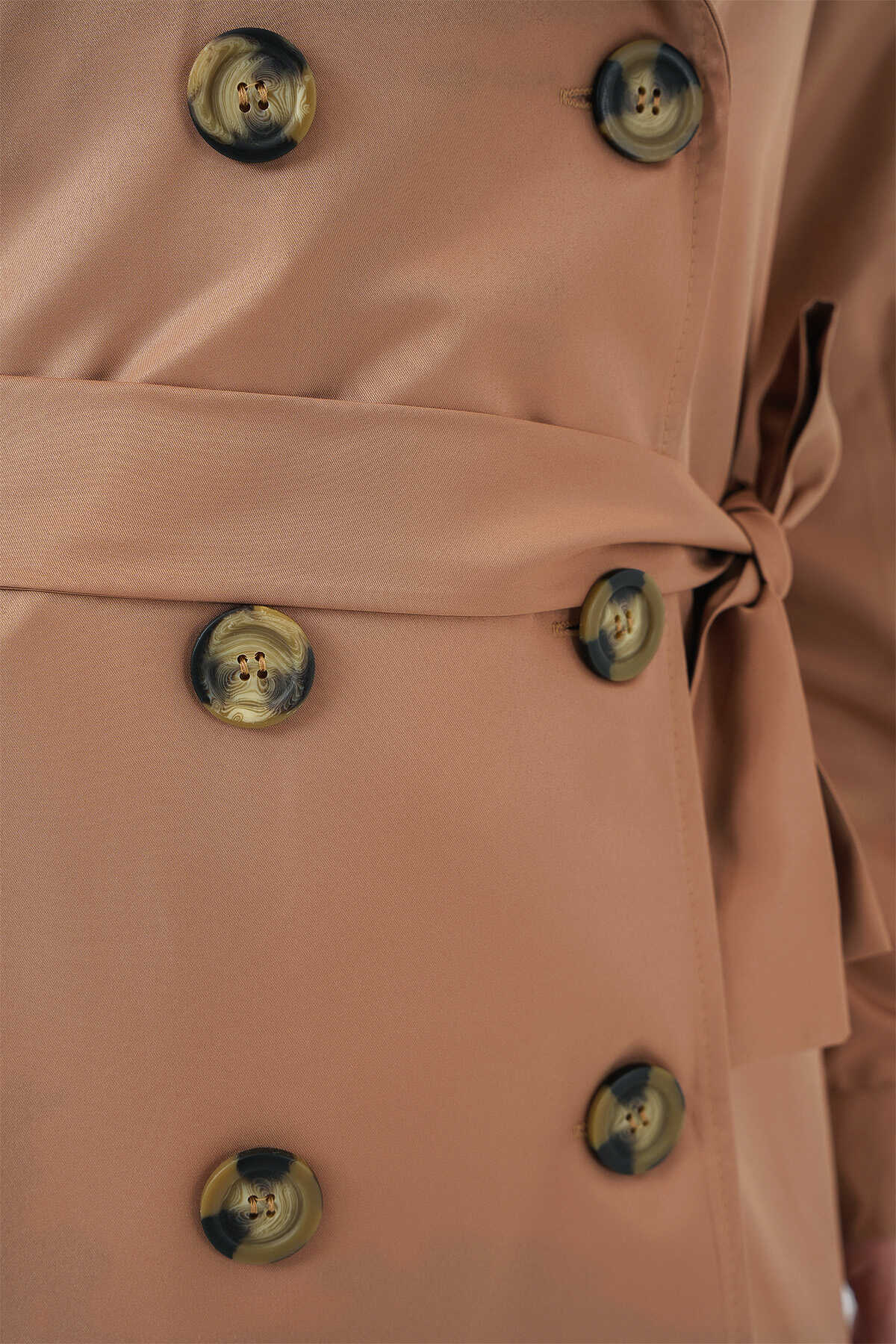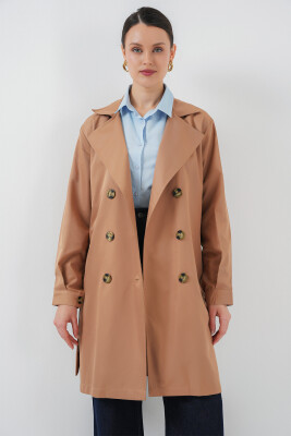 5864 Kruvaze Yaka Kısa Trençkot - Taba