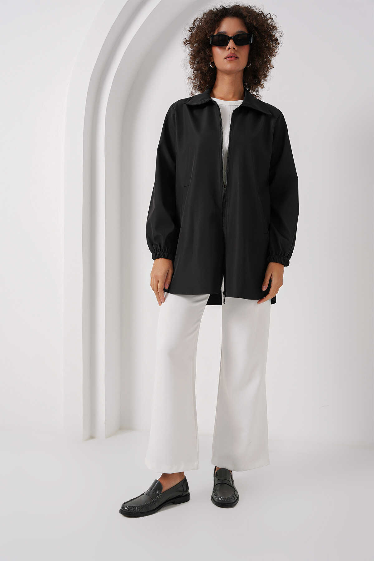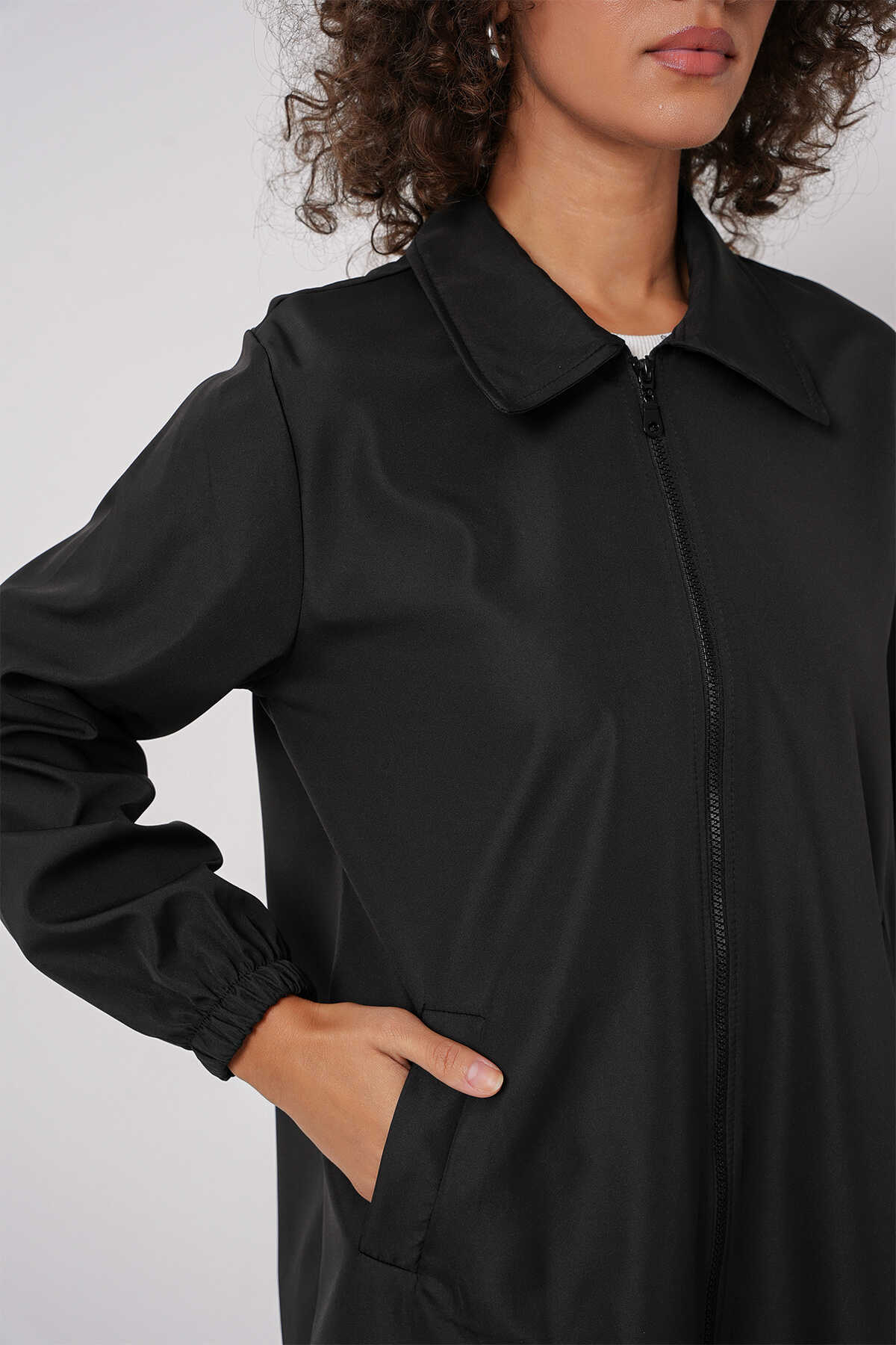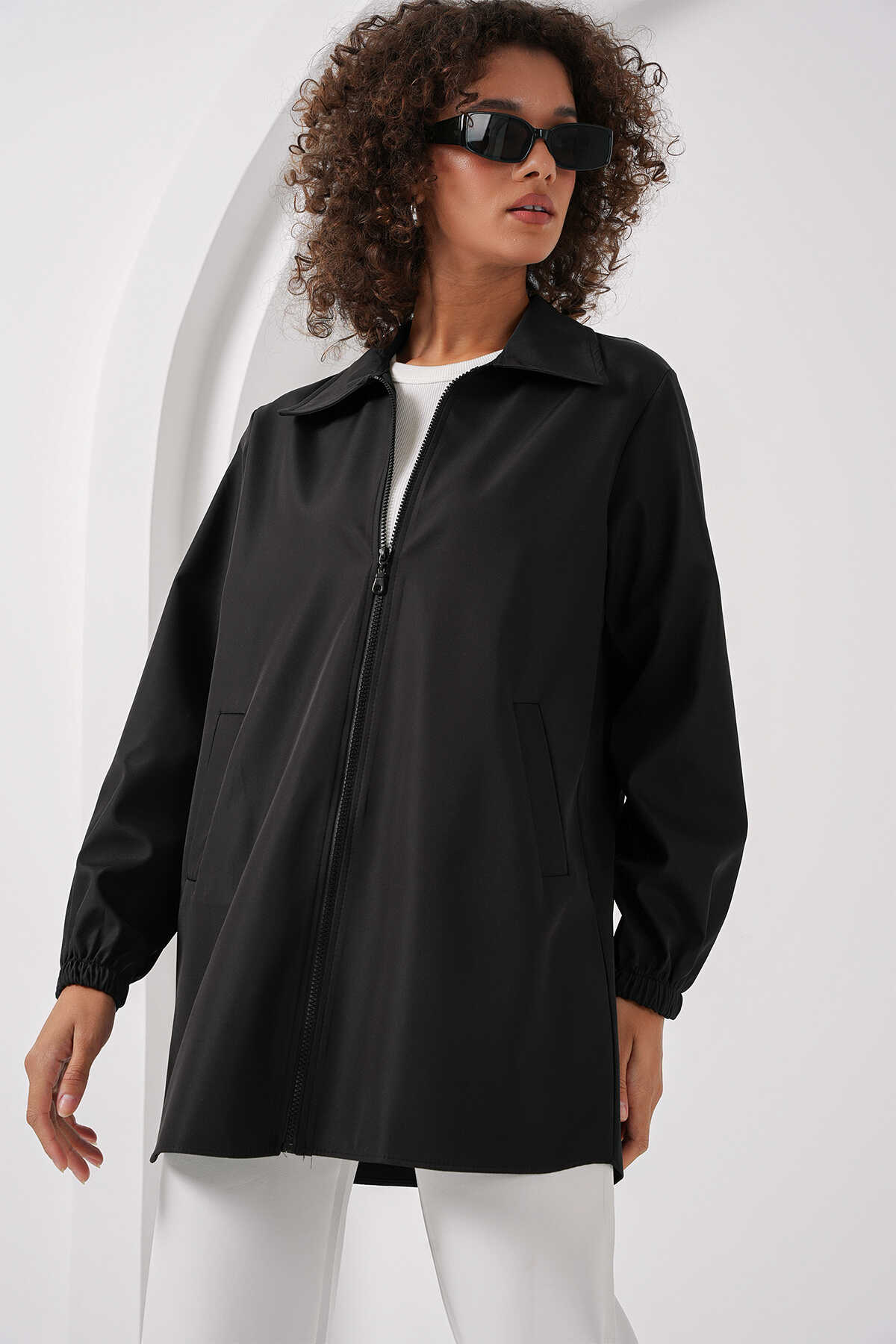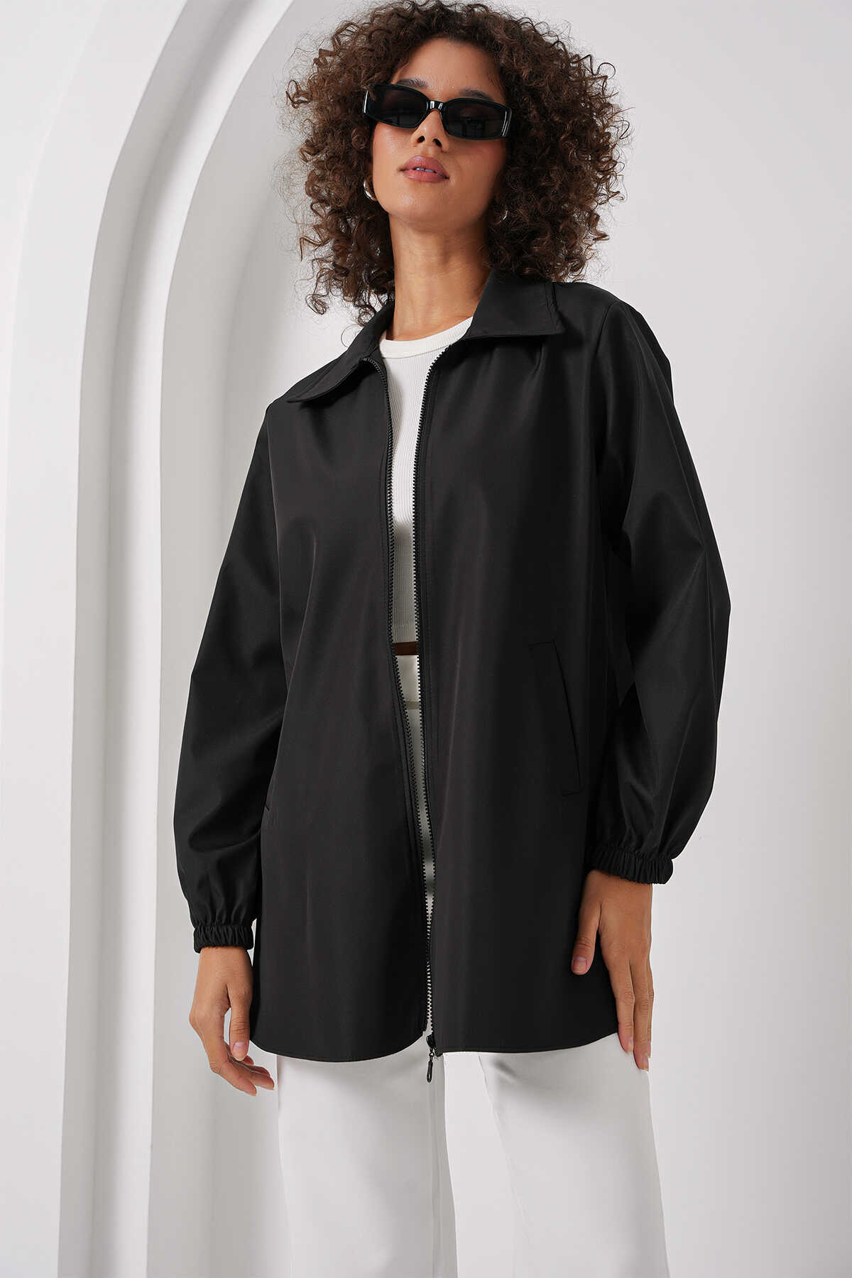 5909 Çift Renkli Mevsimlik Trençkot - D. Siyah - Kombin