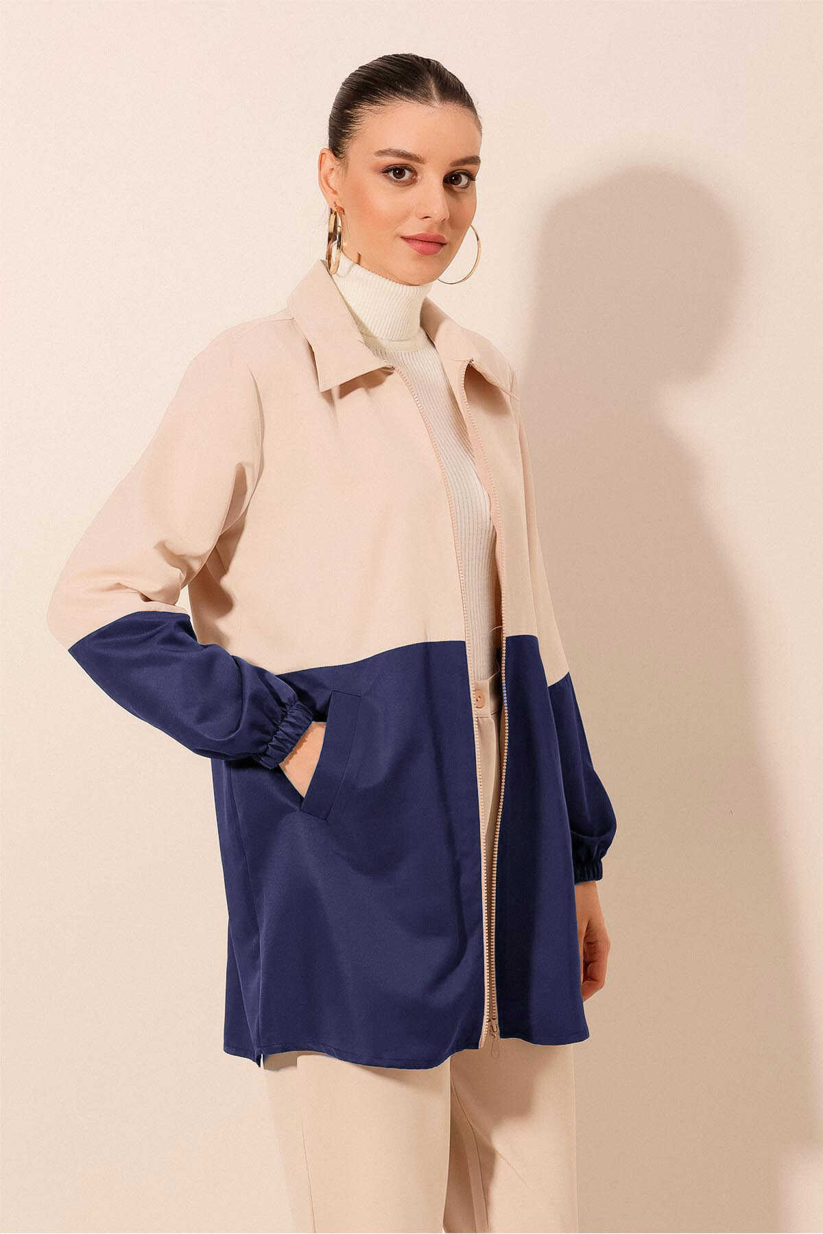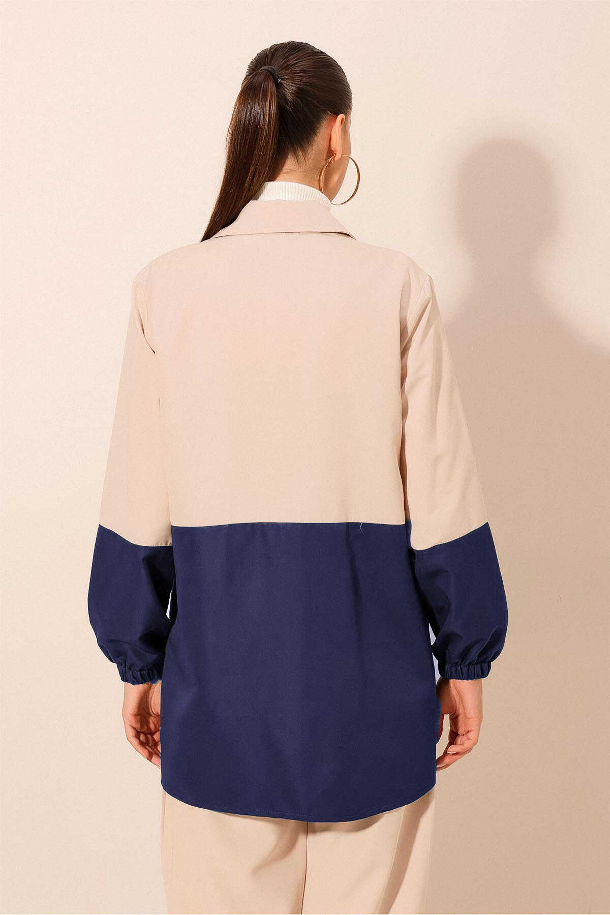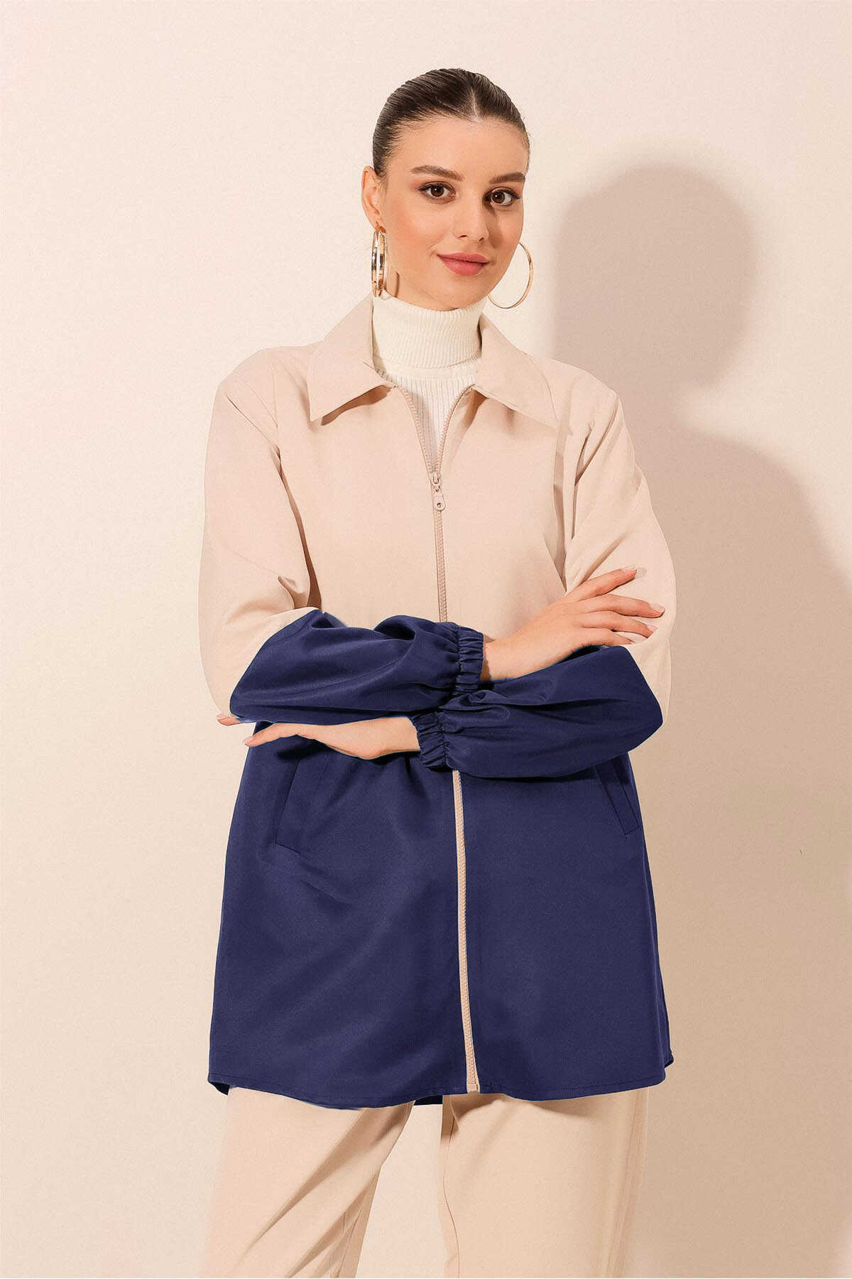 5909 Çift Renkli Mevsimlik Trençkot - Lacivert - Kombin