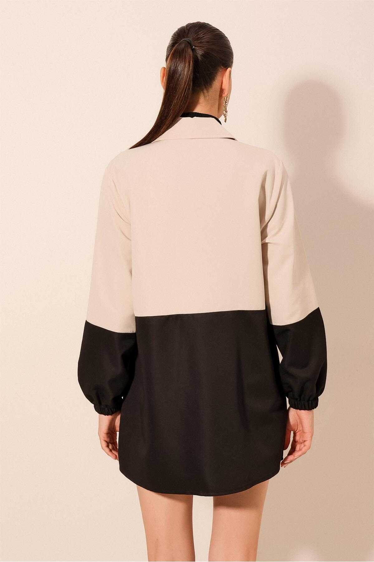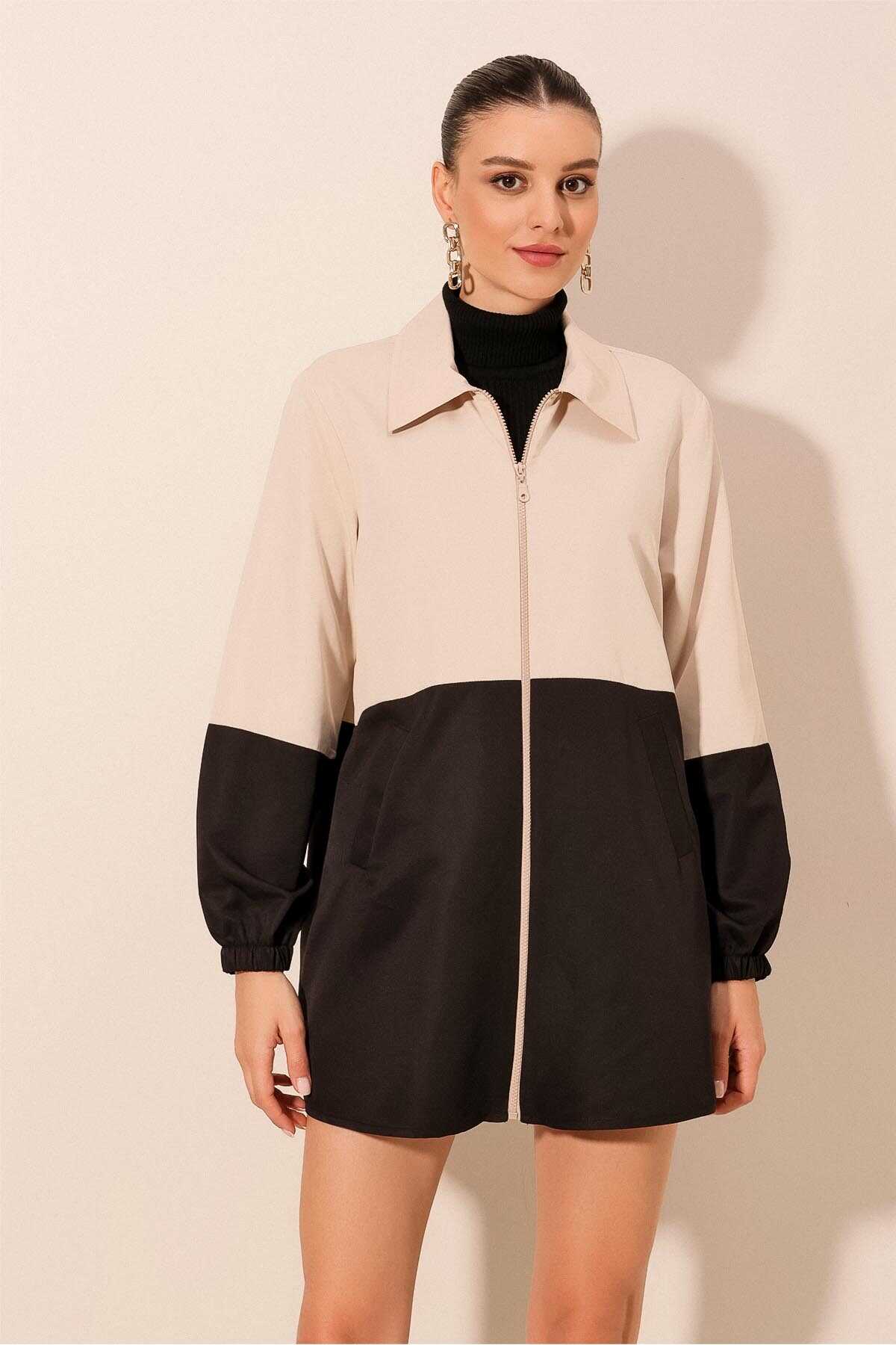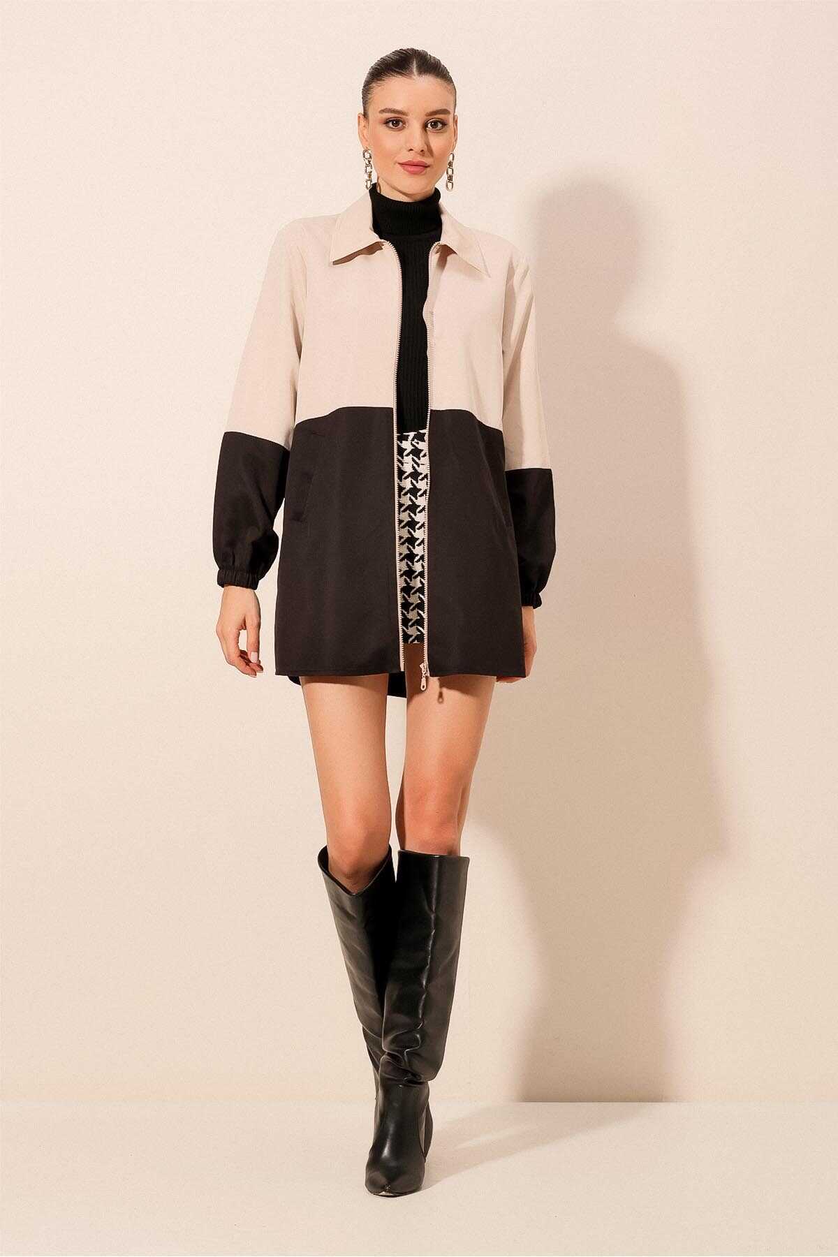 5909 Çift Renkli Mevsimlik Trençkot - Siyah - Kombin