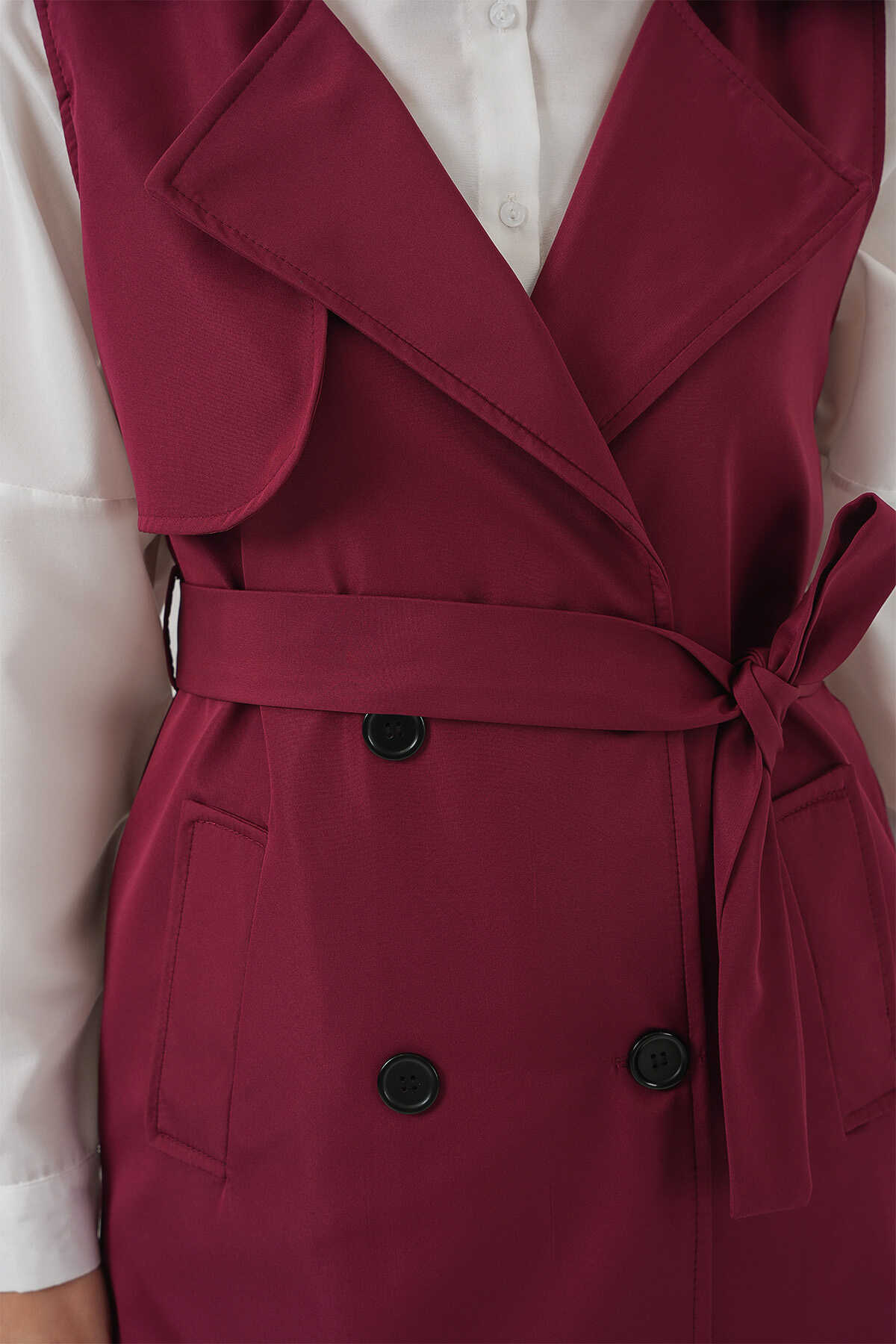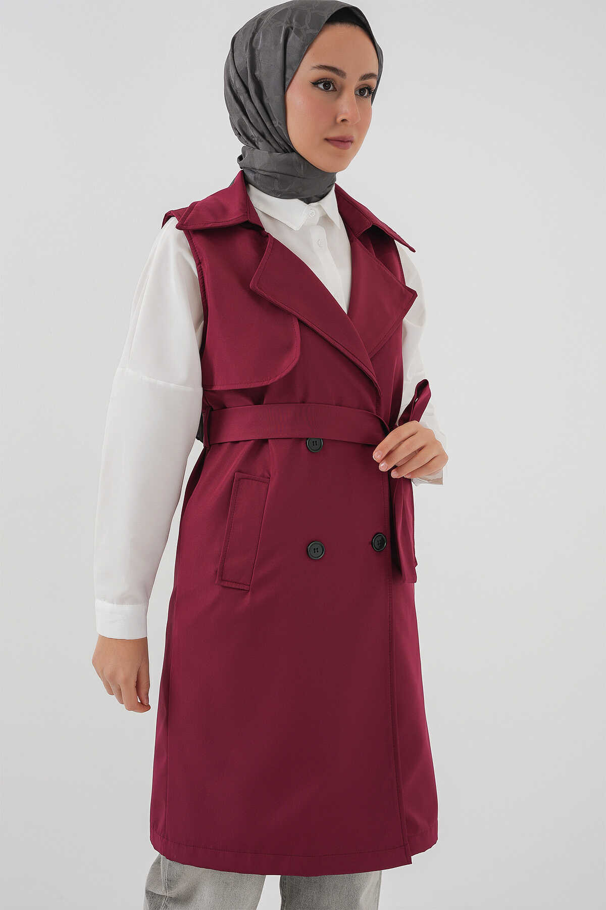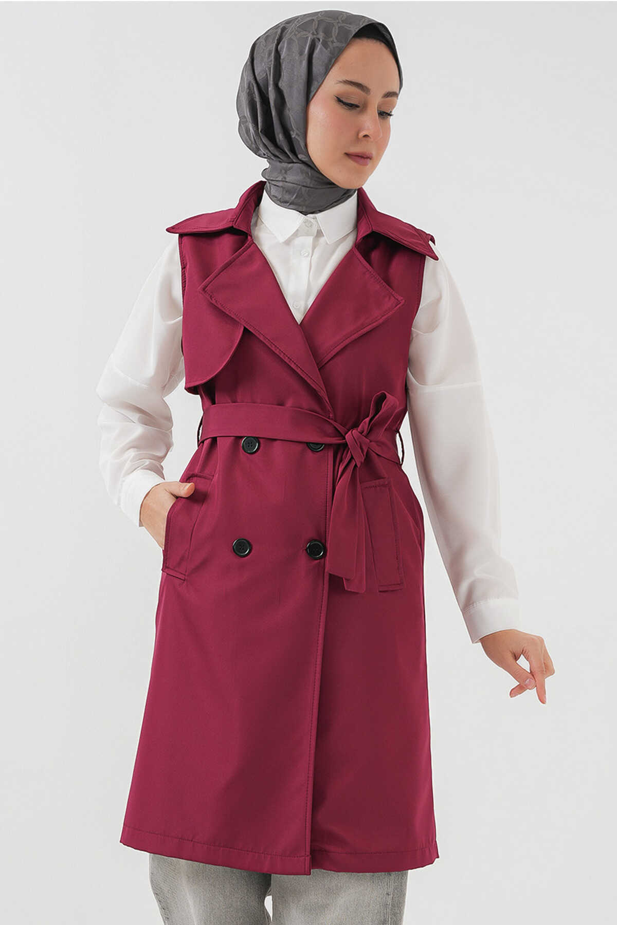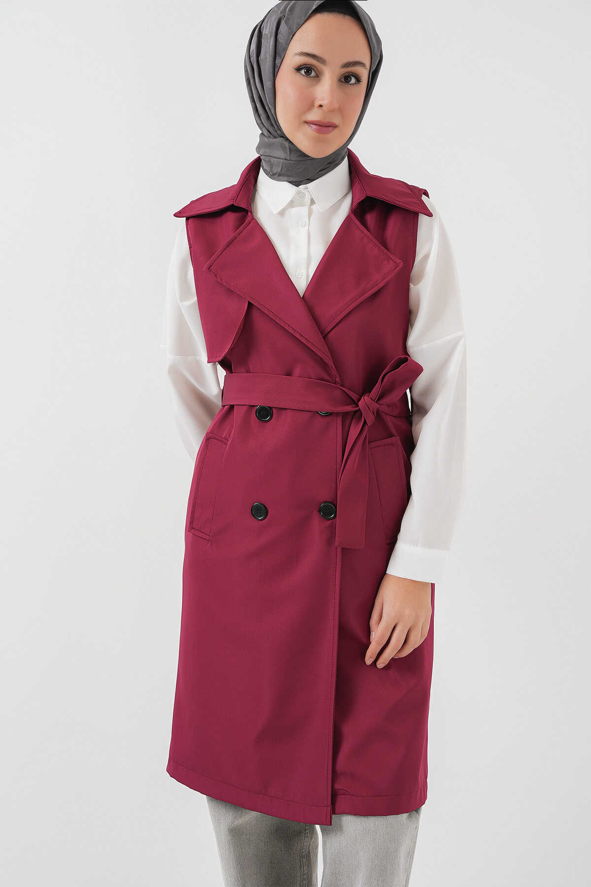 Kruvaze Yaka Trençkot, Kemerli Mevsimlik Kolsuz Trençkot