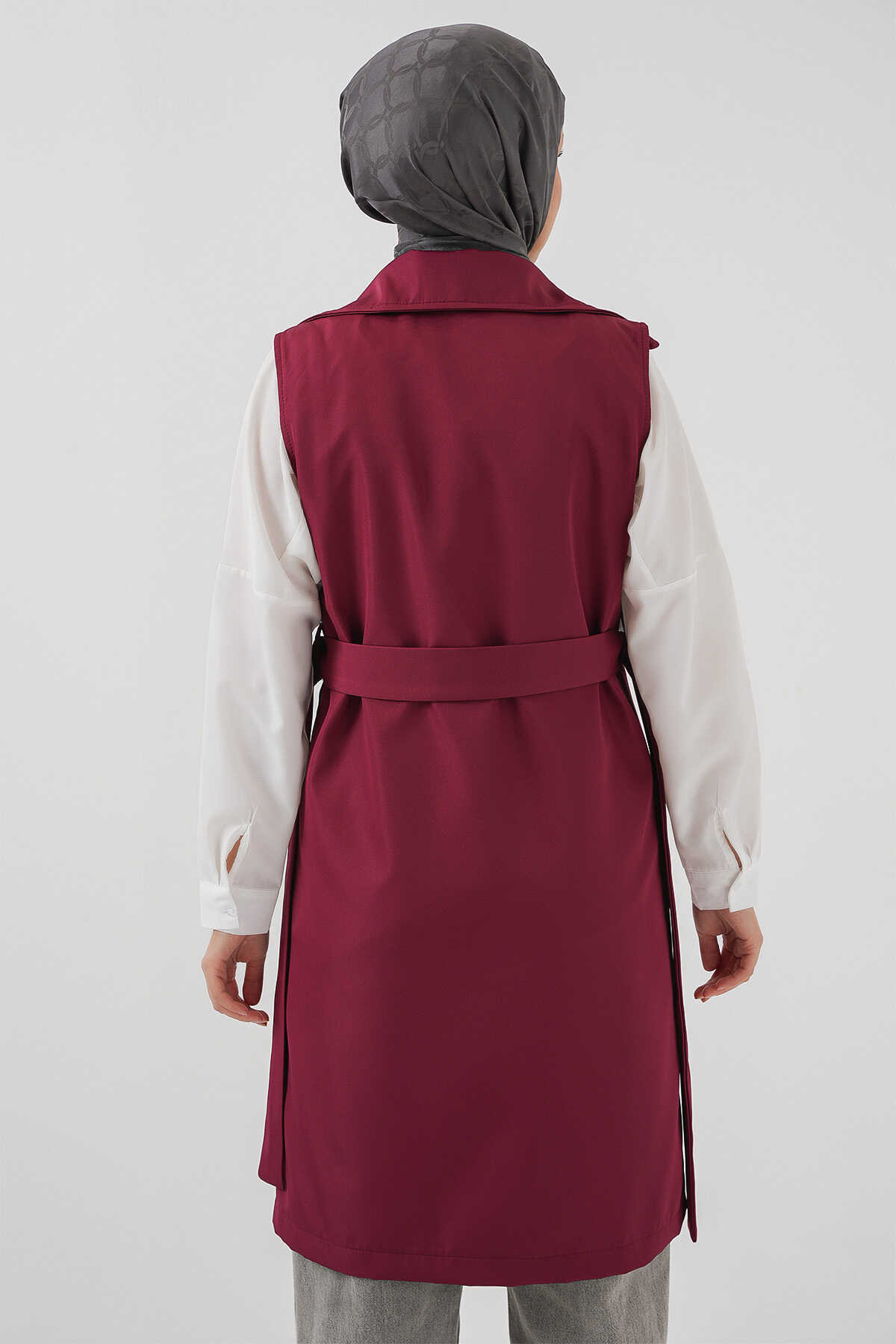 Kruvaze Yaka Trençkot, Kemerli Mevsimlik Kolsuz Trençkot