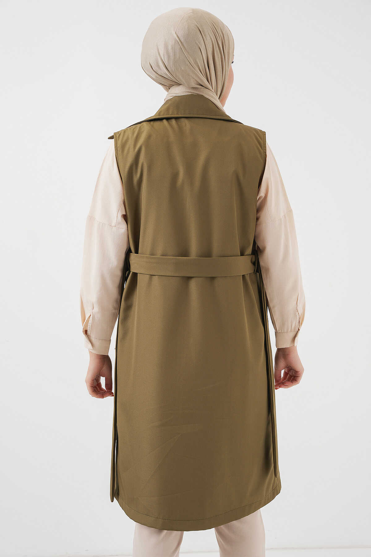 5911 Kruvaze Yaka Trençkot Yelek - Haki