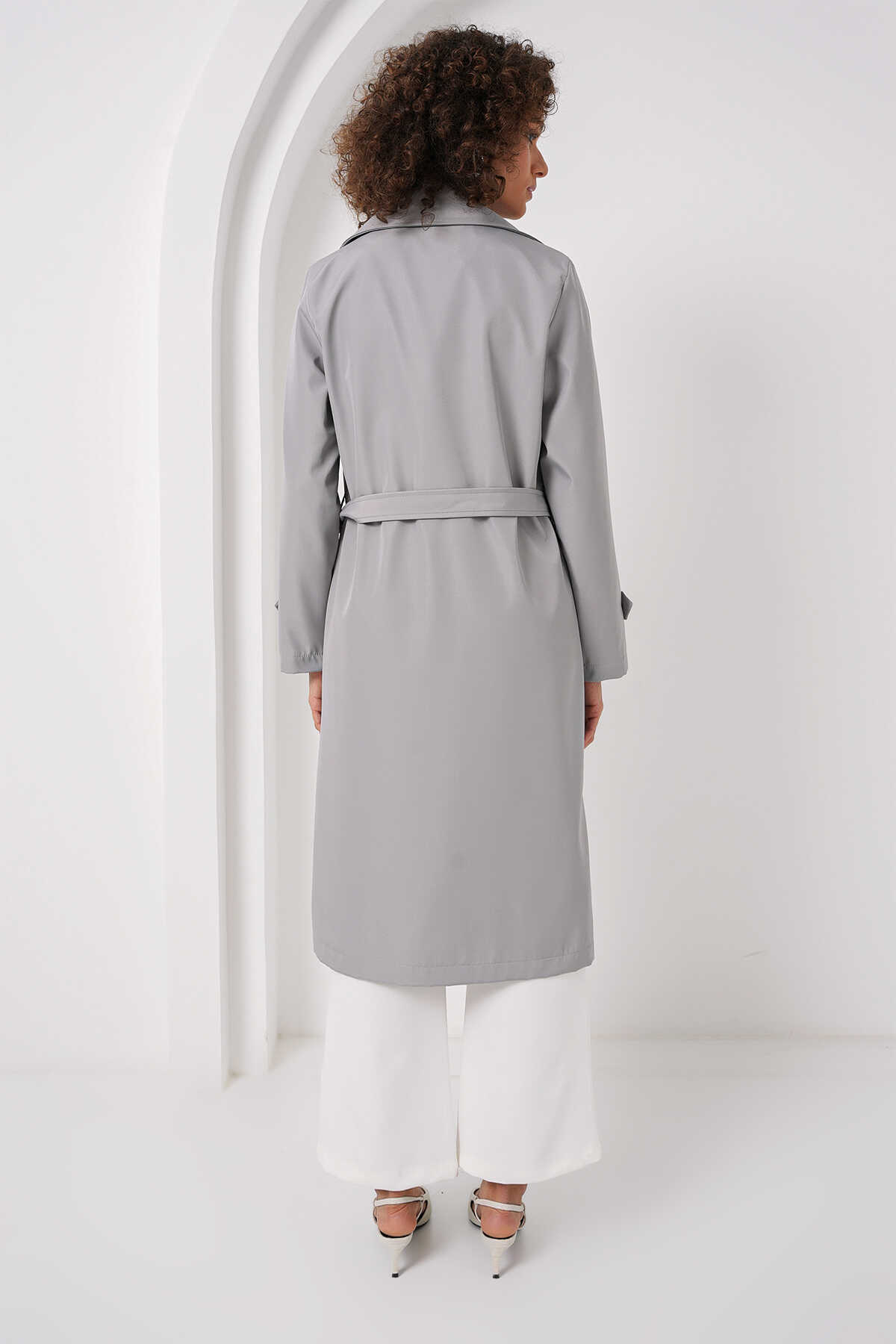 5918 Kruvaze Yaka Trençkot - Gri - Kombin