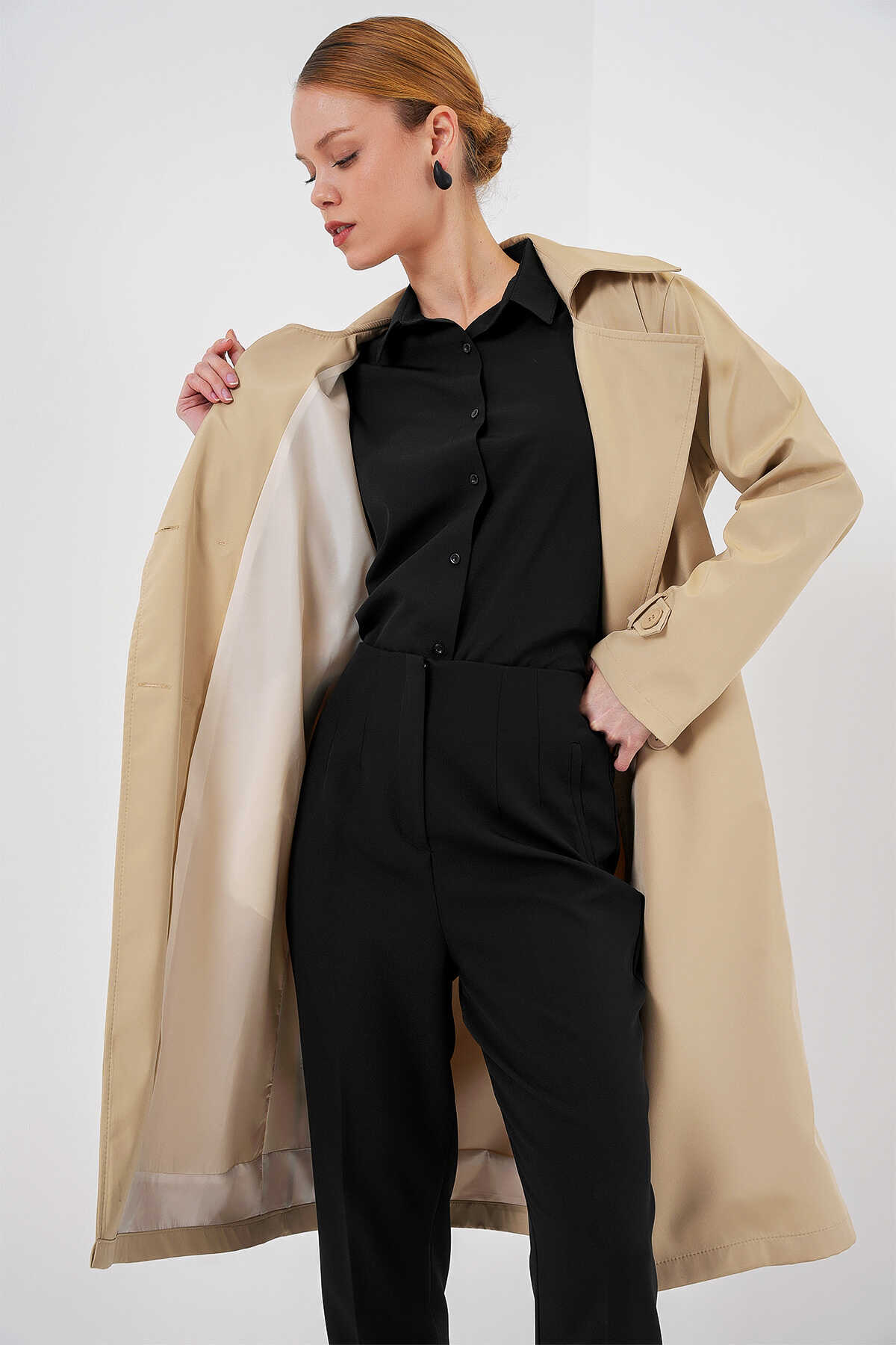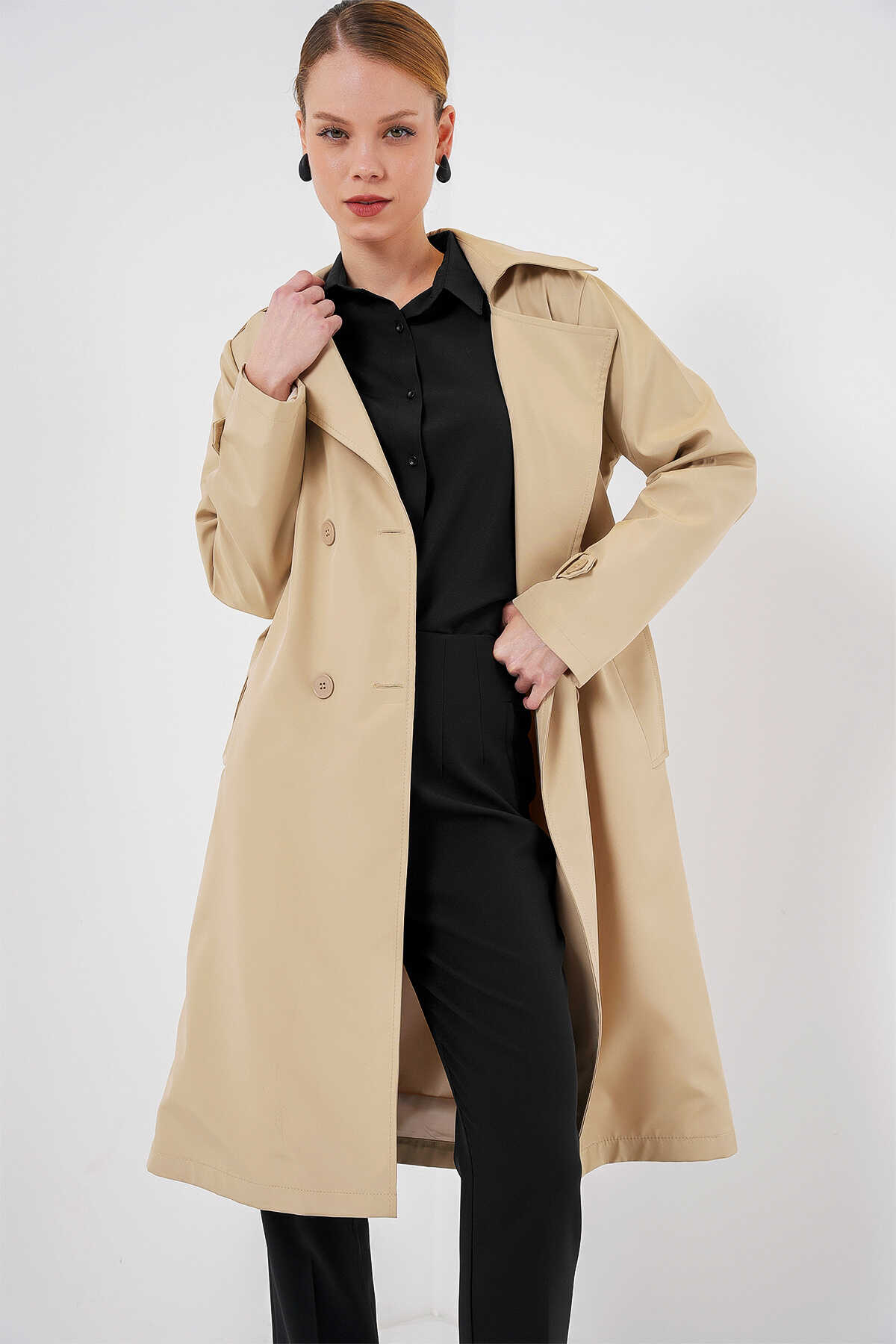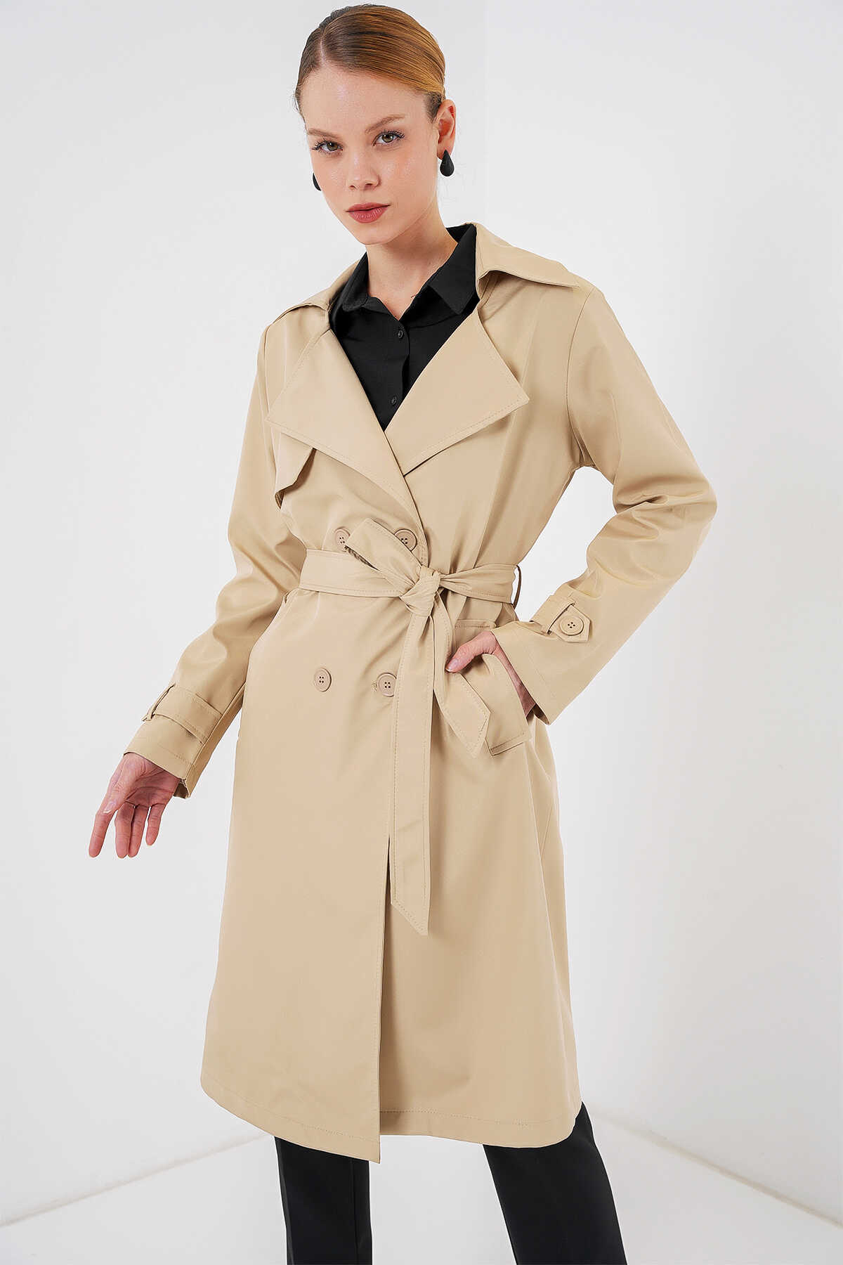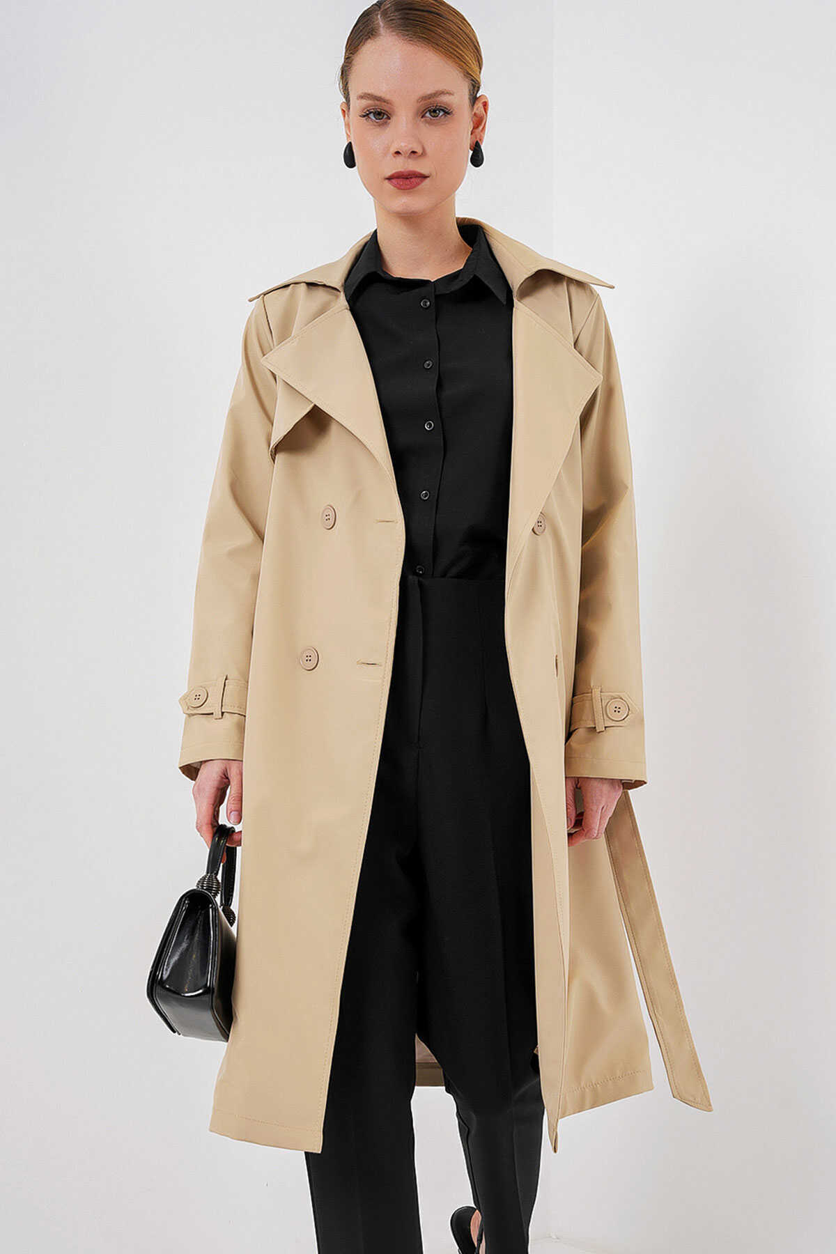5918 Kruvaze Yaka Trençkot - K. Bej - Kombin