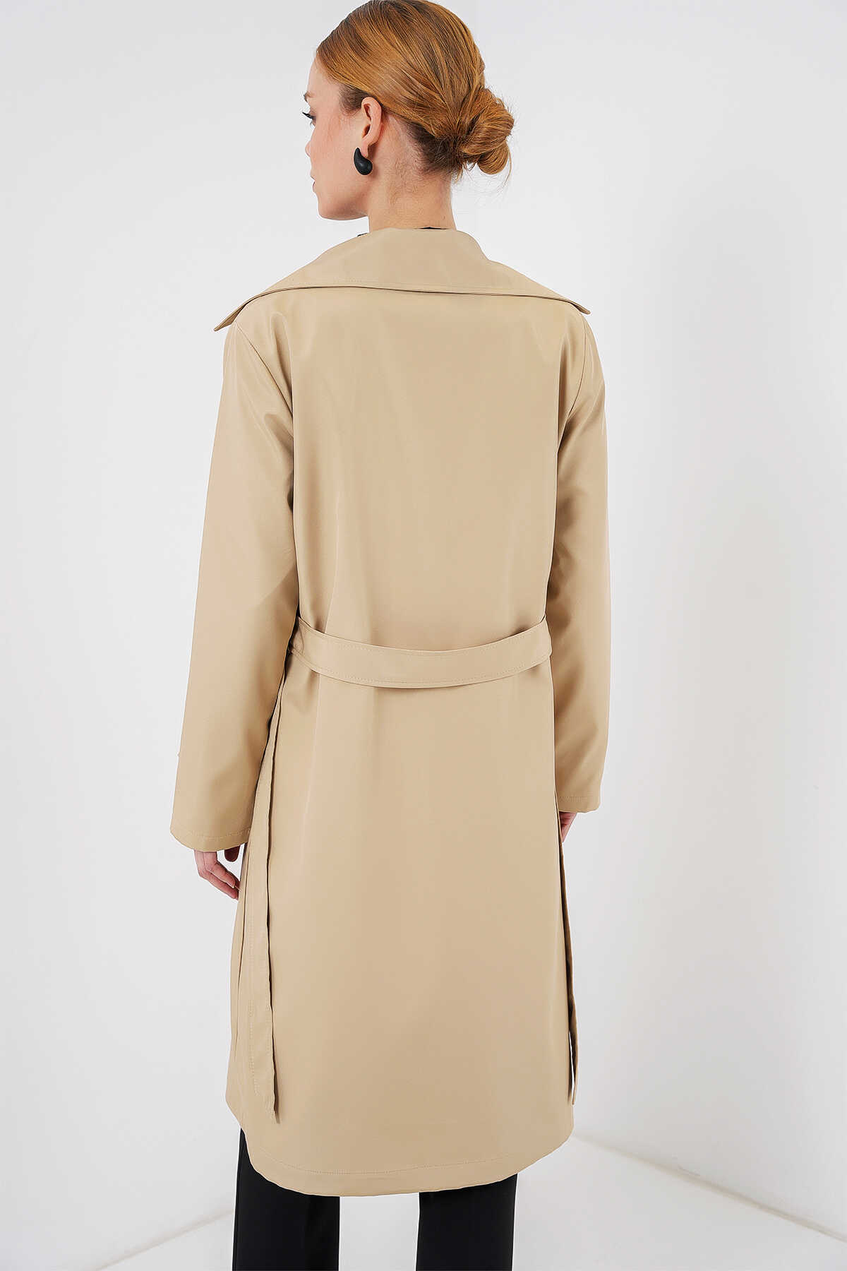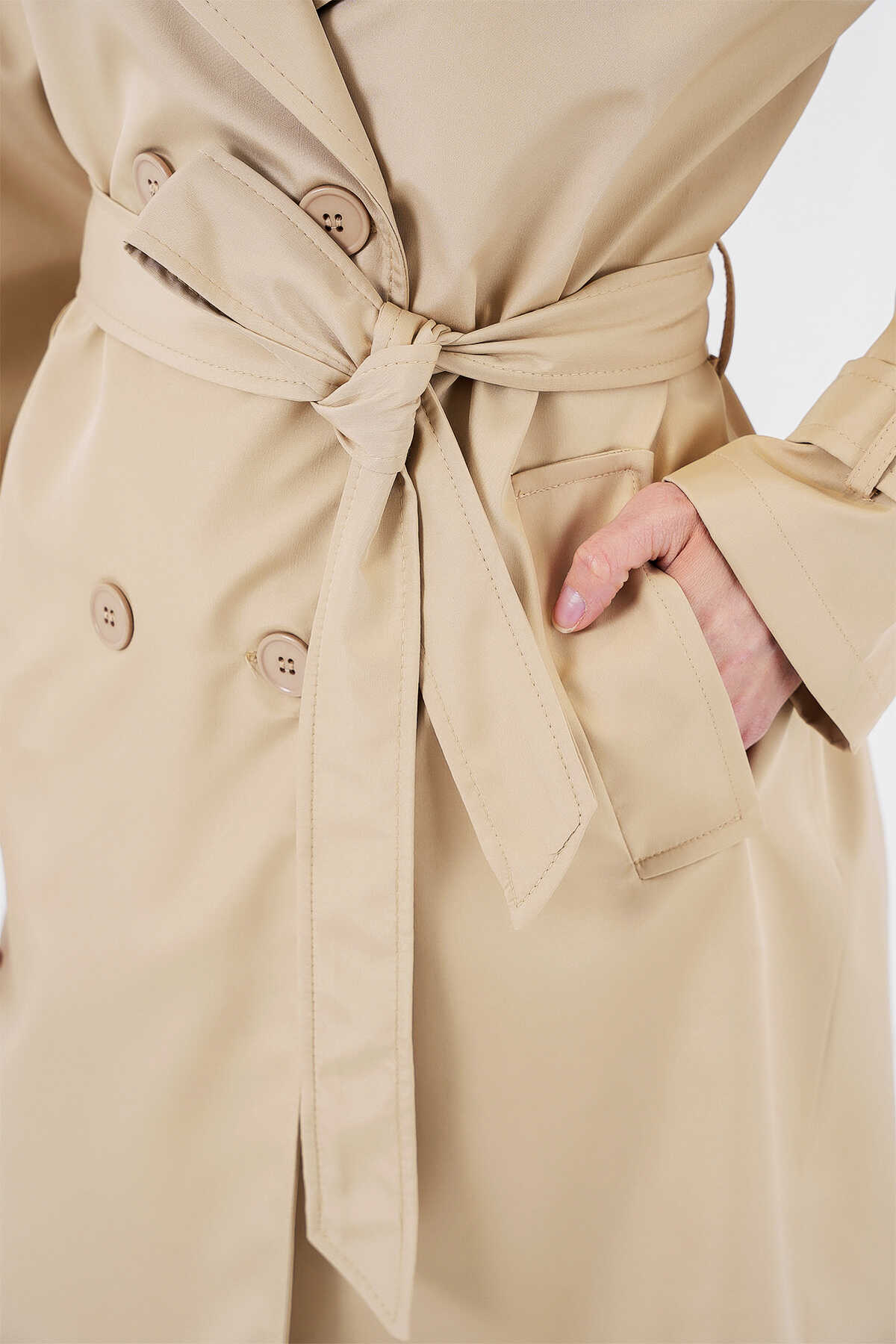 5918 Kruvaze Yaka Trençkot - K. Bej