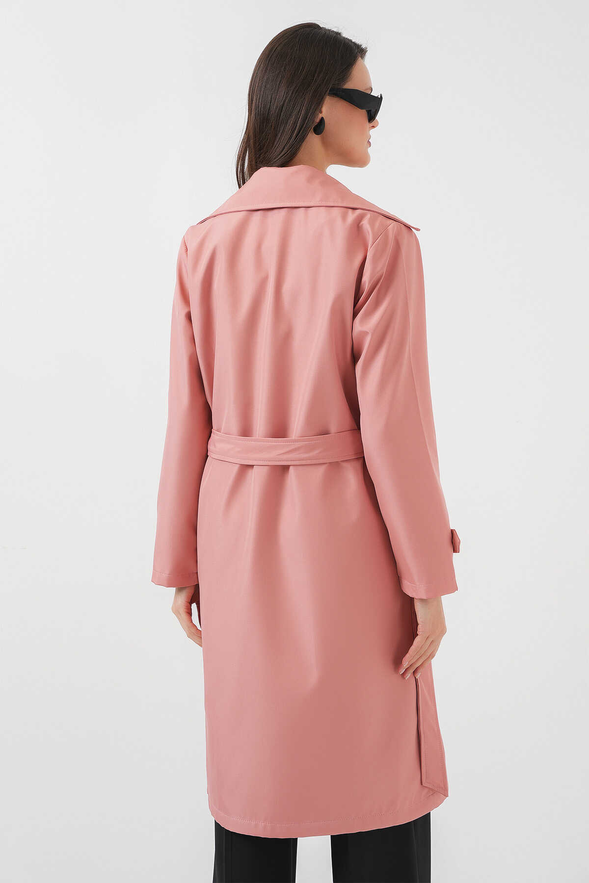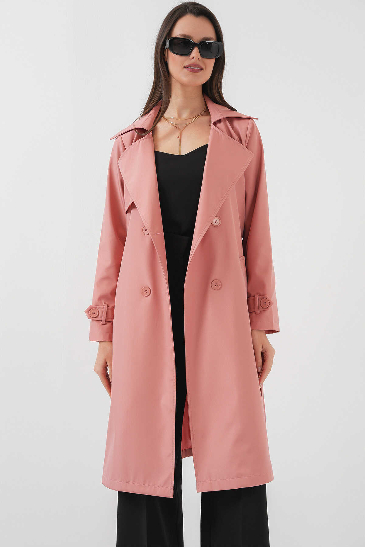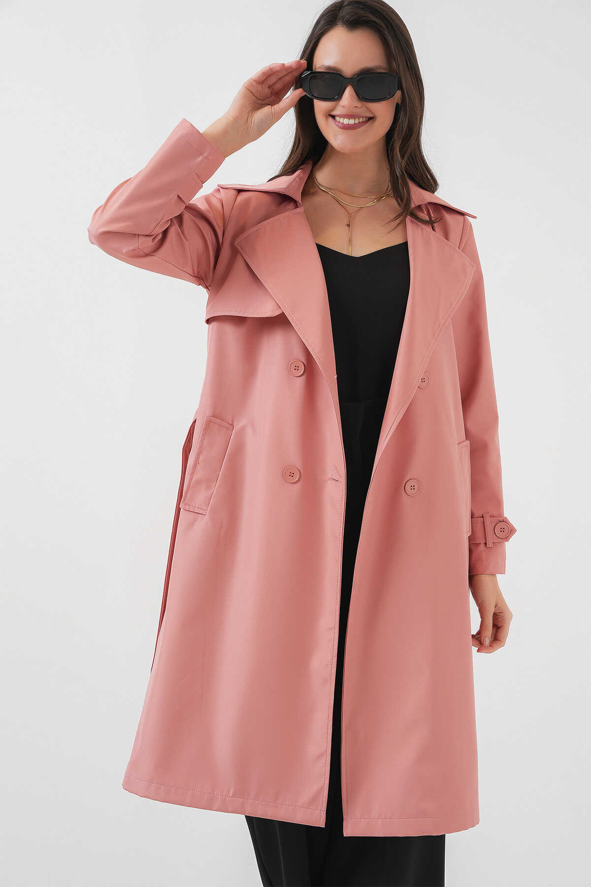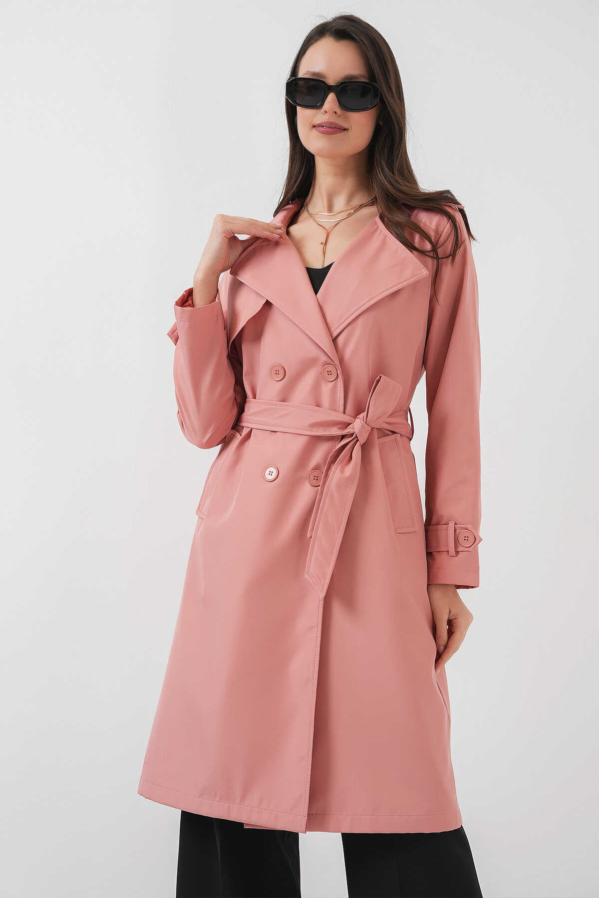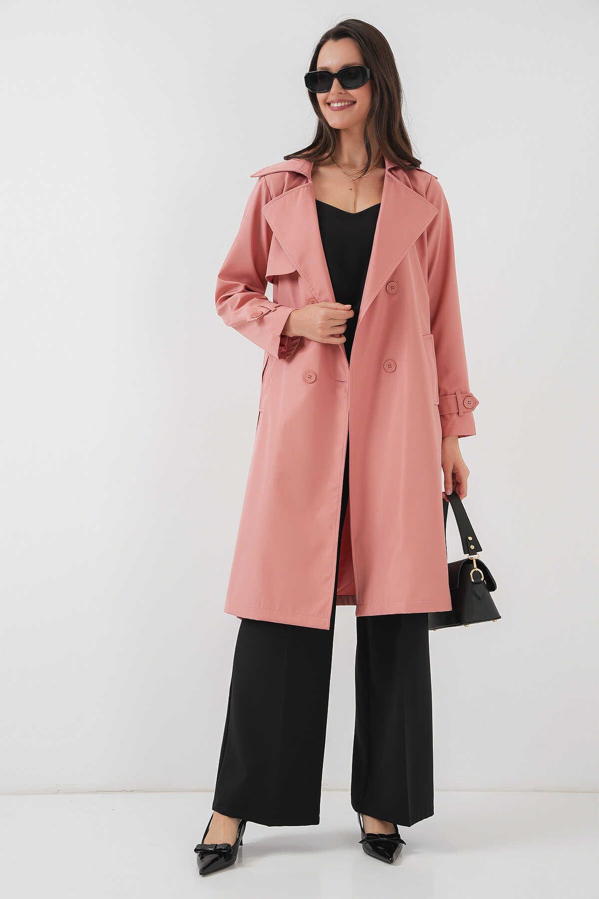 5918 Kruvaze Yaka Trençkot - Pembe - Kombin
