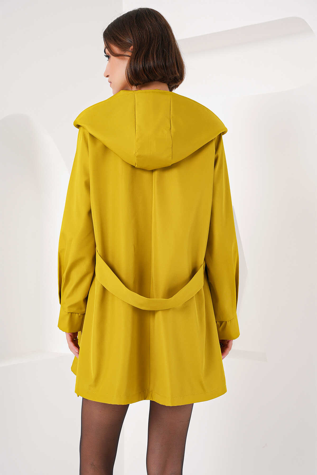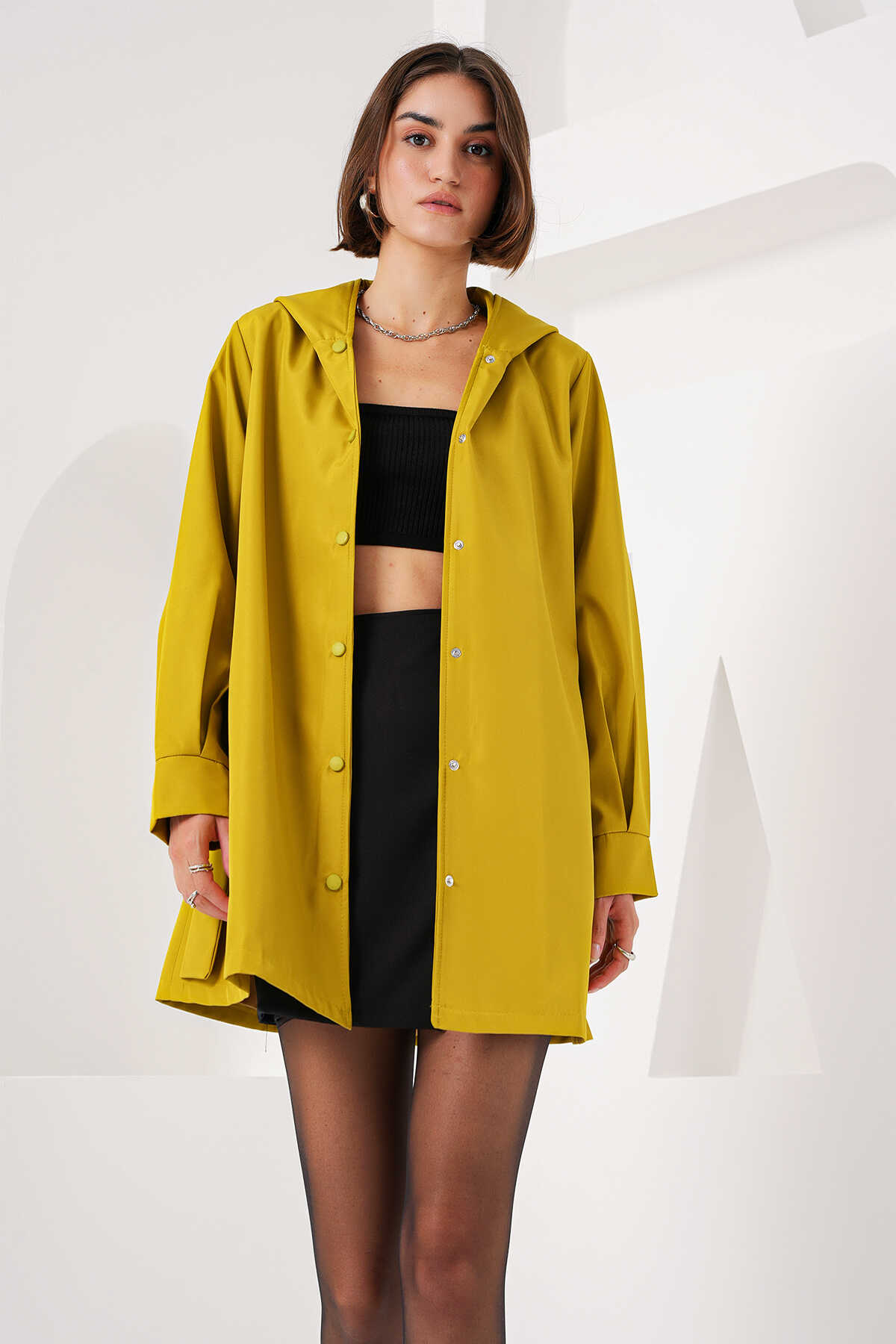 5934 Kapüşonlu Trençkot - Yağ Yeşil - Kombin