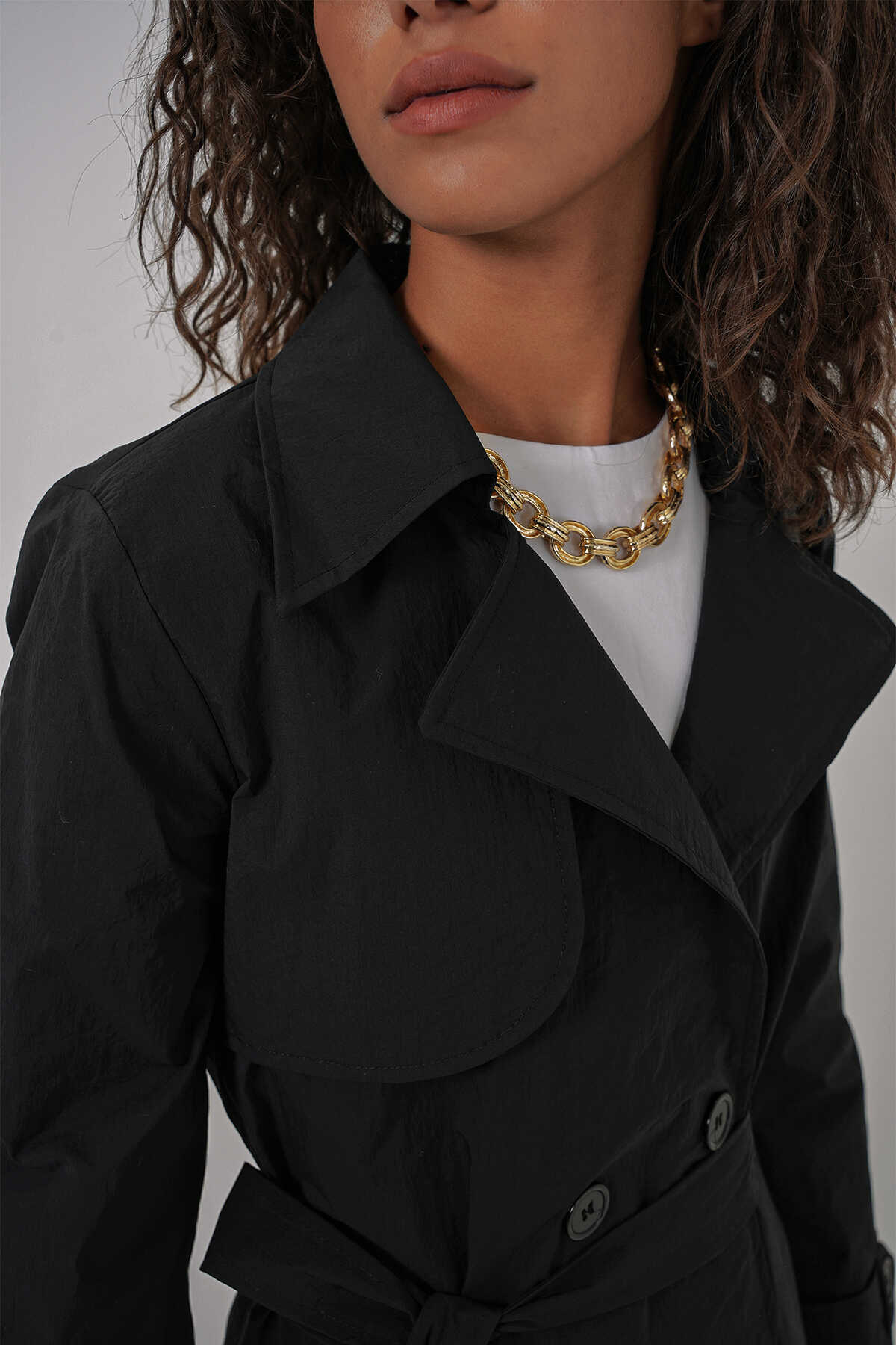 Astarli Kruvaze Yaka Trençkot