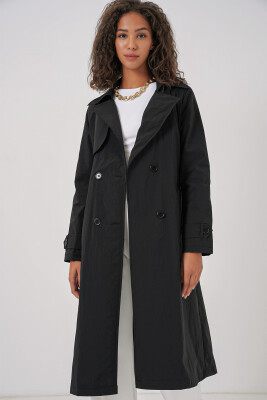 5938 Kruvaze Yaka Trençkot - Siyah