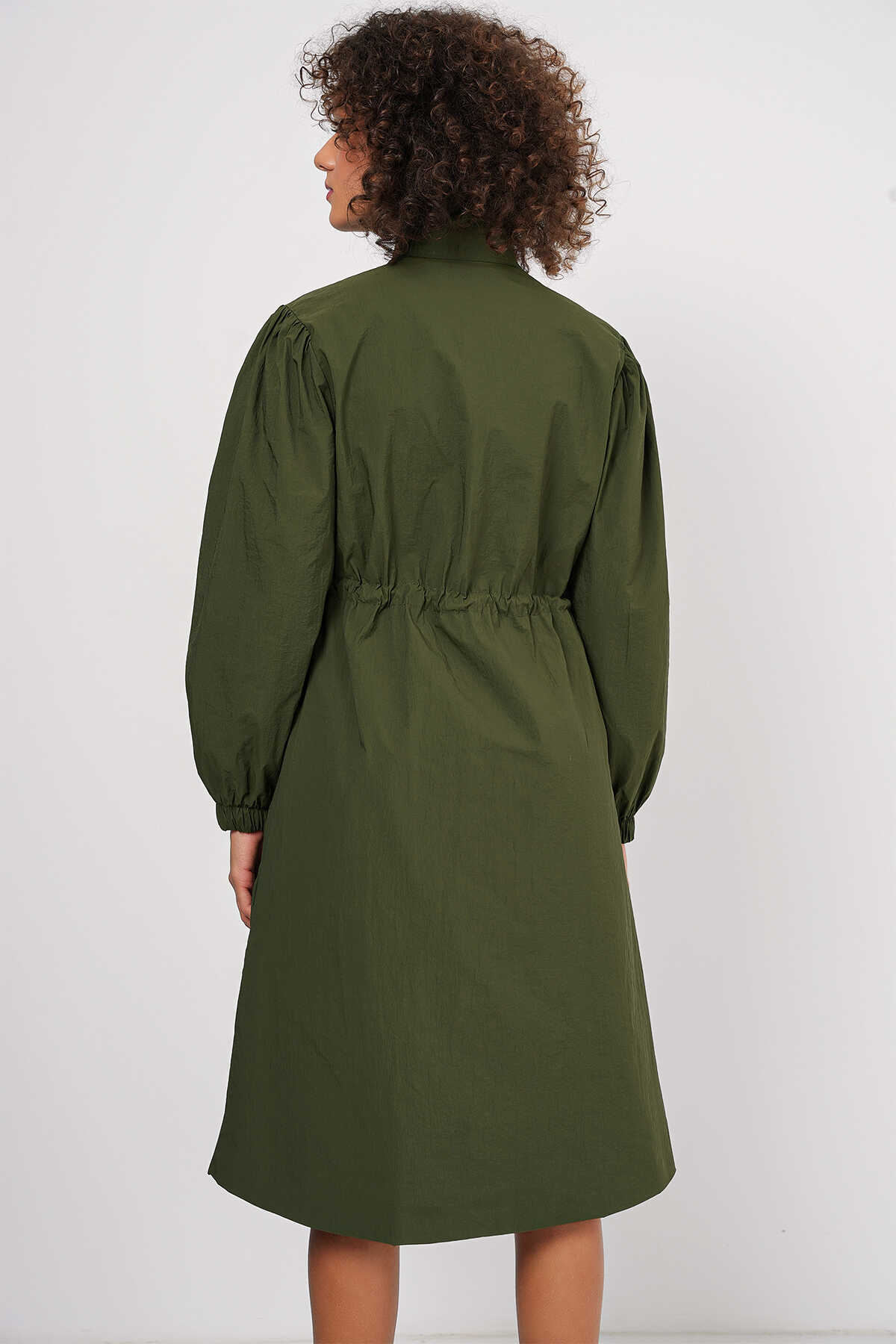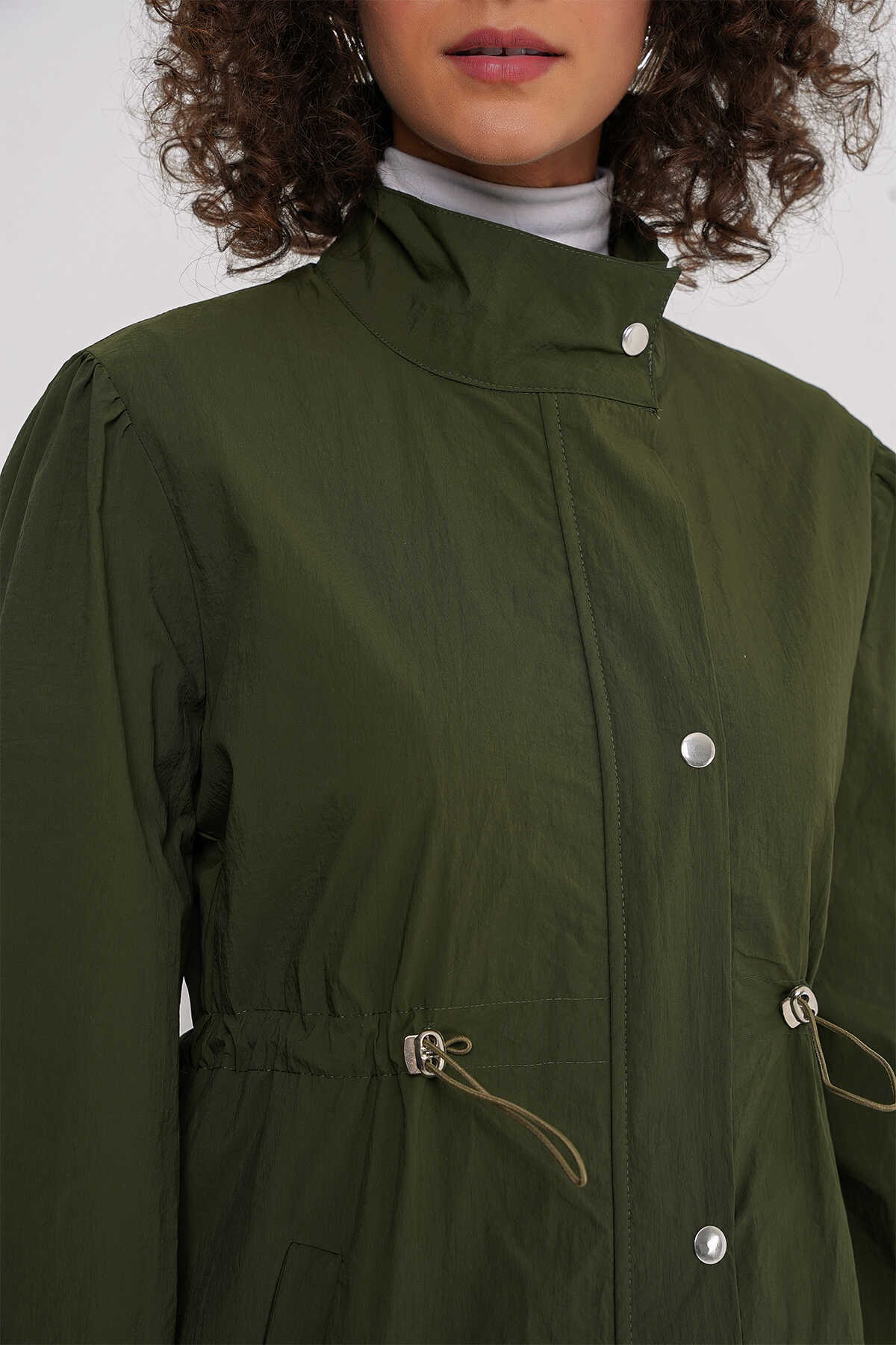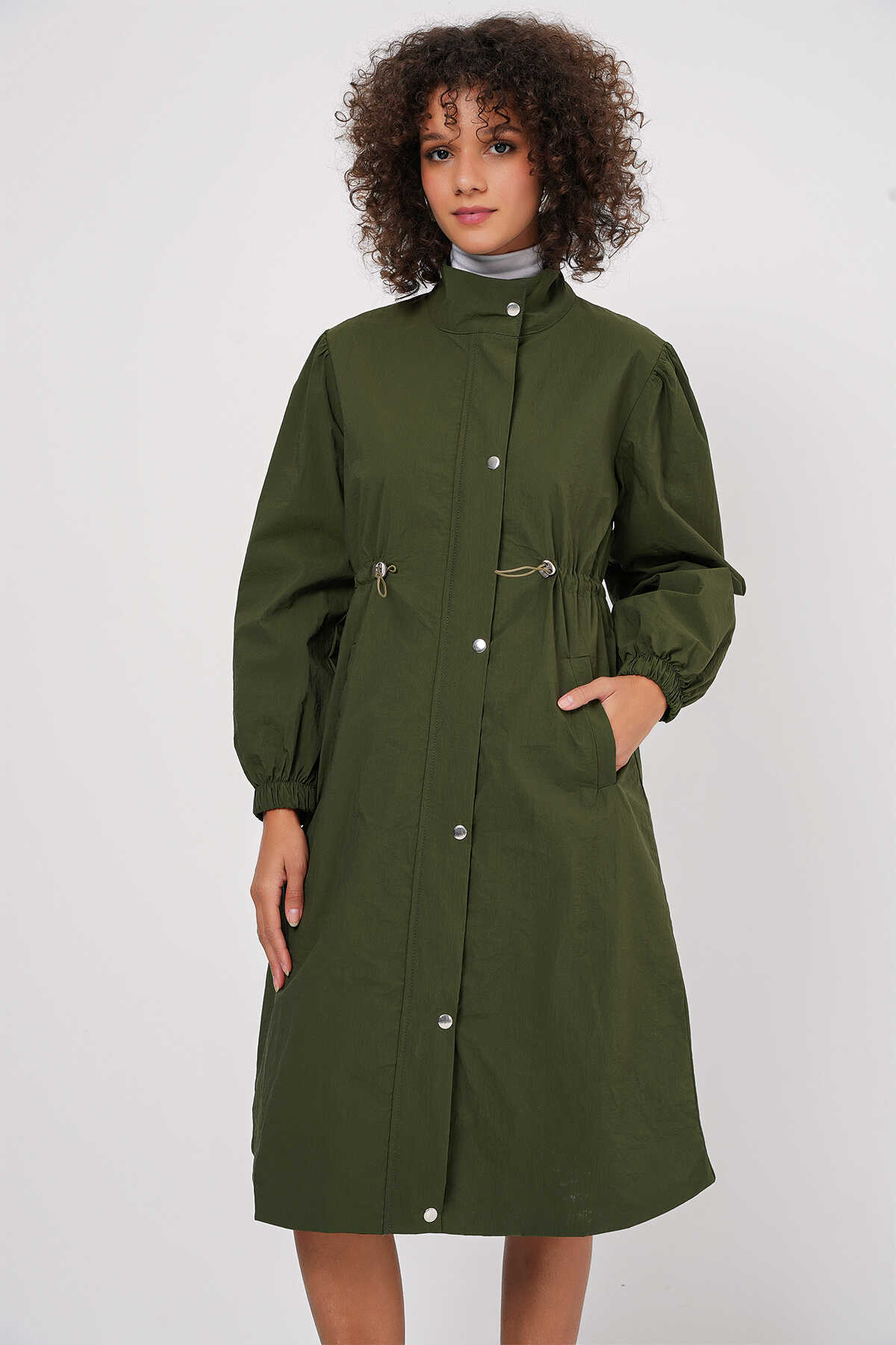 5939 Astarlı Uzun Trençkot - Haki