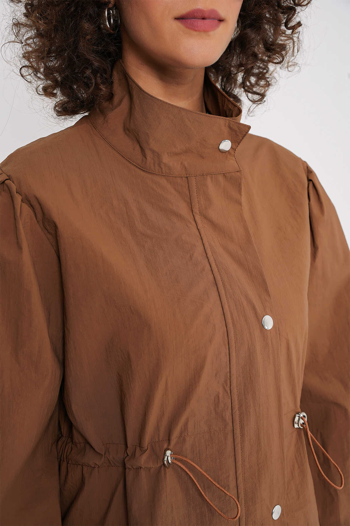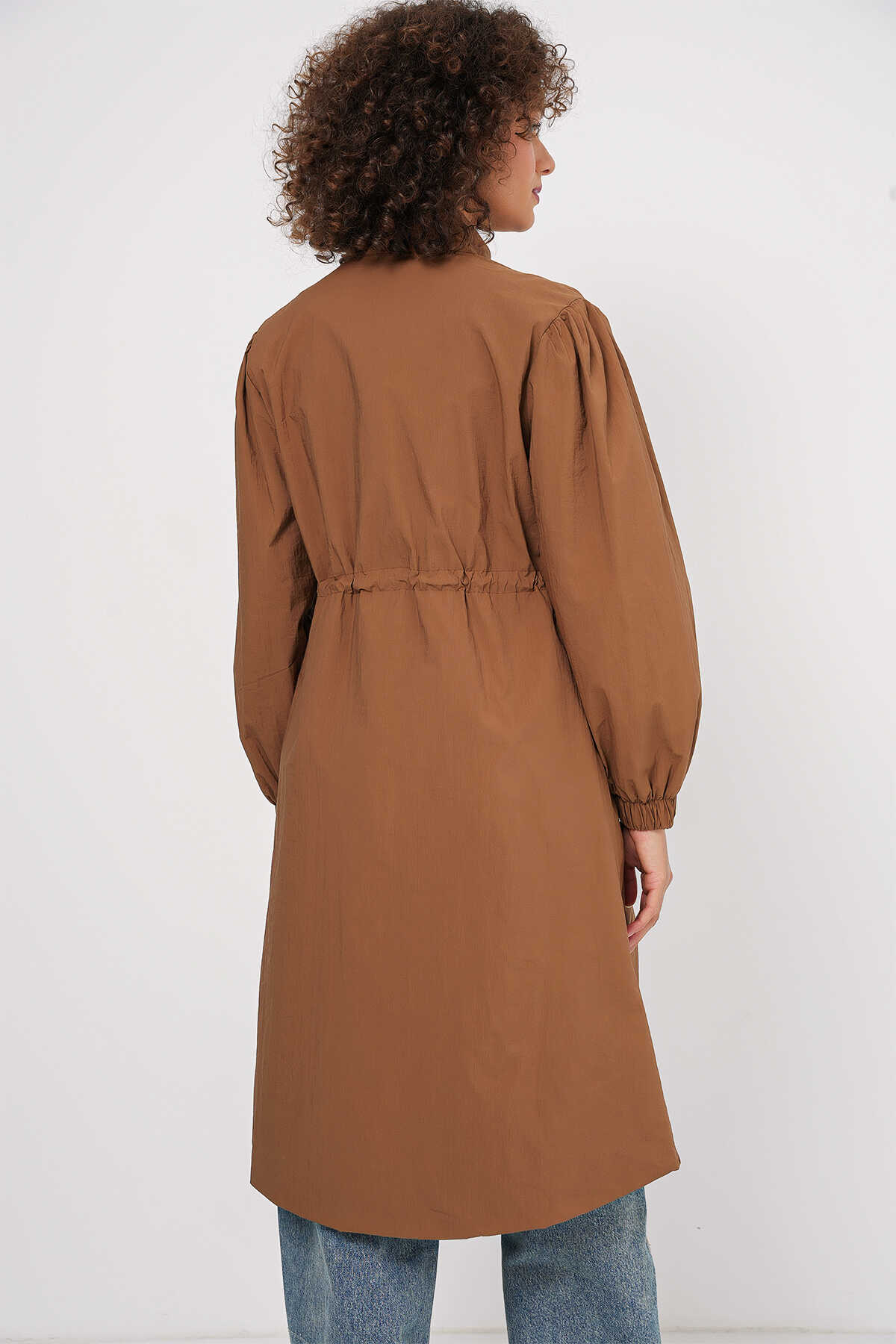 5939 Astarlı Uzun Trençkot - Taba
