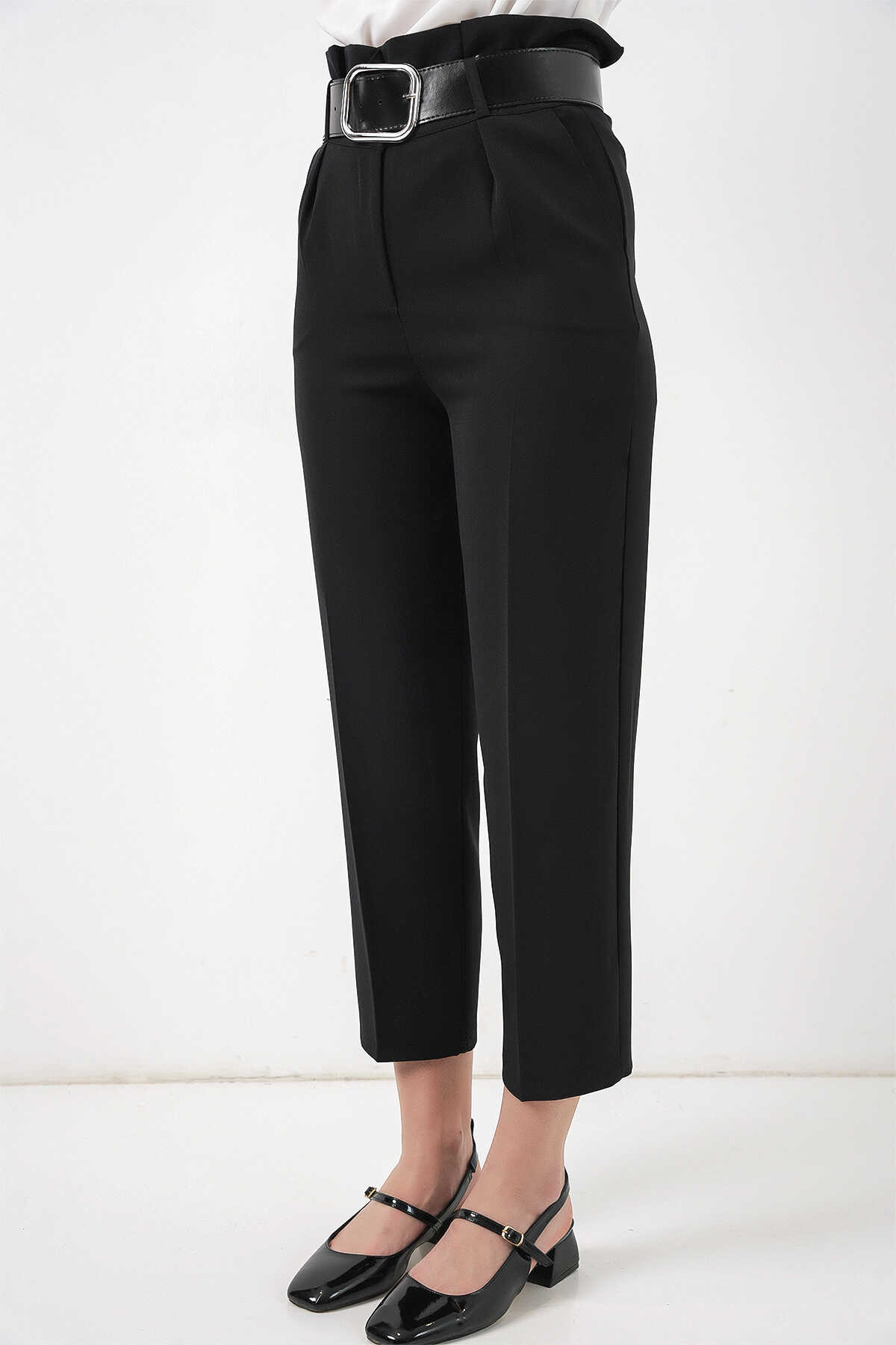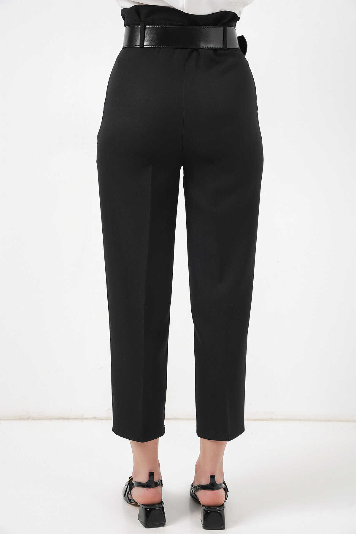 6556 Kemerli Kumaş Pantolon - Siyah