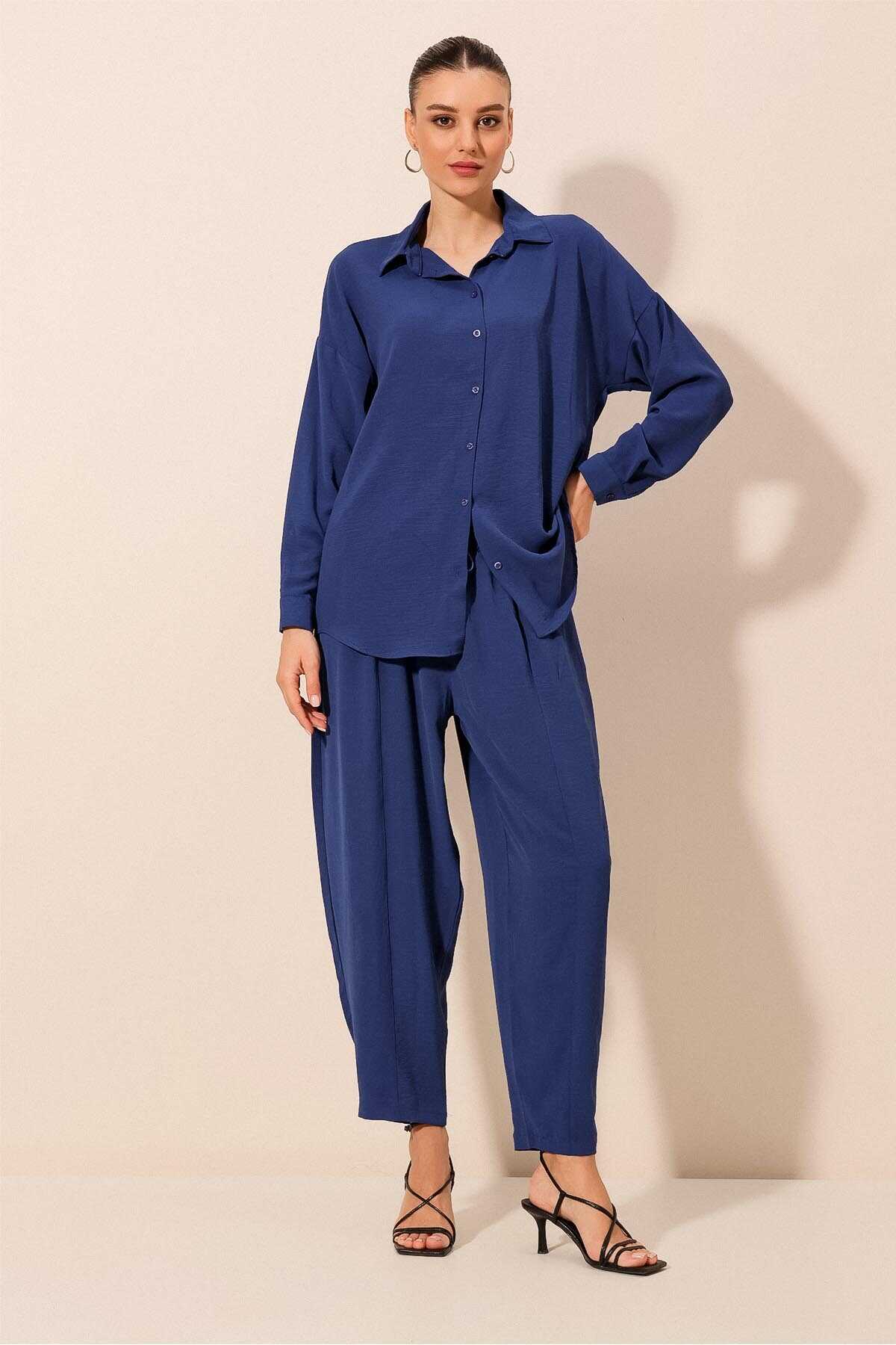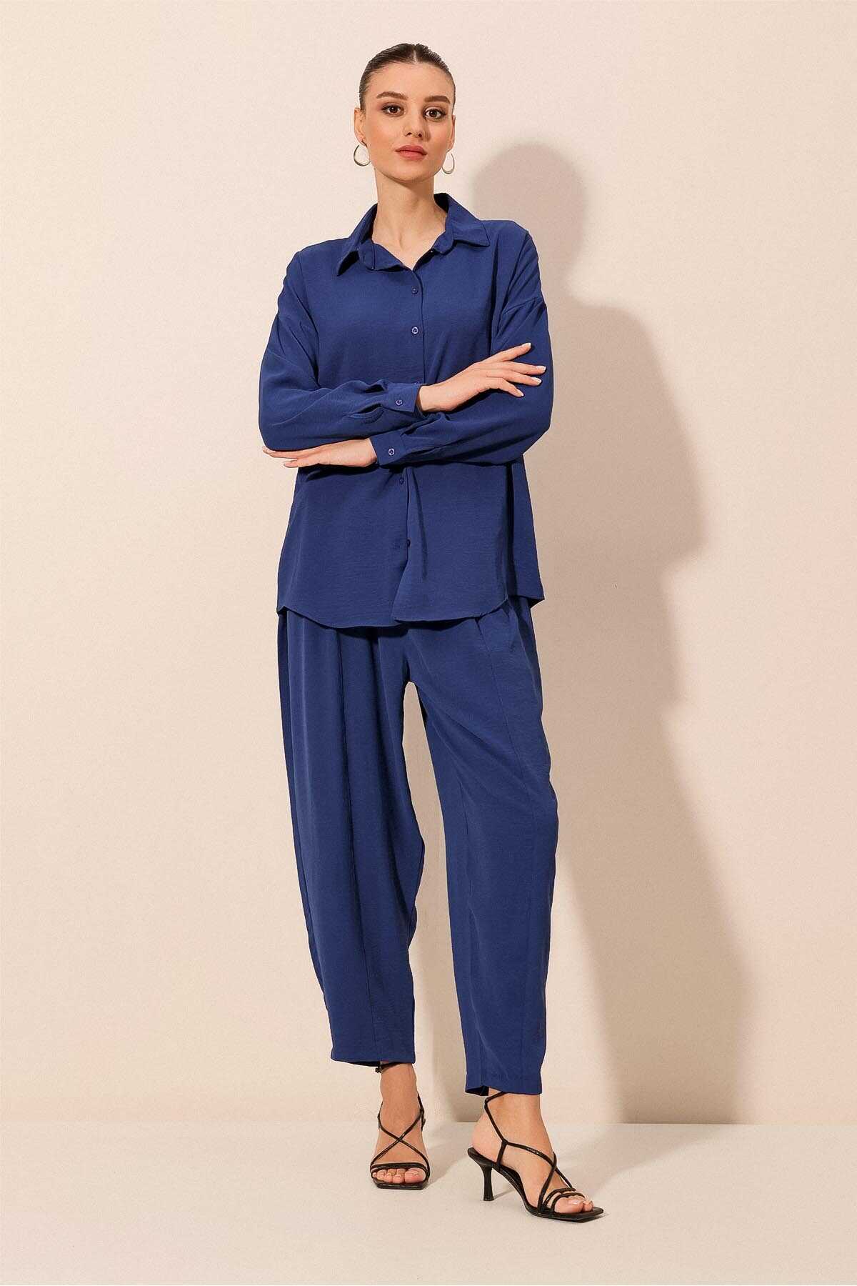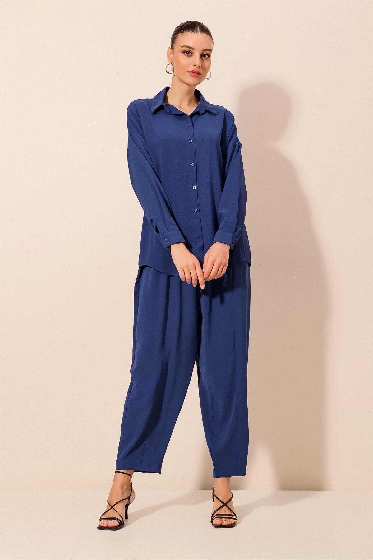 6593 Oversize İkili Takım - Saks - Kombin