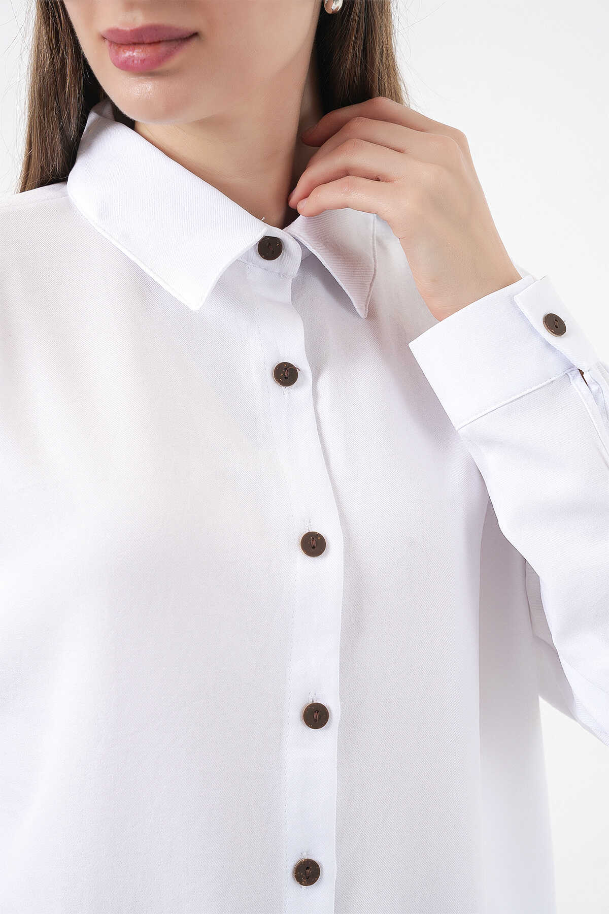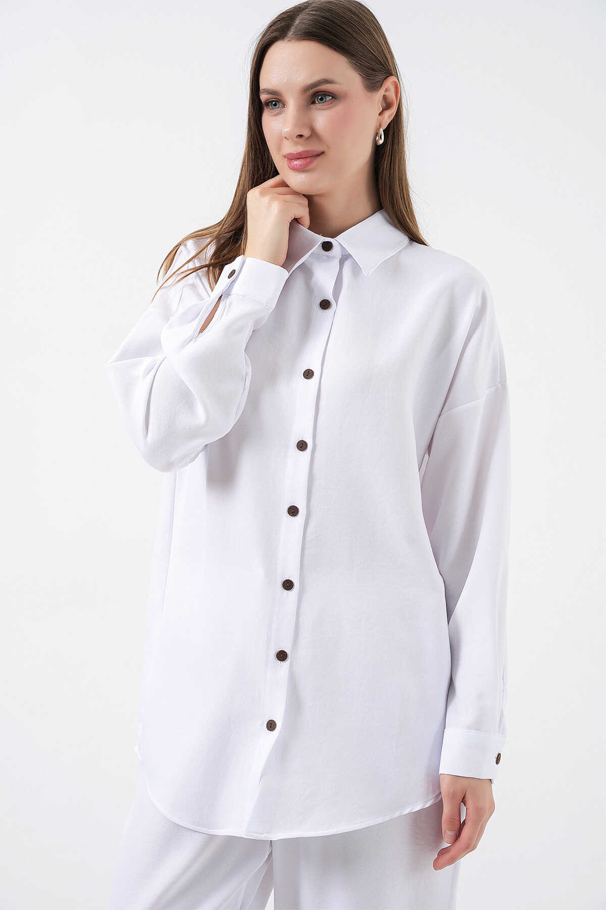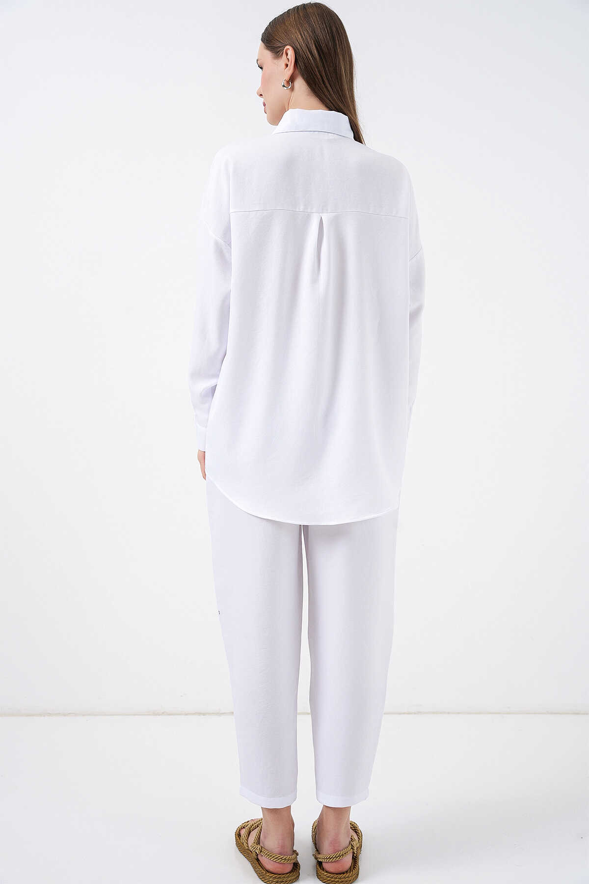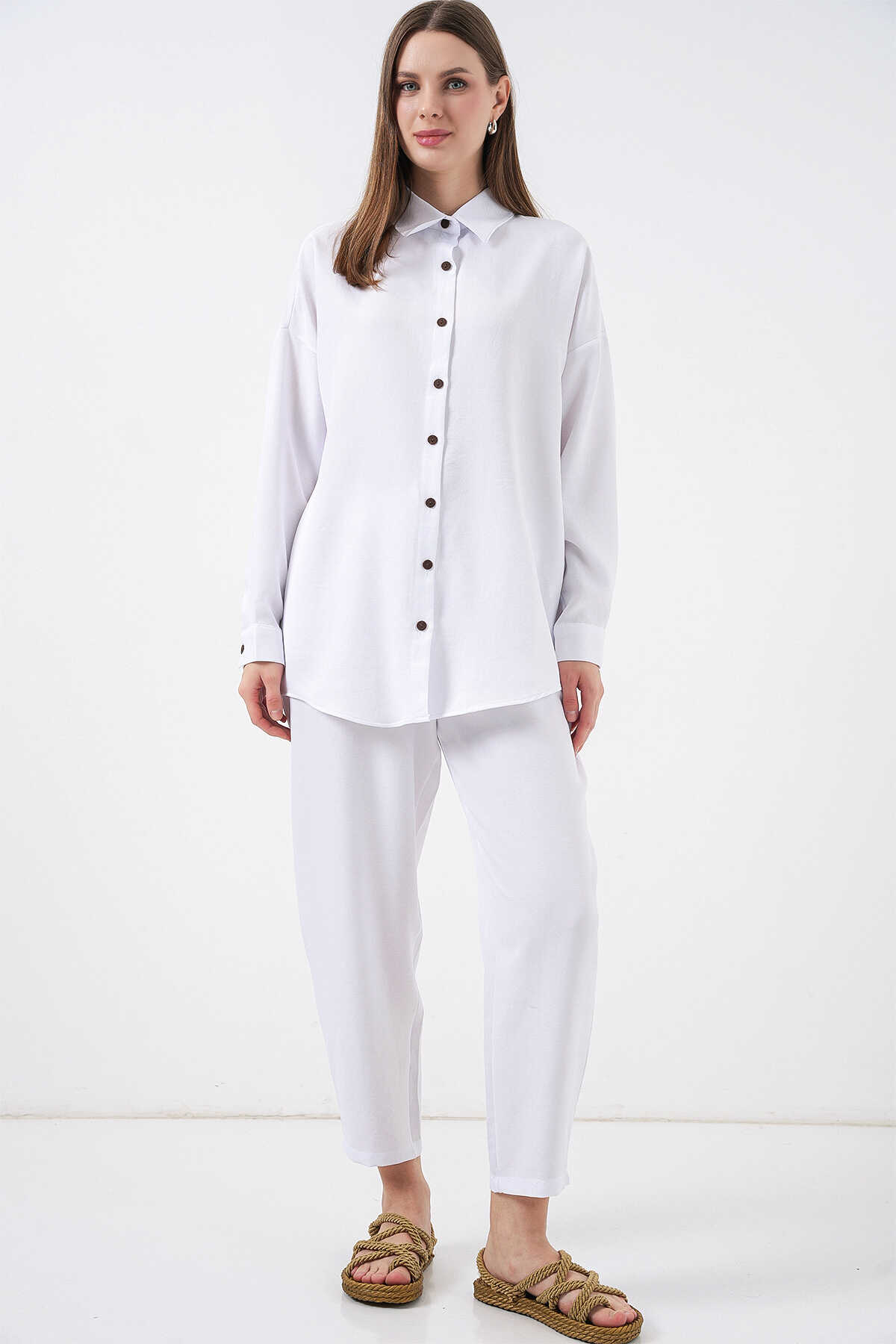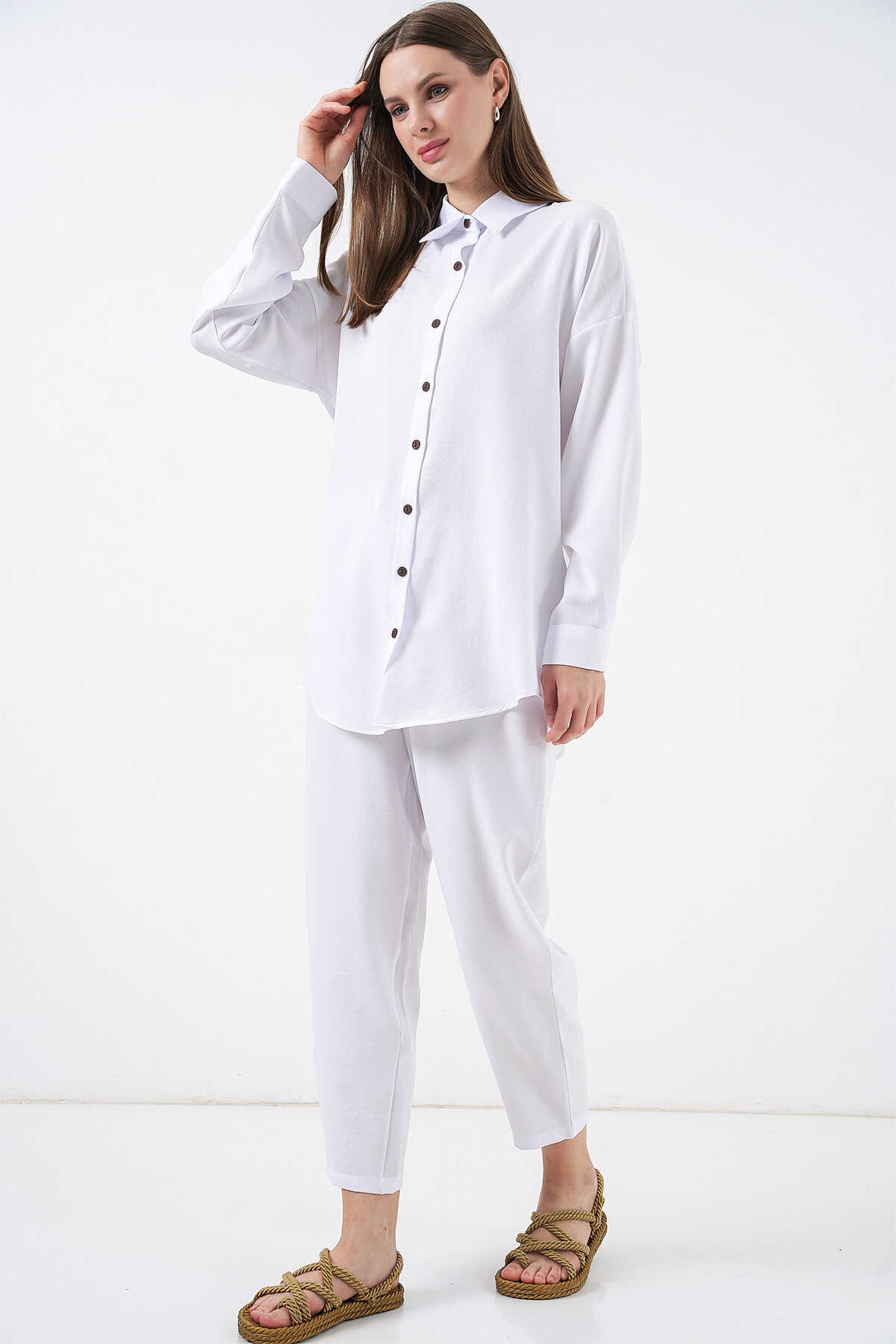 6622 Keten İkili Takım - Beyaz - Kombin