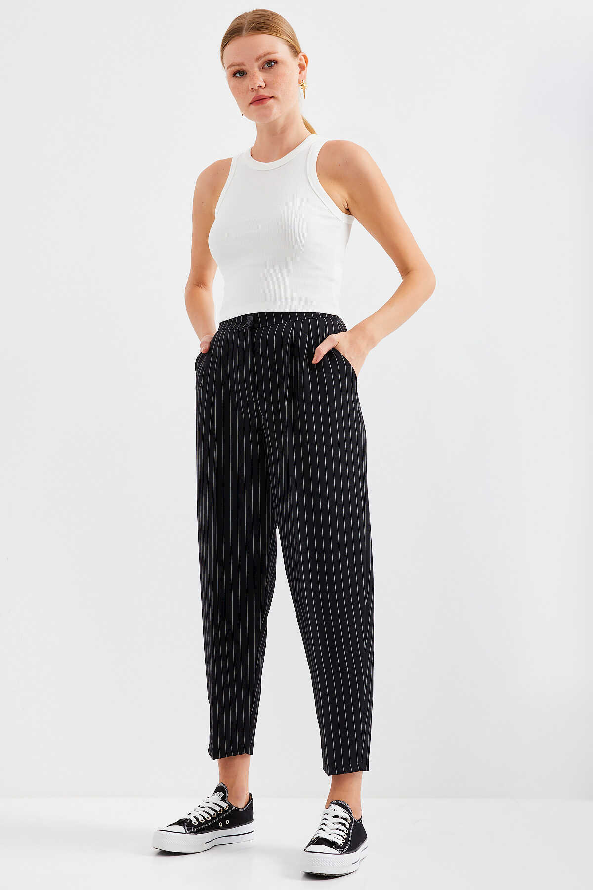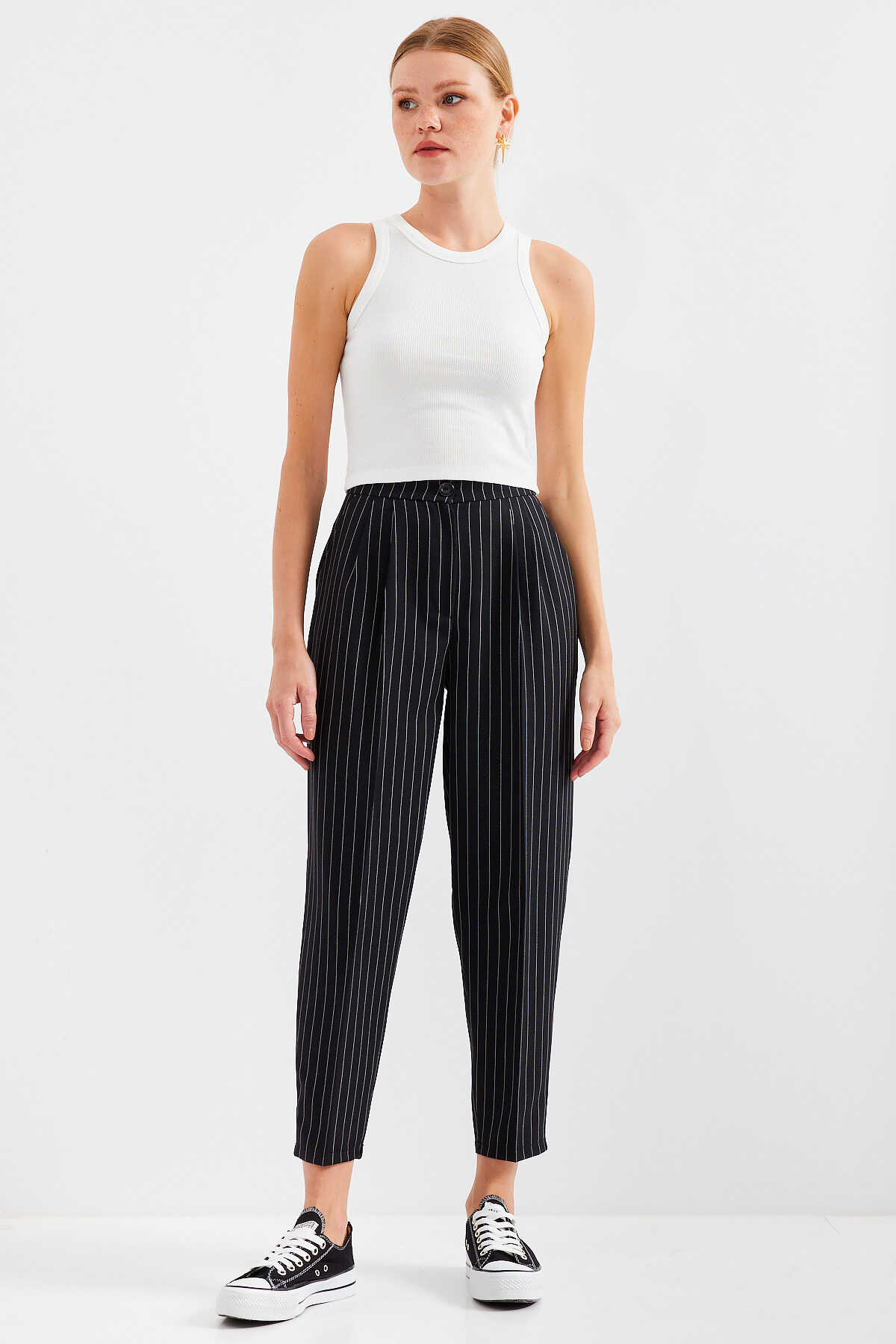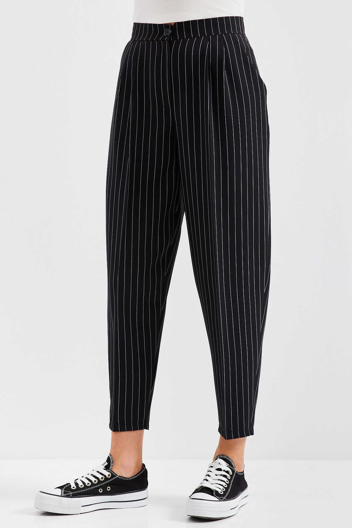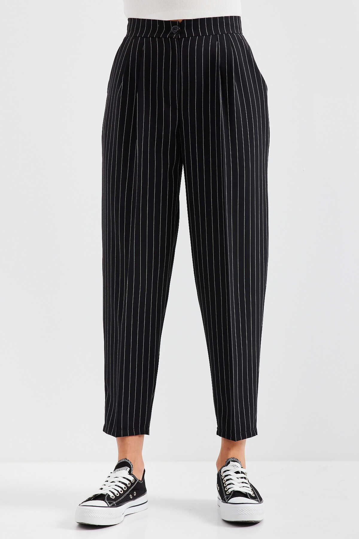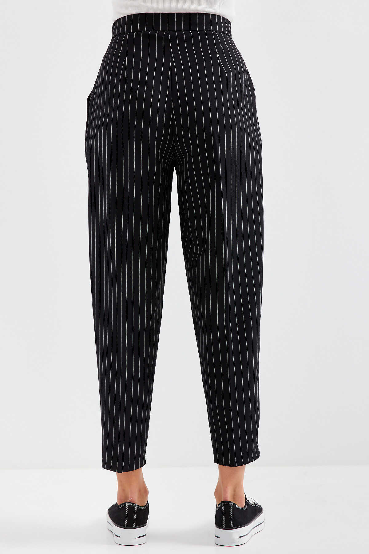 Yüksek Bel Çizgili Kumas Pantolon