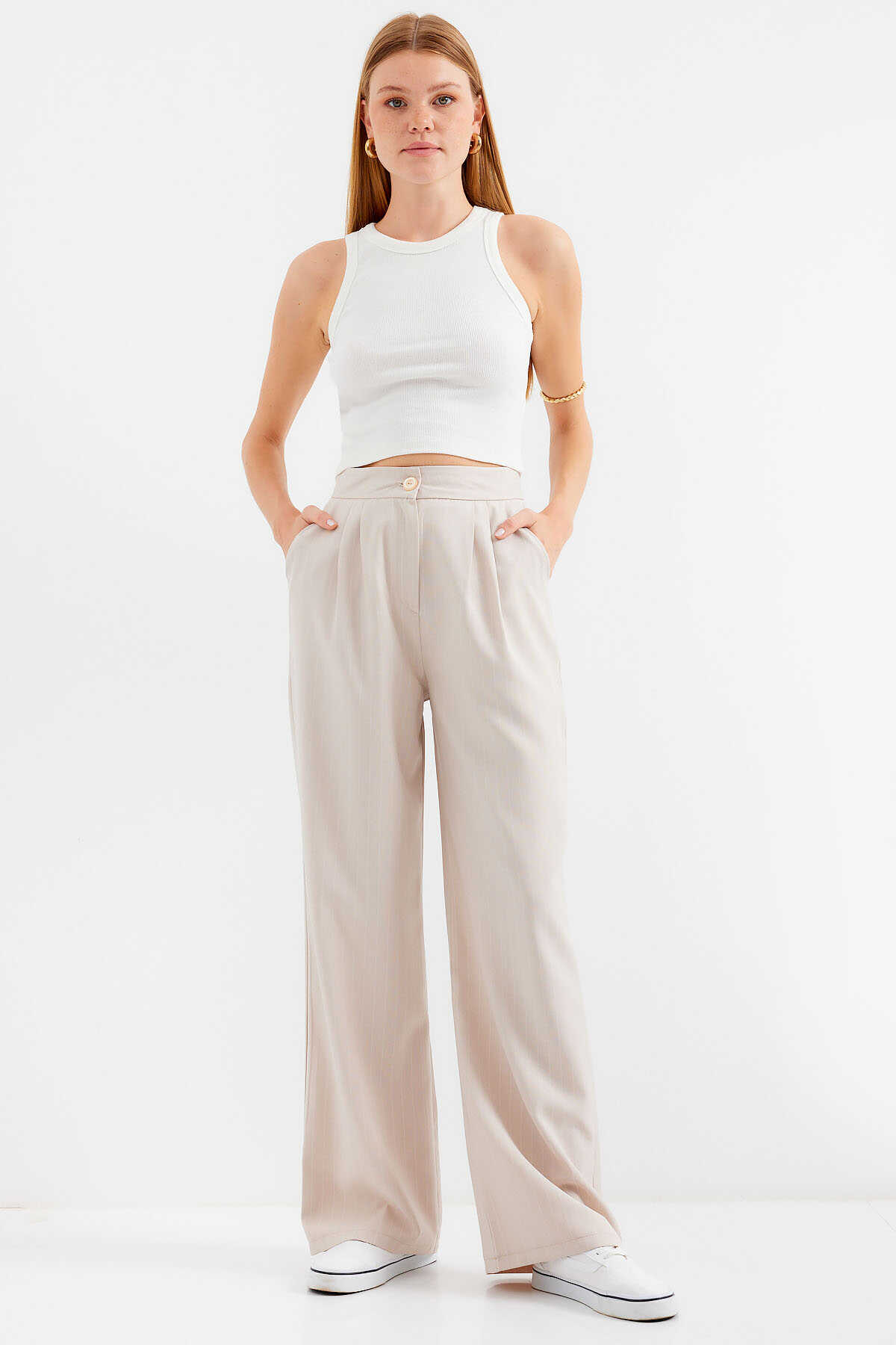 6638 Yüksek Bel Palazzo Pantolon - Bej