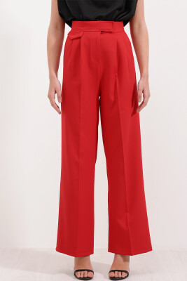 6645 Yüksek Bel Cırtlı Palazzo Pantolon - Kırmızı