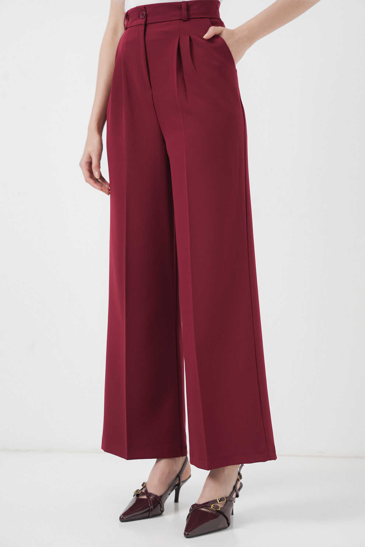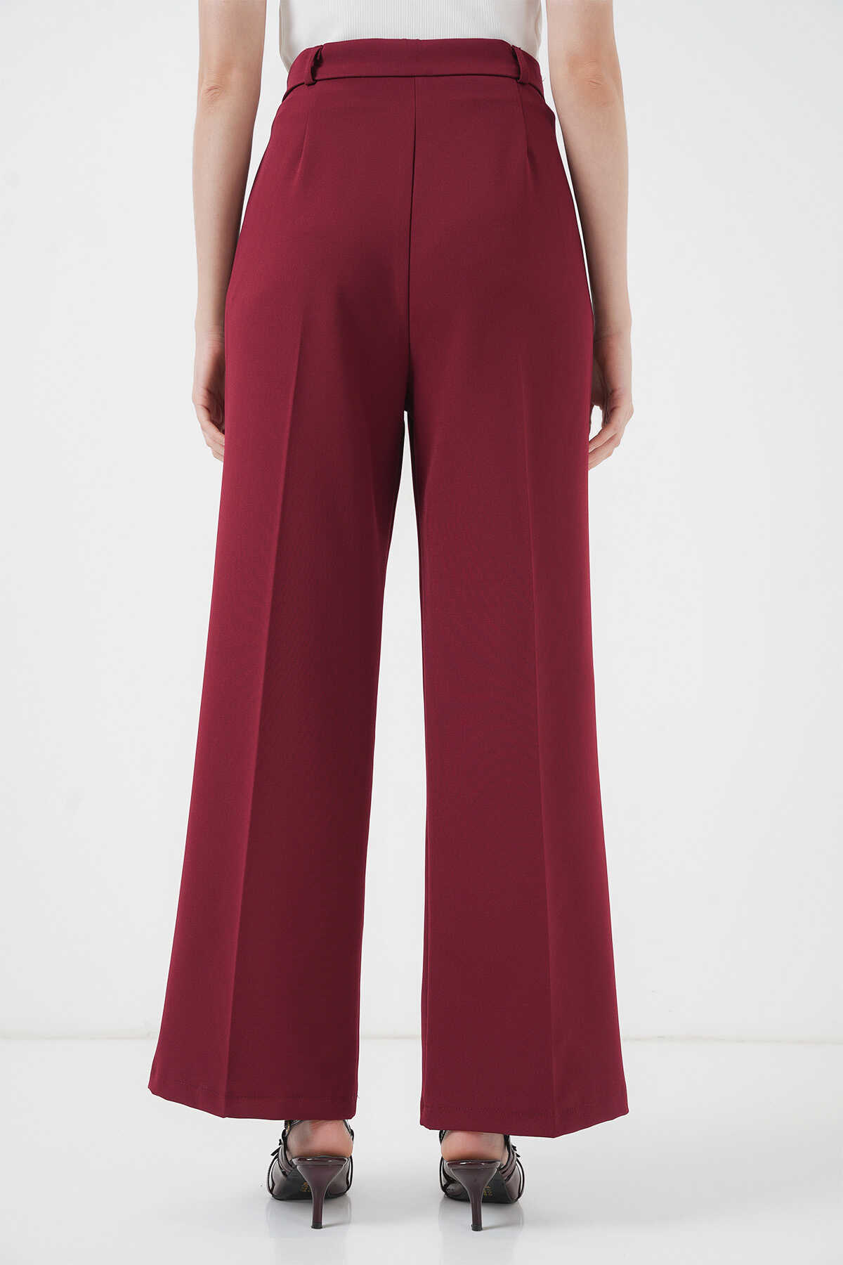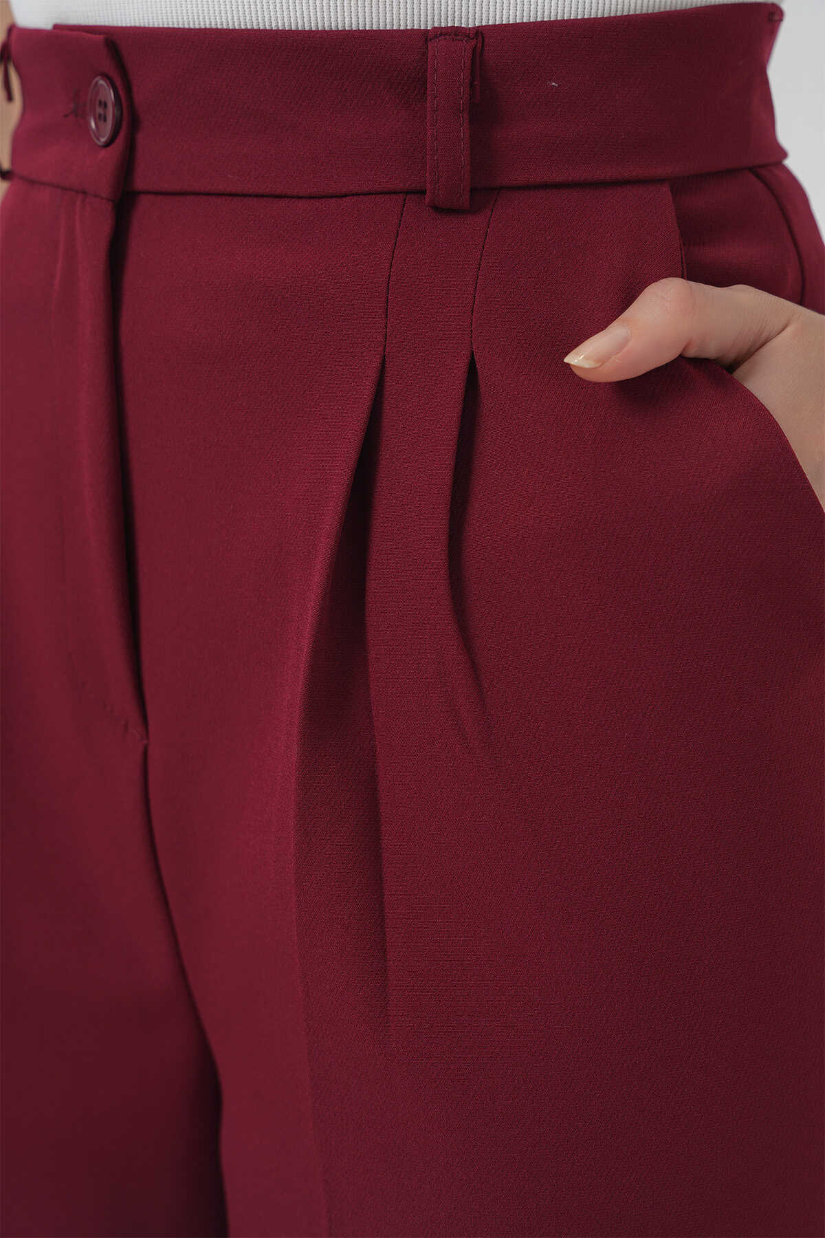 6647 Bol Paça Kumaş Pantolon - Bordo