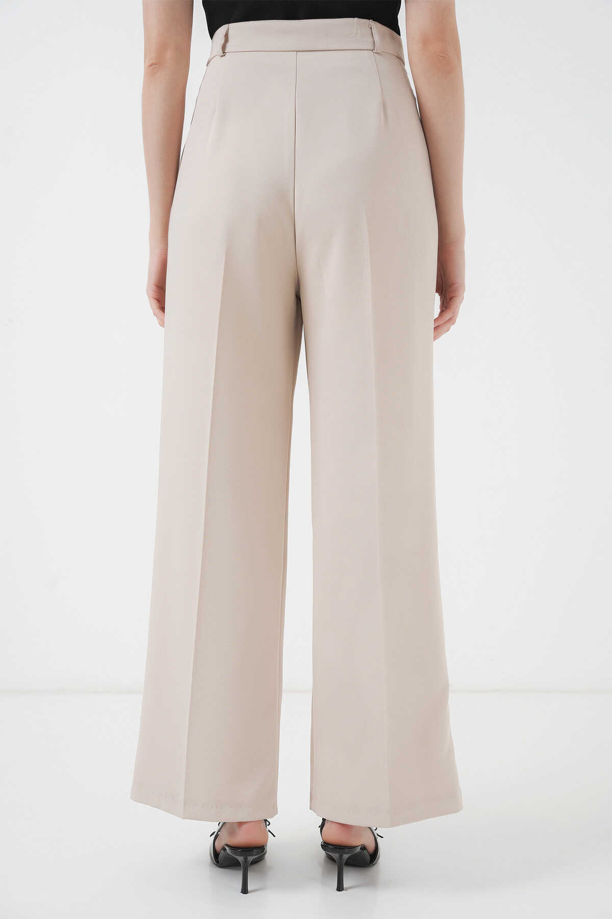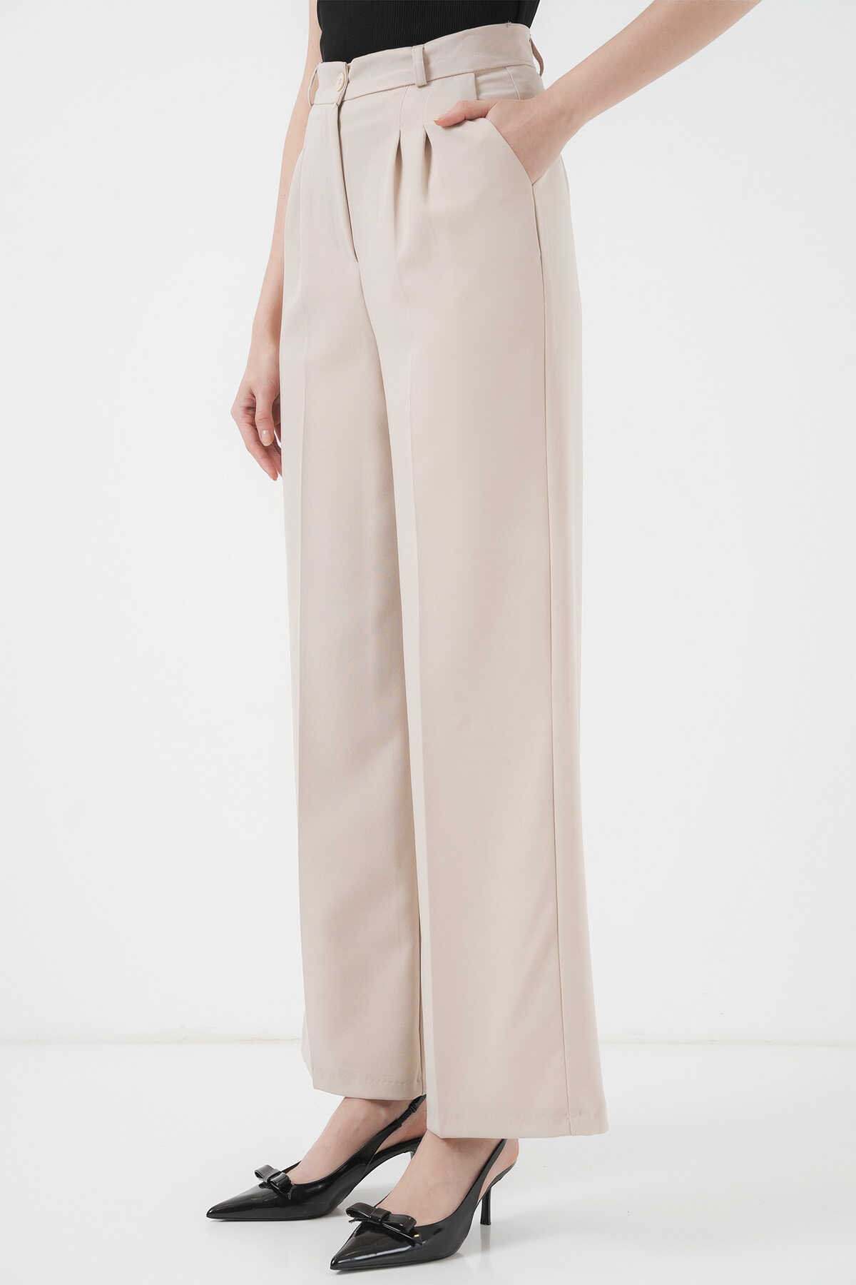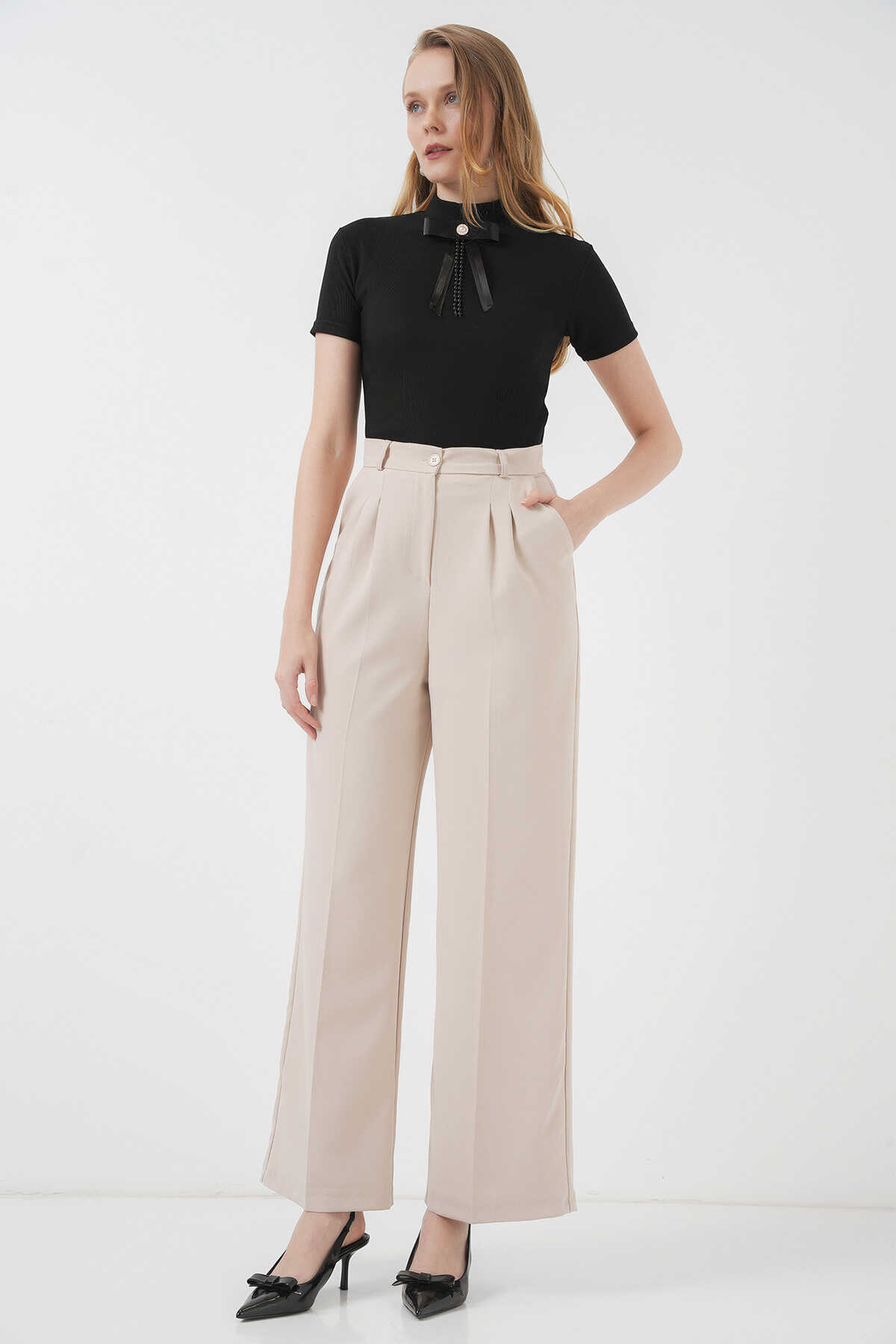 6647 Bol Paça Kumaş Pantolon - Krem - Kombin