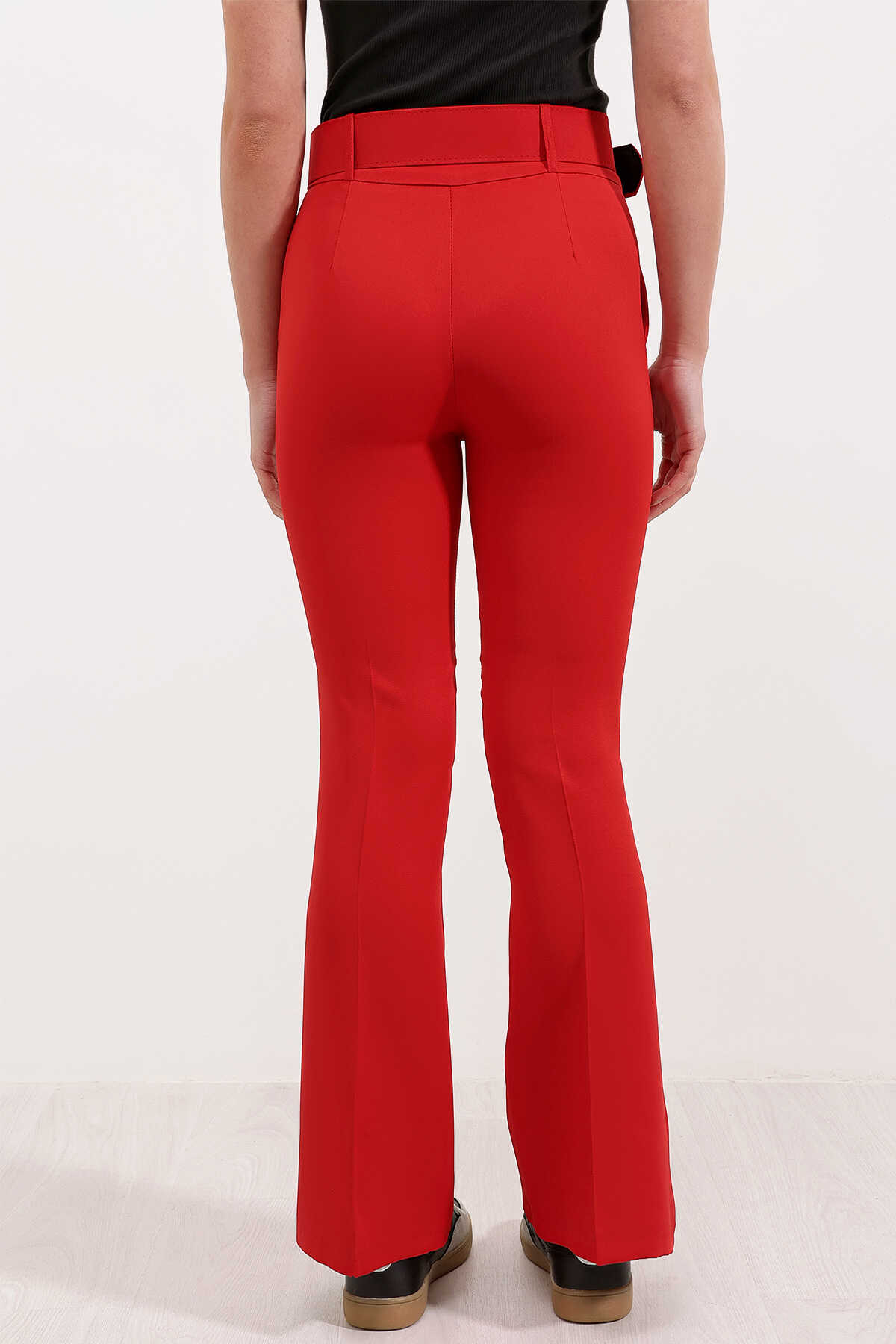 6649 İspanyol Paça Kemerli Pantolon - Kırmızı