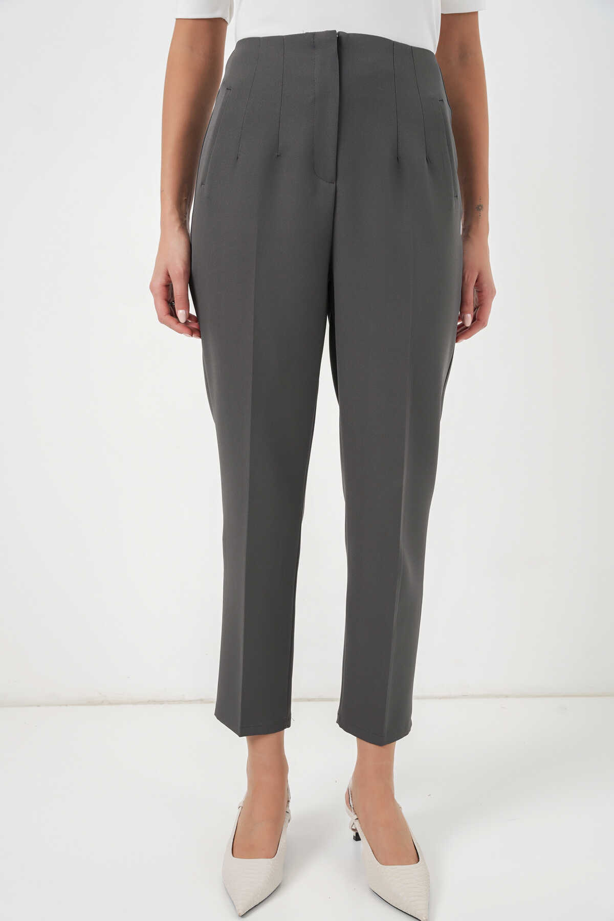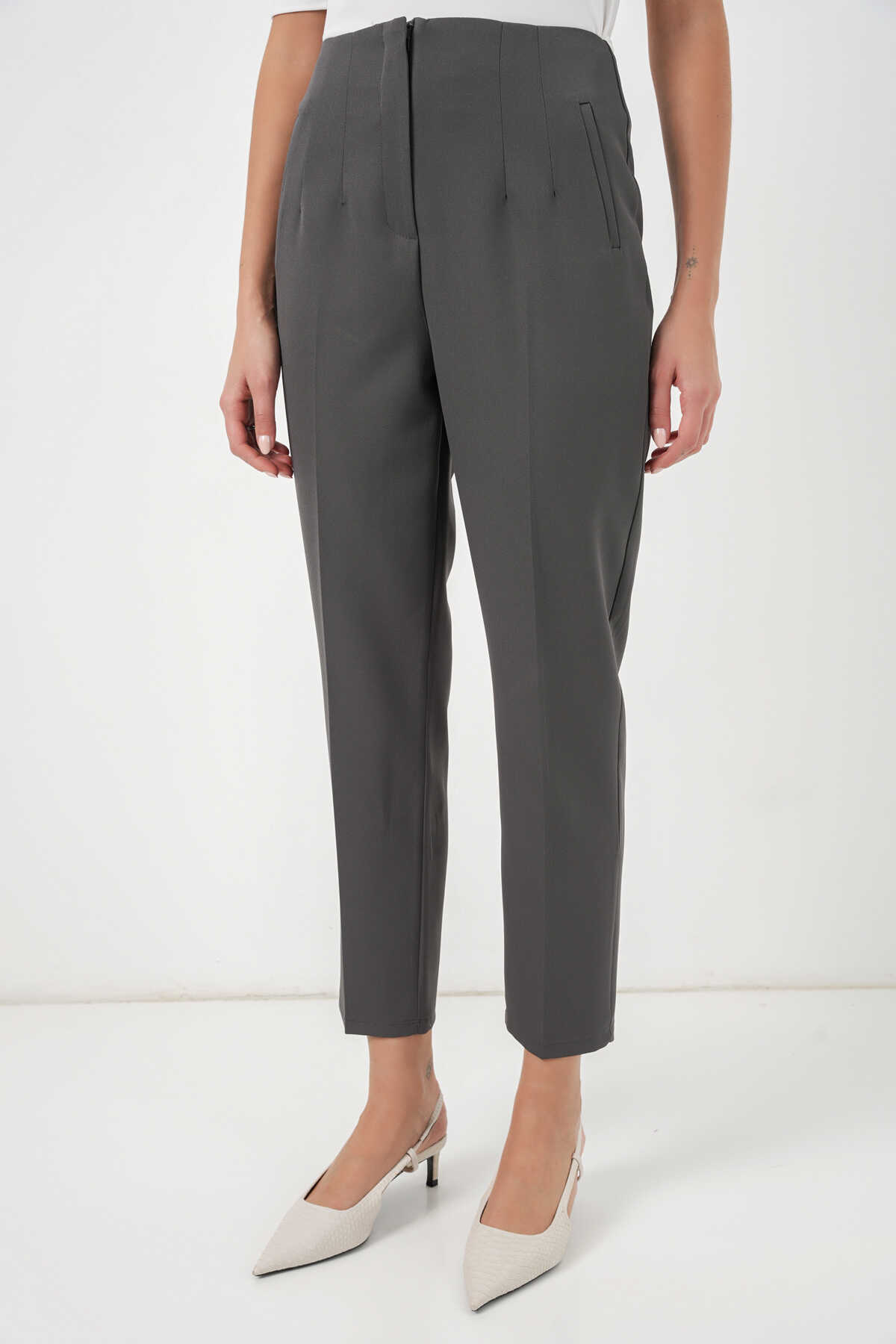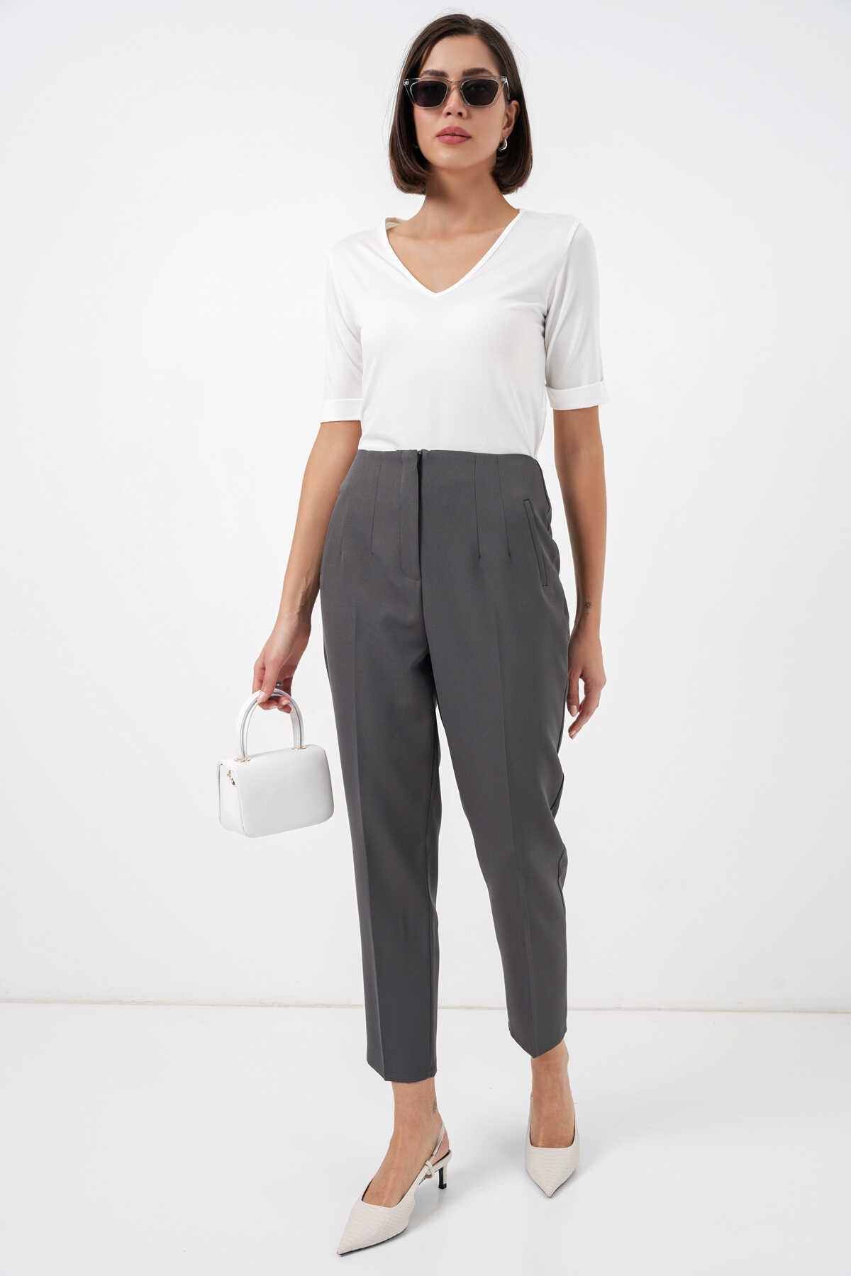6650 Yüksek Bel Kumaş Pantolon - Antrasit - Kombin