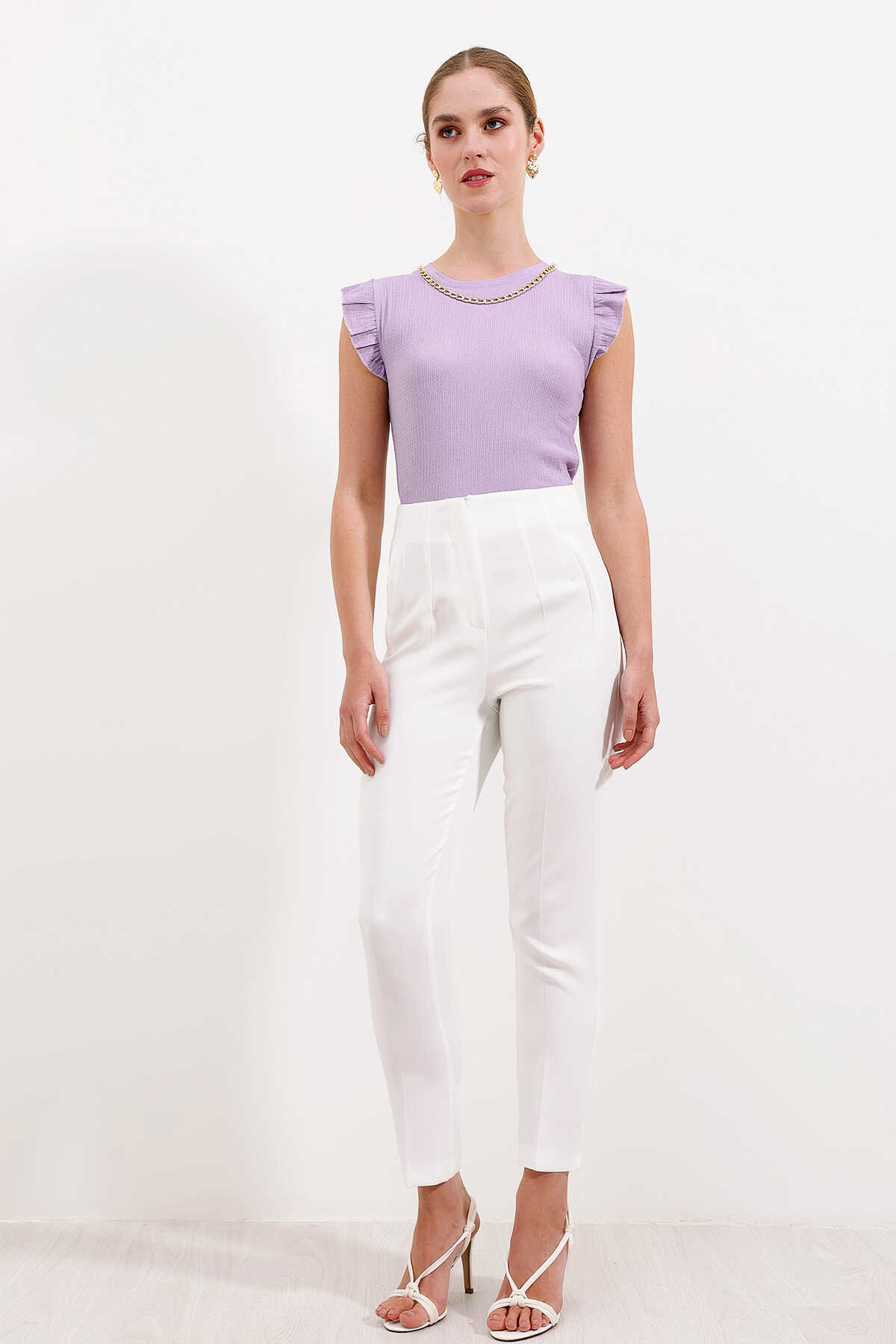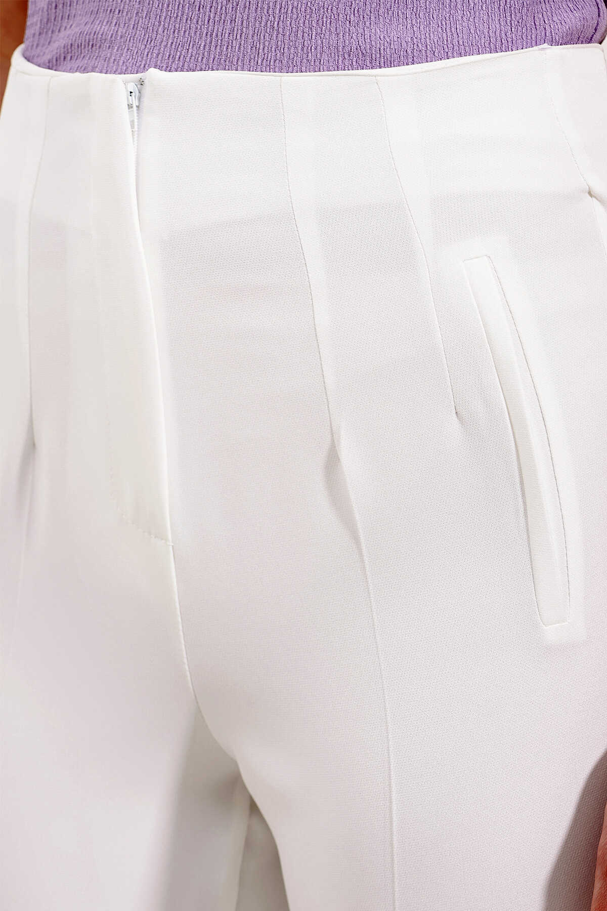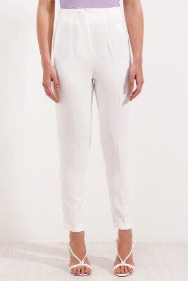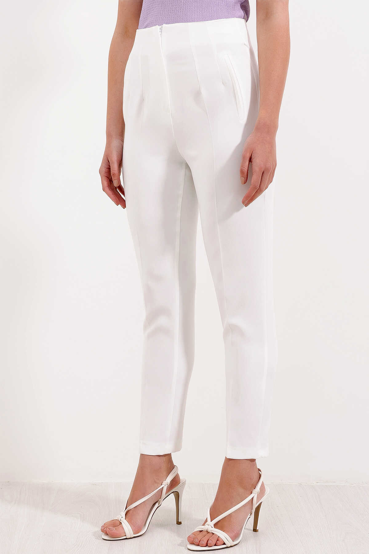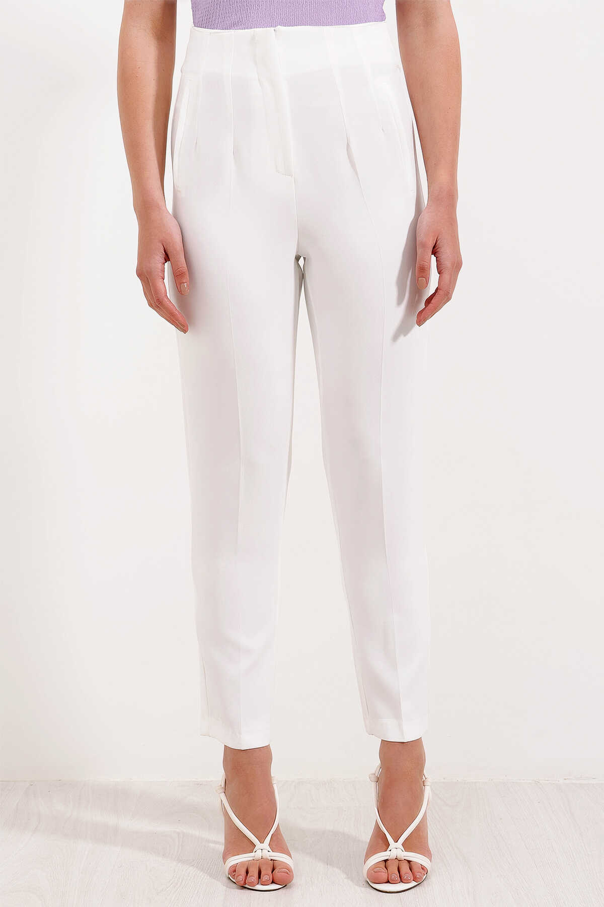 Kadın Beyaz Yüksek Bel Kumaş Pantolon 6650 - Kombin