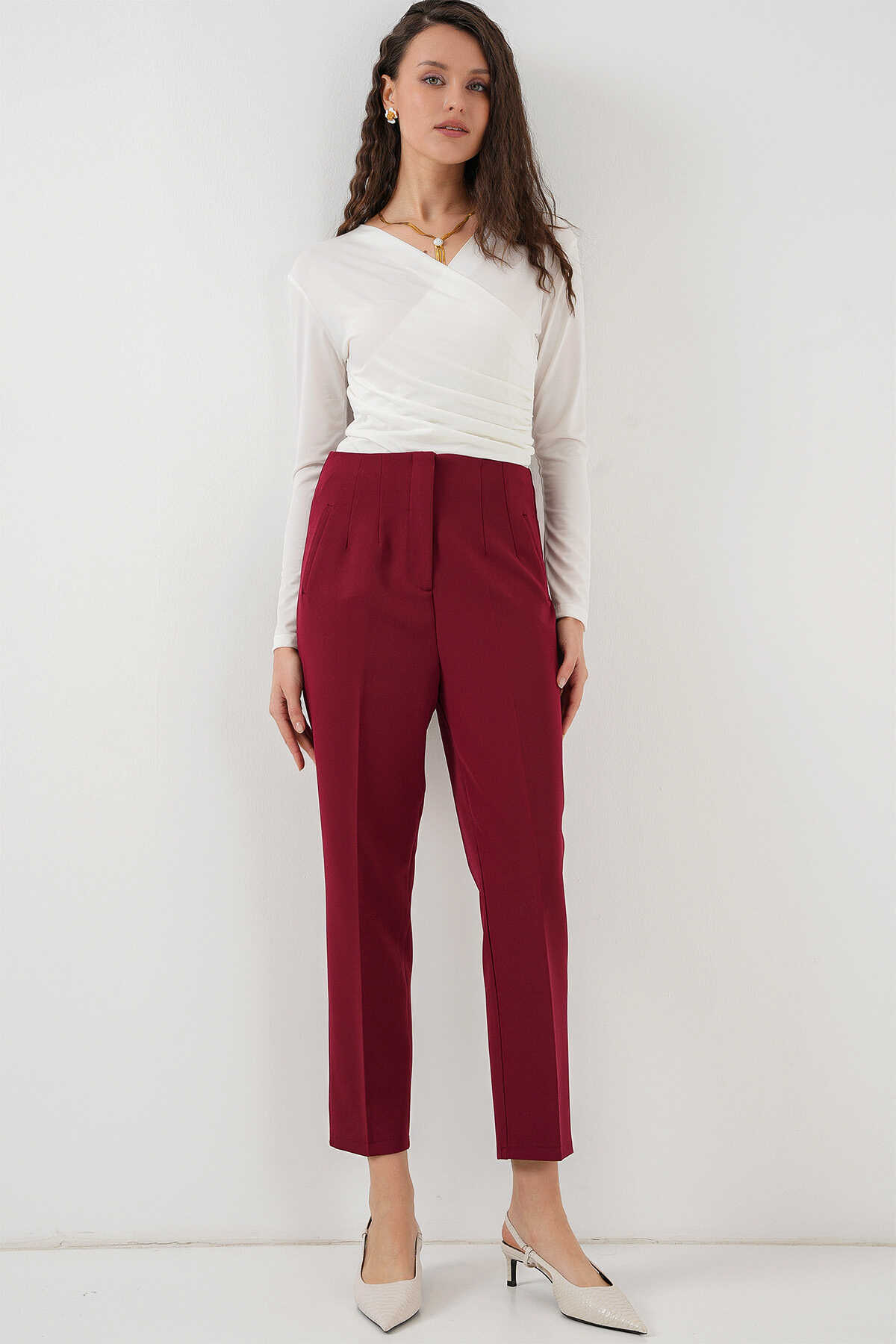 6650 Yüksek Bel Kumaş Pantolon - Bordo - Kombin
