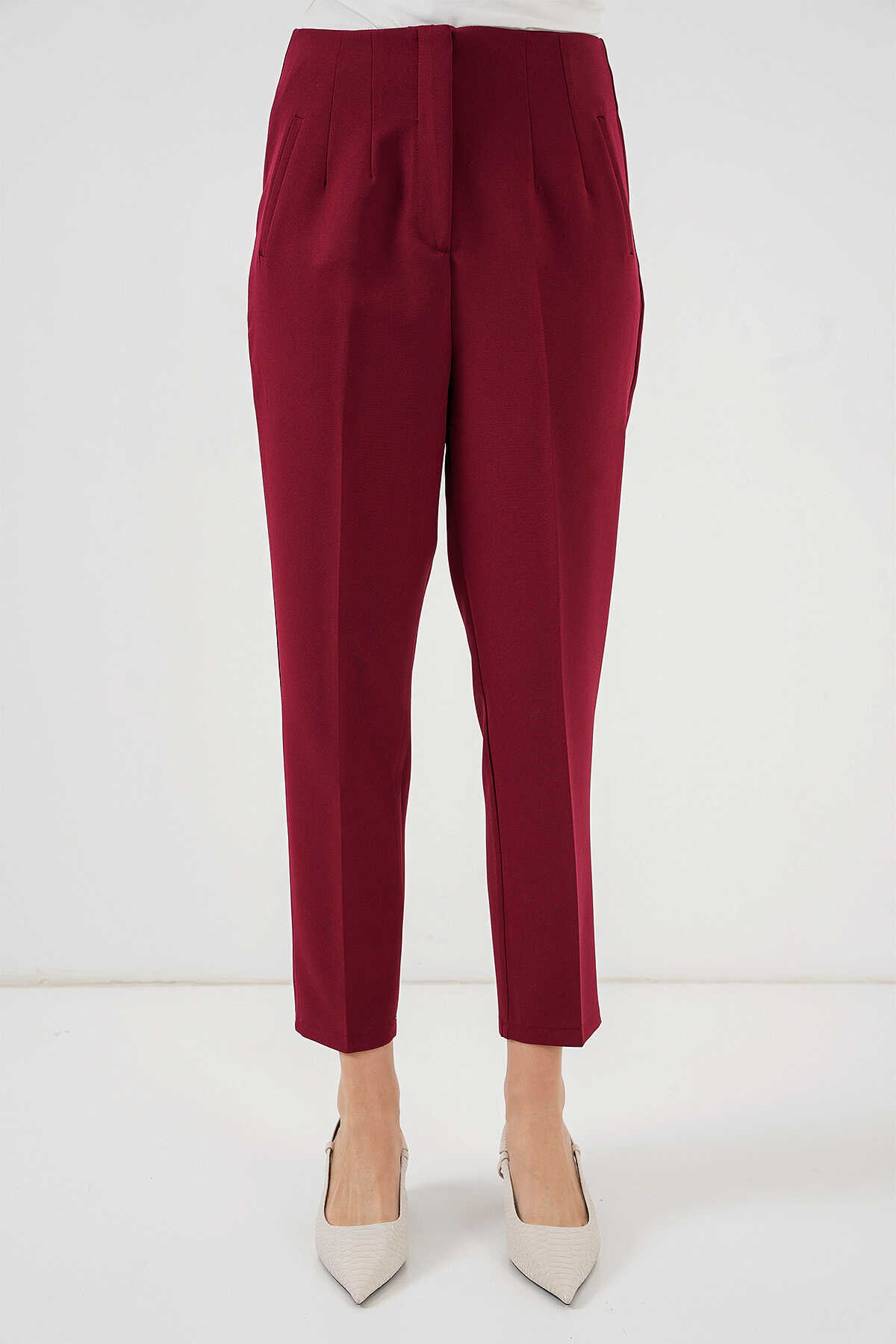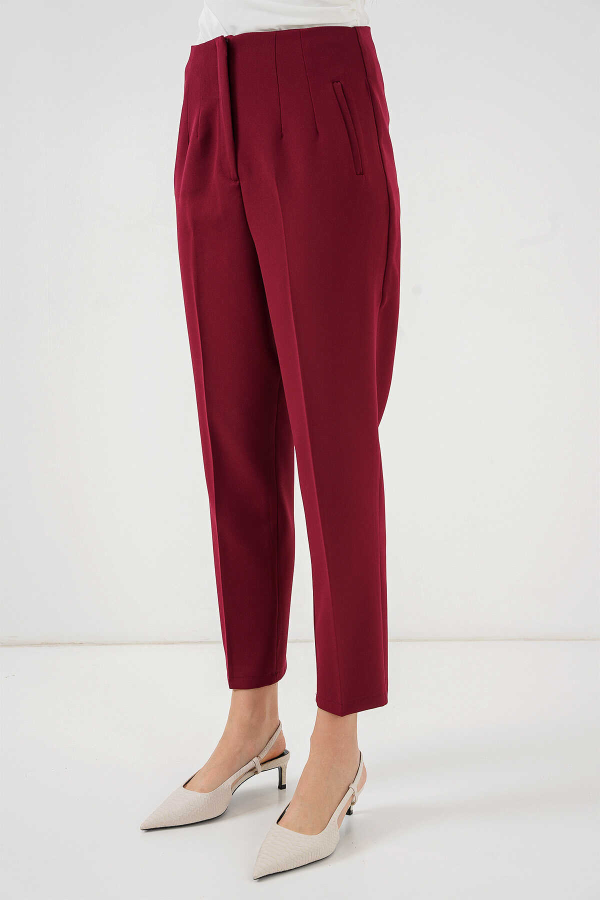 6650 Yüksek Bel Kumaş Pantolon - Bordo