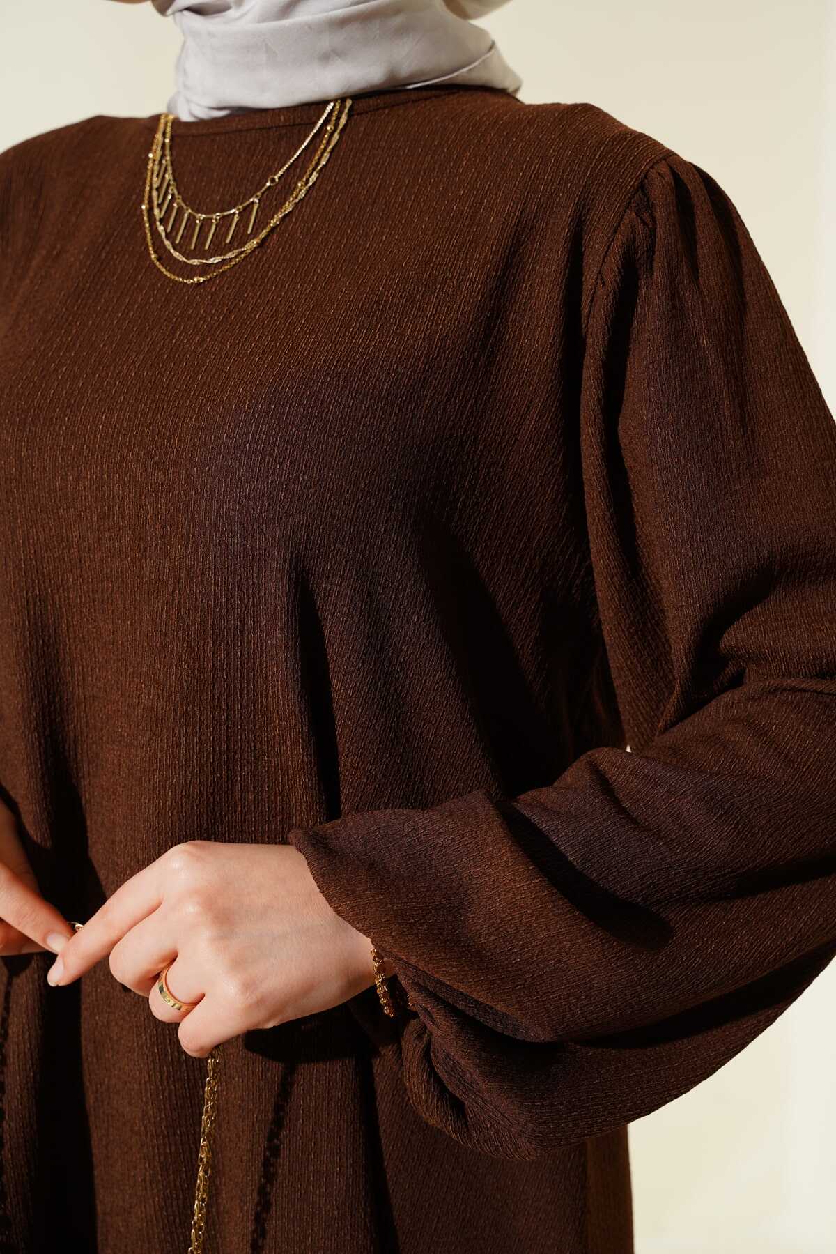 Kadın Kahverengi Tunik Pantolon Alt Üst Takım 6663