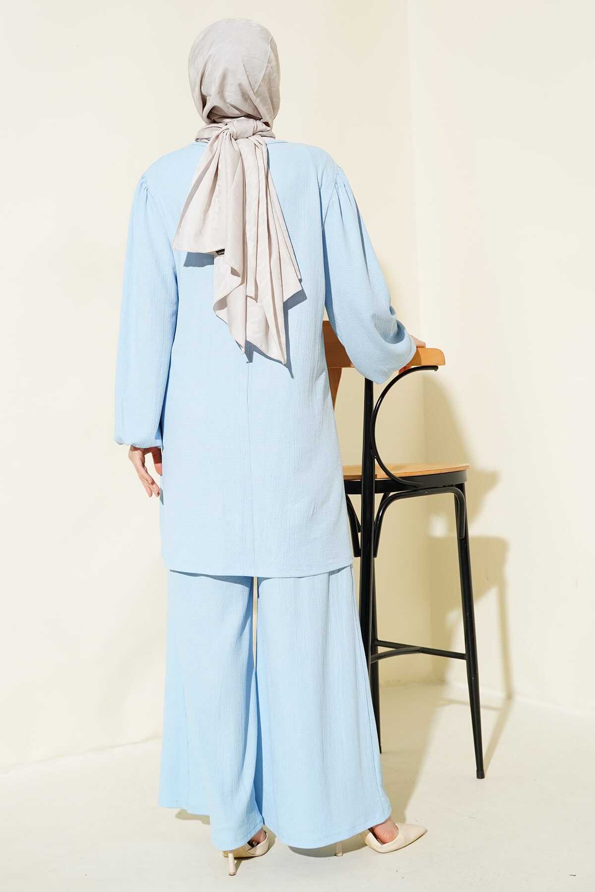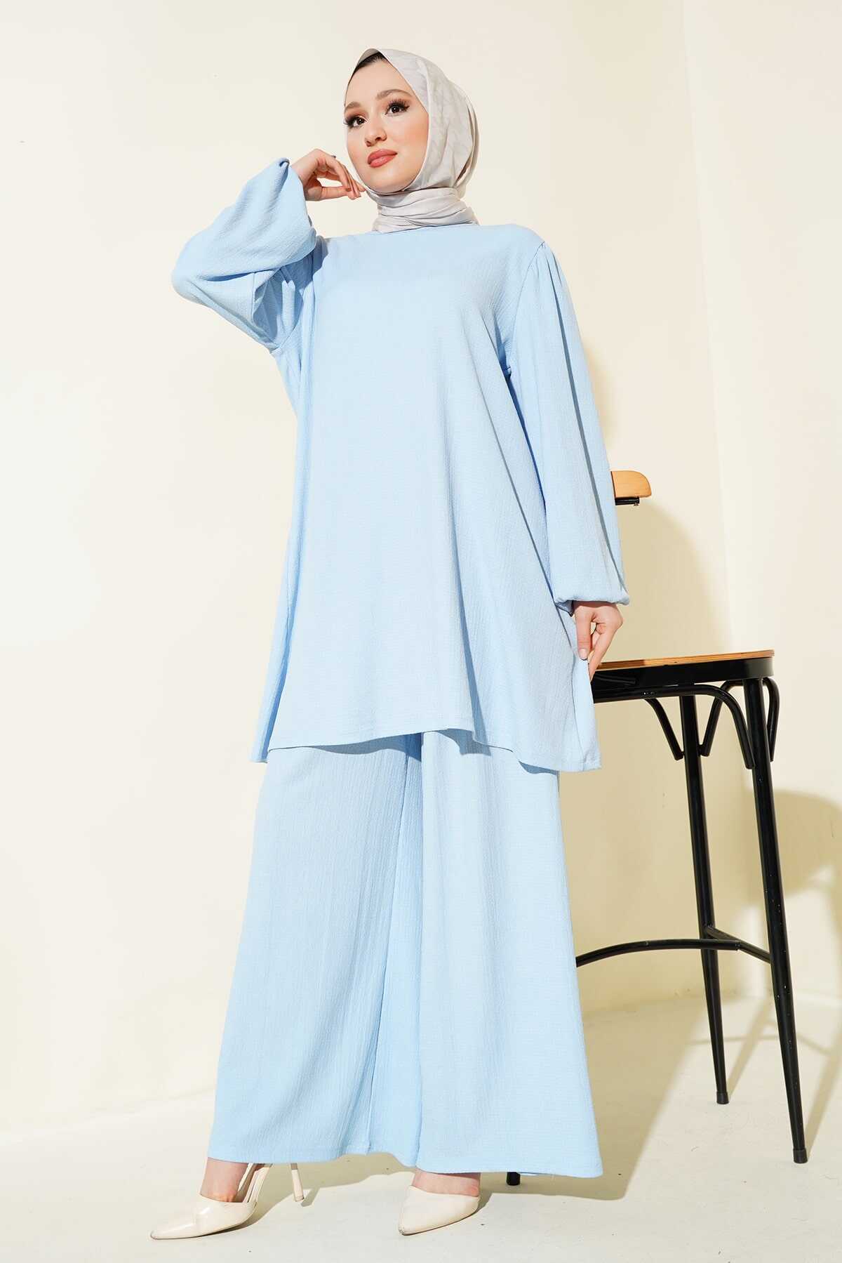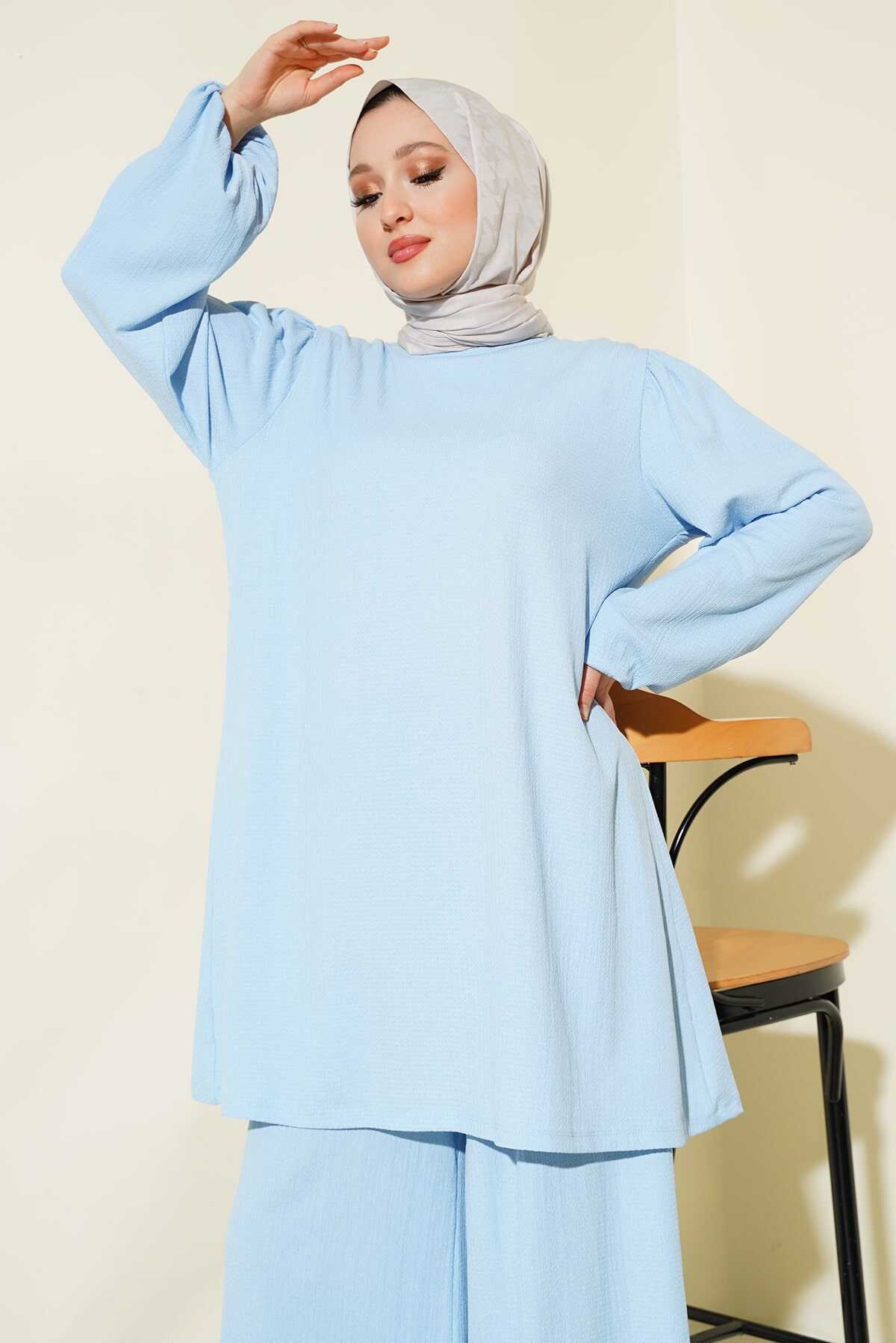 Kadın Mavi Tunik Pantolon Alt Üst Takım 6663 - Kombin